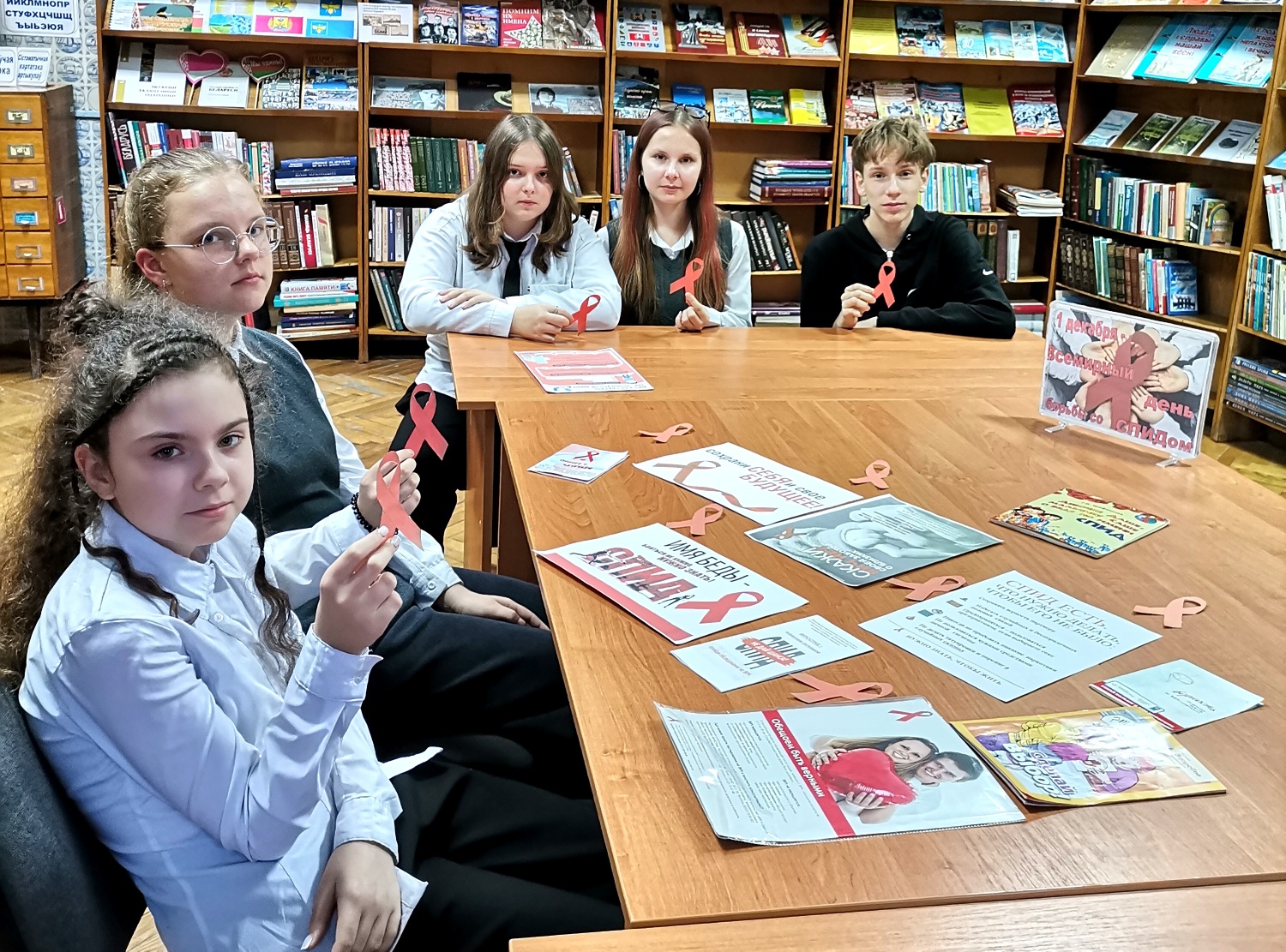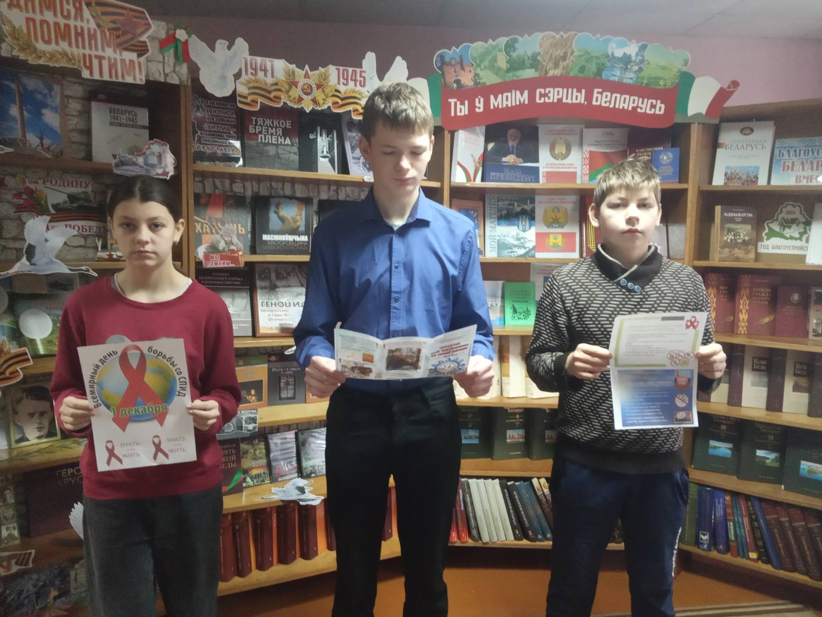 К этому дню в Родненской сельской библиотеке для учащихся сельской школы был проведён час общения «Не будь равнодушен к своему здоровью!». В ходе встречи школьники узнали историю появления синдрома приобретенного иммунного дефицита, его отличие от ВИЧ-инфекции, симптомах этой болезни, путях заражения и мерах профилактики. В конце мероприятия библиотекарь порекомендовала ребятам книги, информационные листовки и памятки, благодаря которым они смогут больше узнать по профилактике ВИЧ/СПИДа.