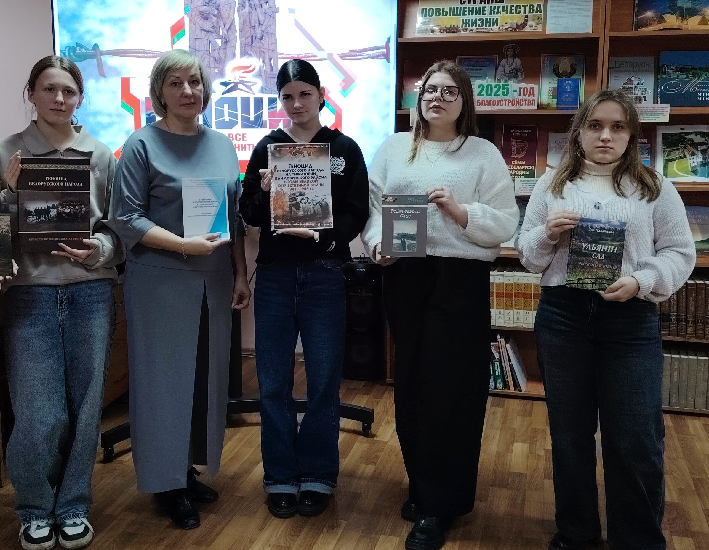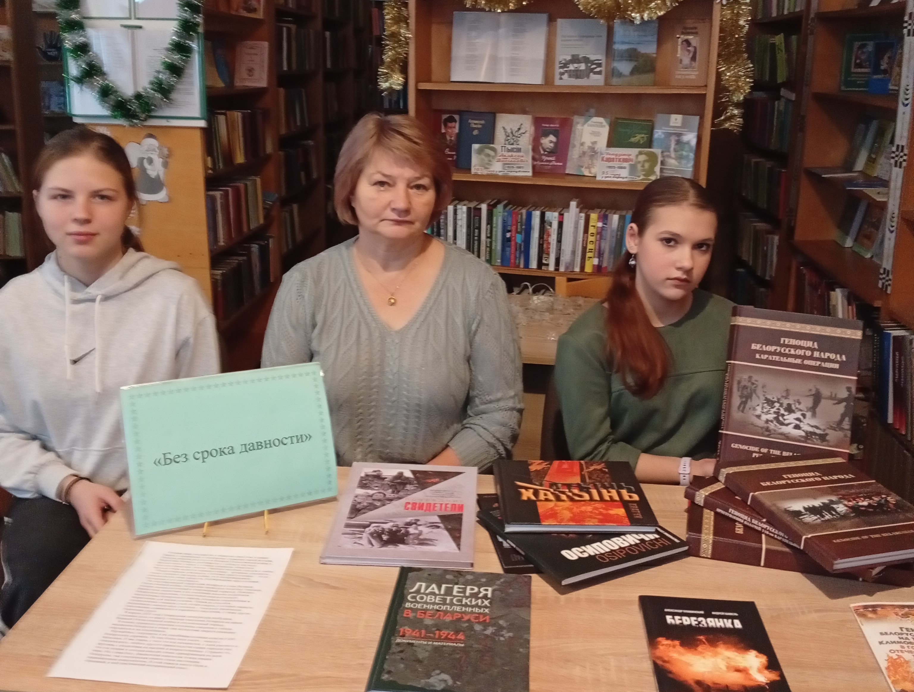Урок памяти «Геноцид: горькая страница нашей истории» для своих читателей провела библиотекарь библиотечного пункта, в ходе которого беседовала о жертвах геноцида в годы войны и о местах захоронения мирных граждан. Вниманию читателей была представлена подборка литературы, в которой изложены факты о зверствах фашистов и их пособников на белорусской земле.