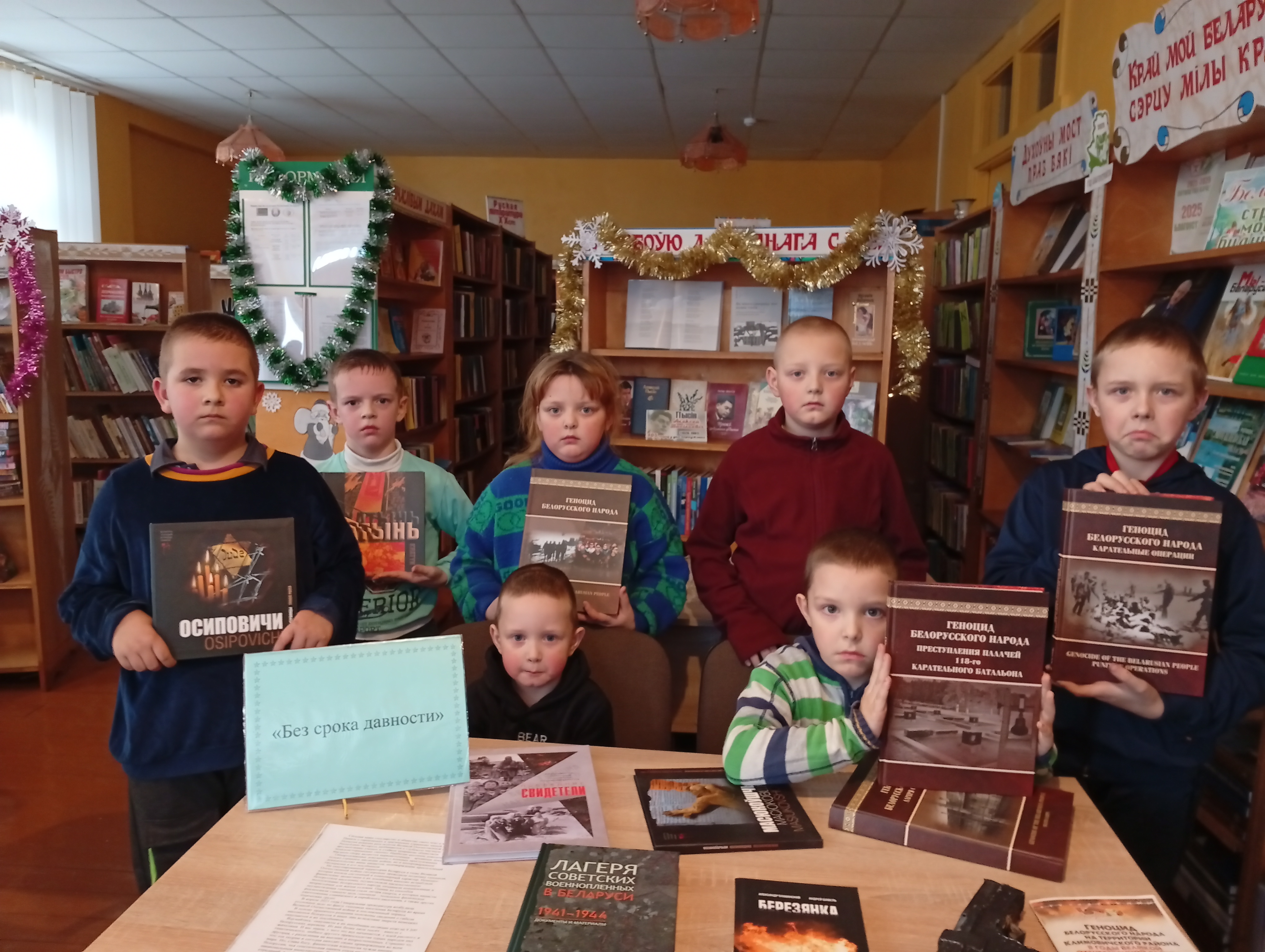Карательные операции и тысячи сожжённых деревень, лагеря смерти, гетто и другие места принудительного содержания, показательные казни и устрашающие виселицы – вот такой была политика фашистского геноцида на оккупированной территории Беларуси в годы Великой Отечественной войны. Об этом шла речь в Милославичской сельской библиотеке на набате памяти «Без срока давности», участниками которого стали ребята младшего и среднего школьного возраста.