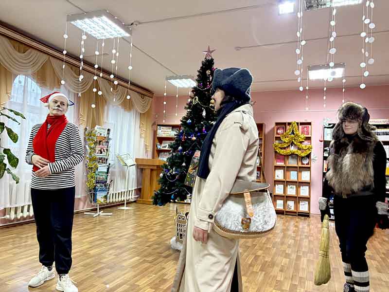 В преддверии волшебного праздника в городской библиотеке № 1 состоялся настоящий сказочный перформанс — чародей-вечер «Новогодние приключения в королевстве Кривых зеркал». Это был не просто праздник, а интерактивное путешествие для юных читателей, ребят из пришкольного лагеря средней школы № 4, в мир любимой сказки. Гости стали не просто зрителями, а полноправными участниками удивительной новогодней истории. Вместе с Олей, которая поделилась своей волшебной историей о приключениях в королевстве Кривых зеркал, ребята отправились спасать Новый год, который решил испортить коварный Нушрок.