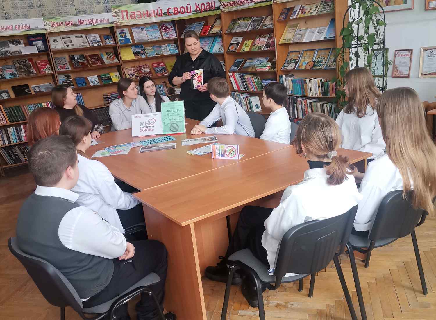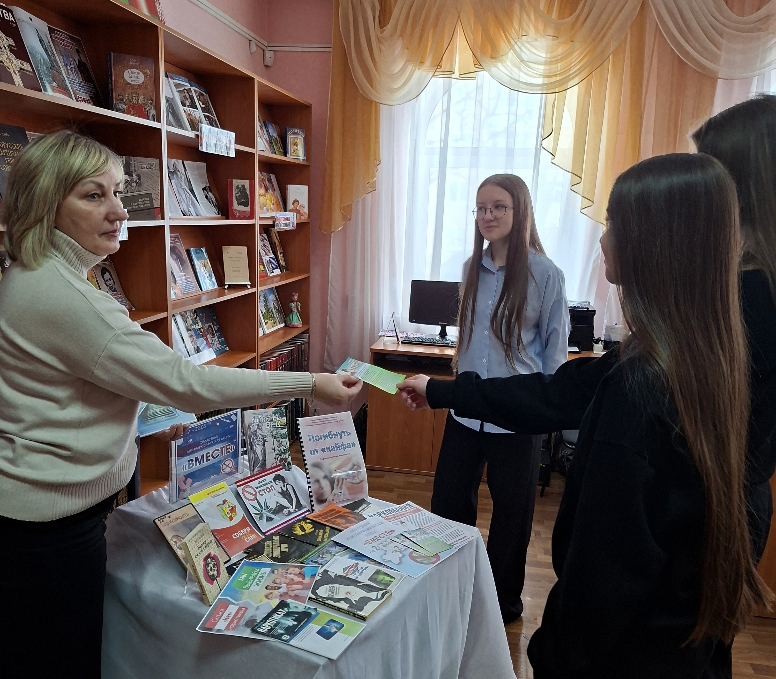 В центральной библиотеке для учащихся 10 класса третьей городской школы был проведен информационный час по профилактике наркомании «Это важно знать!», который был направлен на формирование у молодежи здорового образа жизни и негативного отношения к употреблению наркотиков. Были вручены памятки «Скажи наркотикам НЕТ!» со способами как отказаться от предложений попробовать психоактивные вещества. Ребята познакомились с тематической выставкой, посвященной проводимой с 2 февраля по 2 марта 2026 года в Могилевской области антинаркотической акции «Вместе».
