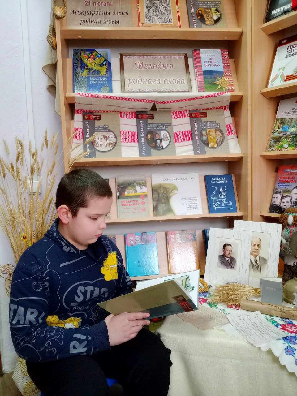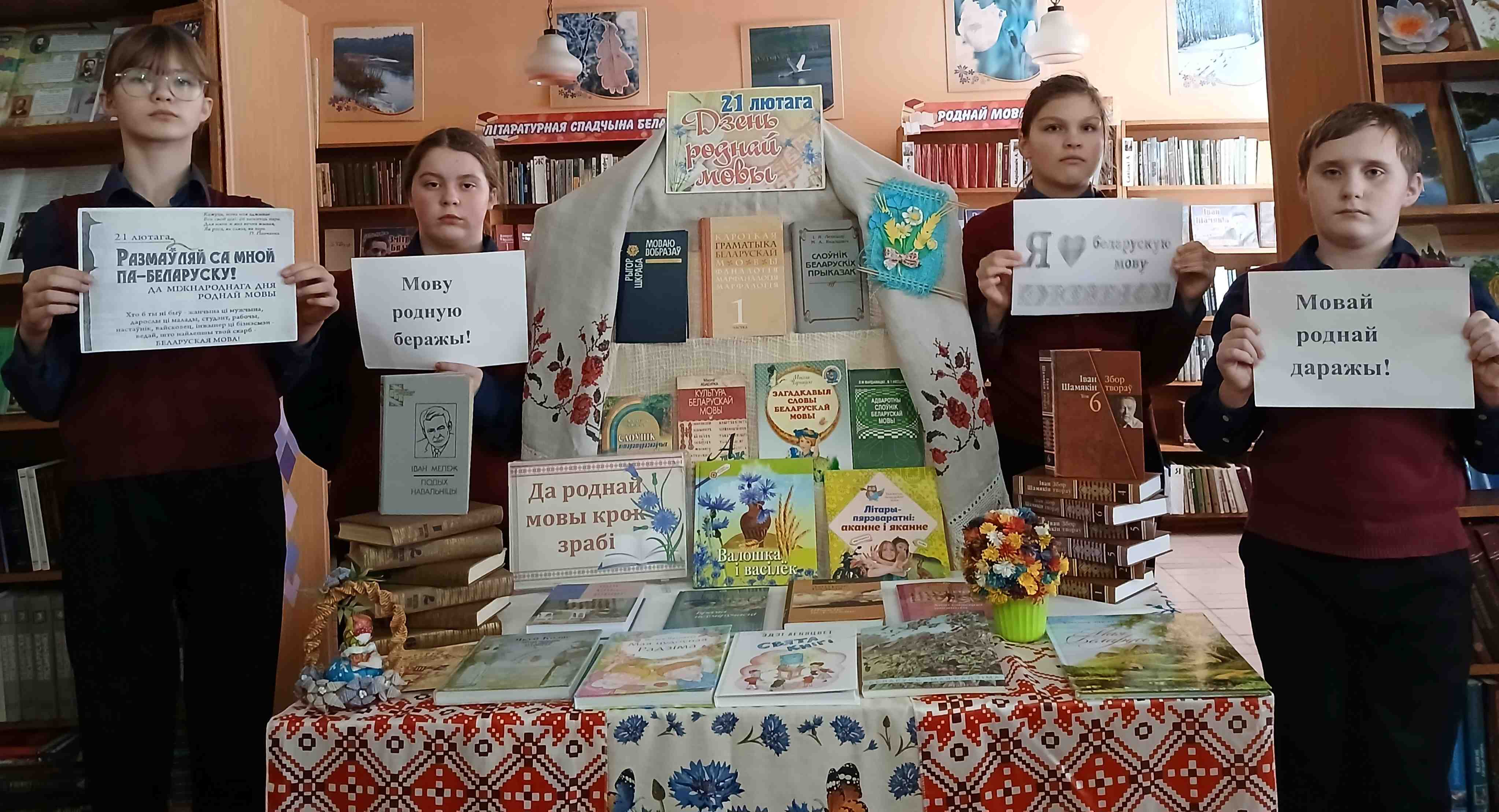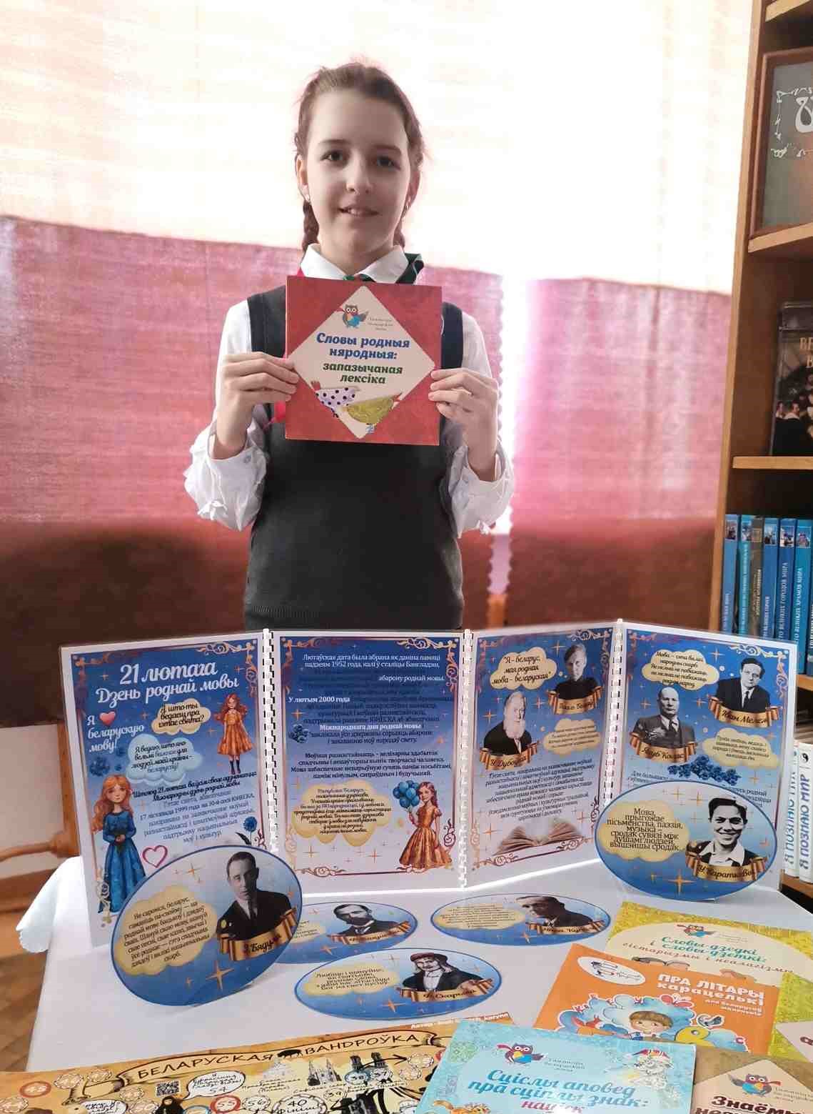 Гарадская бібліятэка №1 запрасіла маленькіх знаўцаў і аматараў беларускага слова на кніжную выставу-агляд “Я мову родную люблю”. Юныя чытачы змаглі адправіцца ў цікавае падарожжа па старонках любімых кніг: адчулі прыгажосць і мілагучнасць беларускай мовы, даведаліся, як гучаць па-беларуску прывычныя рэчы, пазнаёміліся з сучаснымі беларускімі пісьменнікамі.