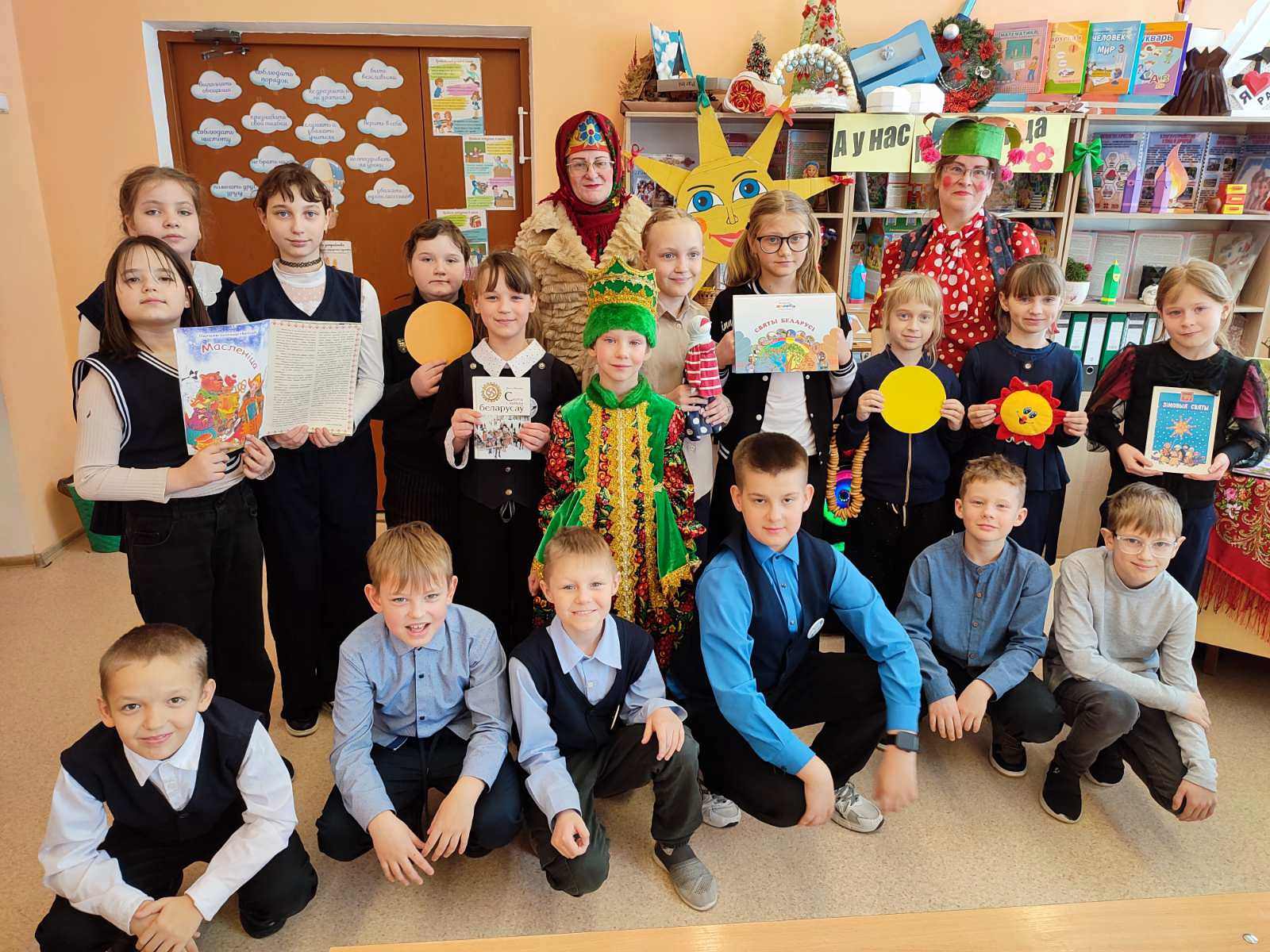 Для учащихся 4 классов средней школы № 4 сотрудниками городской библиотеки № 1 совместно с Тимоновским сельским Домом культуры проведена театрализованно-игровая программа «Масленица хороша, широка ее душа». Ребята совершили увлекательное путешествие в историю праздника: узнали, почему масленичный блин является символом солнца, как называются каждый из дней Масленичной недели. Дети с удовольствием отгадывали загадки о блинах, весне и народных традициях.