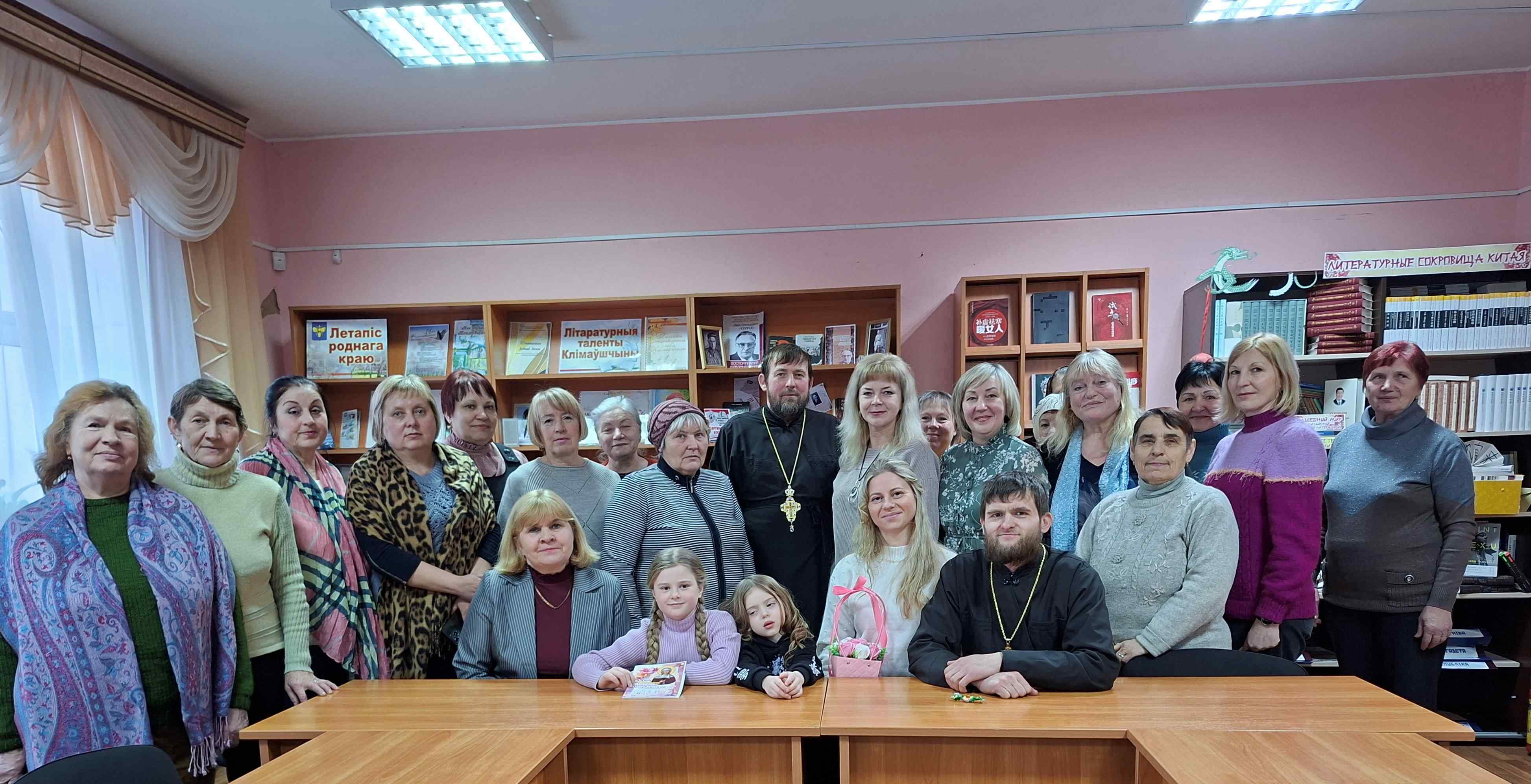 5 февраля в центральной библиотеке состоялась очередное заседание Клуба традиционных славянских ценностей, почетными гостями на котором стали настоятель храма Святого Архангела Михаила г. Климовичи отец Николай Вечорко и клирик Спасо-Преображенского Собора г. Могилева отец Андрей с матушкой Ксенией (Шаварины). С членами православного клуба, прихожанами городского храма и ветеранами педагогического труда у них состоялся откровенный разговор на тему «Священник о жизни и вере».