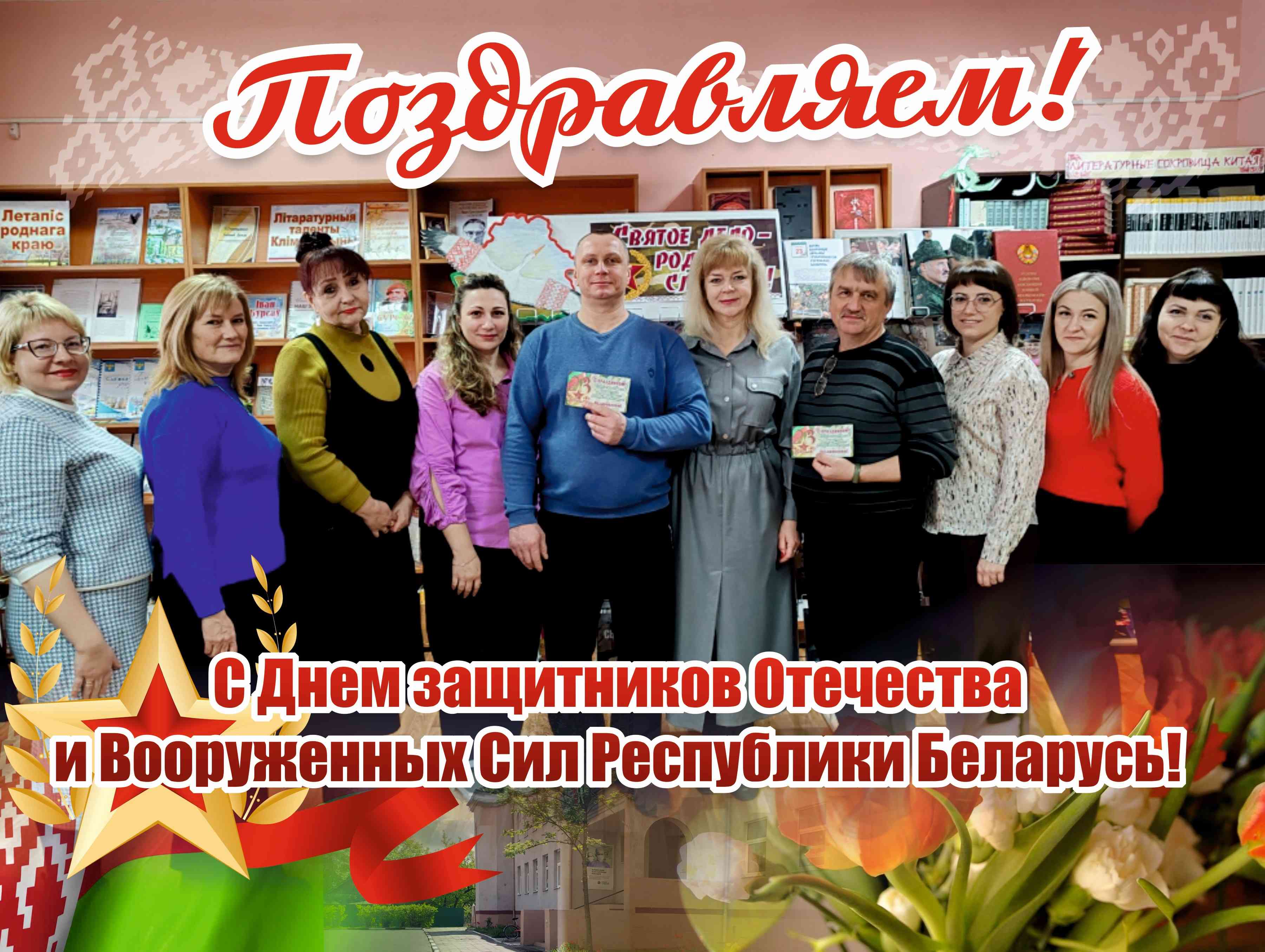 Коллектив центральной районной библиотеки имени Ивана Пехтерева поздравляет с Днём защитников Отечества и Вооруженных Сил Республики Беларусь!