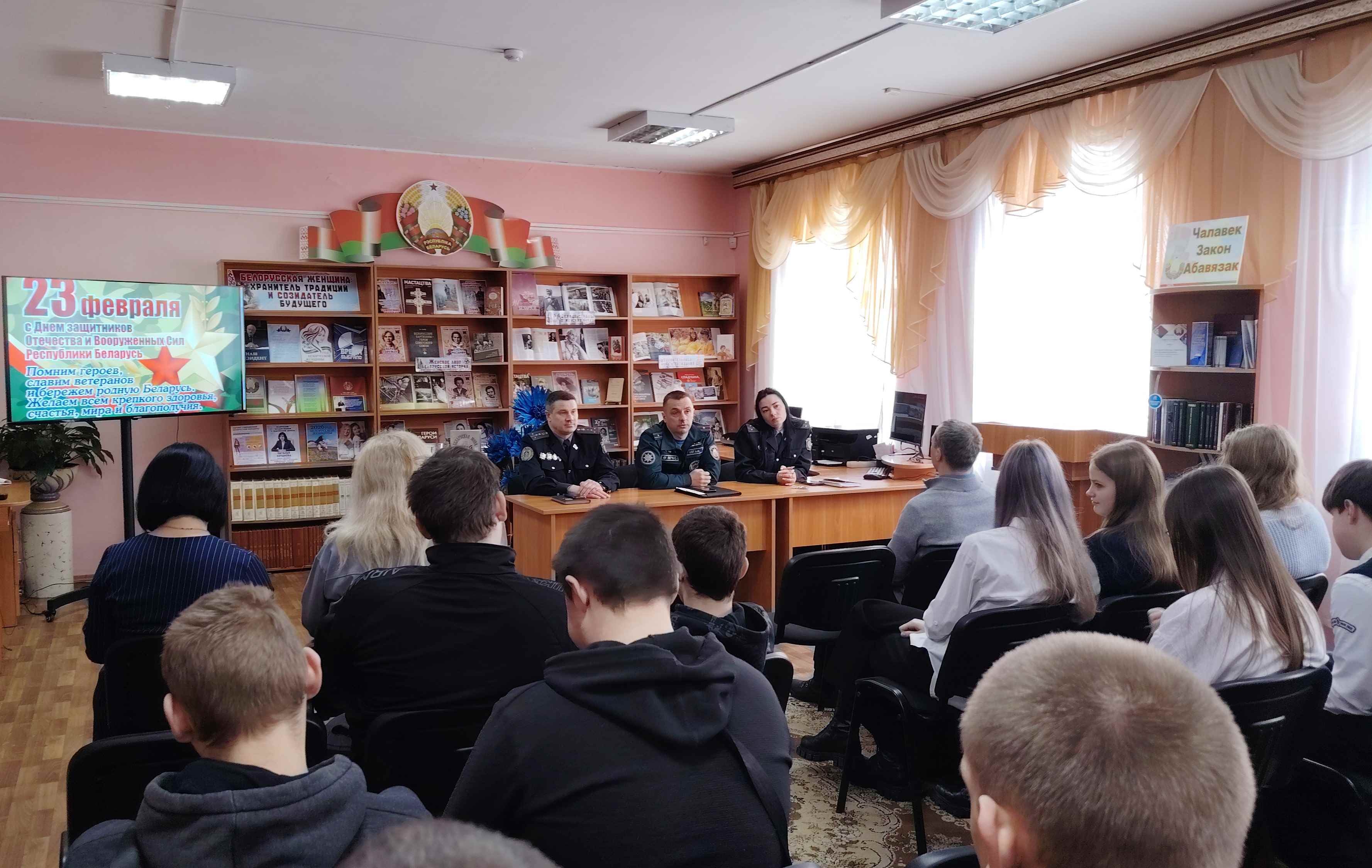 В начале мероприятия всех присутствующих поздравили с праздником — Днем защитников Отечества и Вооруженных Сил Республики Беларусь. Гости рассказали об особенностях своей профессии, ответили на многочисленные вопросы, одним из которых стал вопрос, где можно приобрести военную специальность и какие качества должны быть у поступающих в военные заведения. Проверить свои знания боевой истории страны помогла тематическая викторина «Военное наследие».