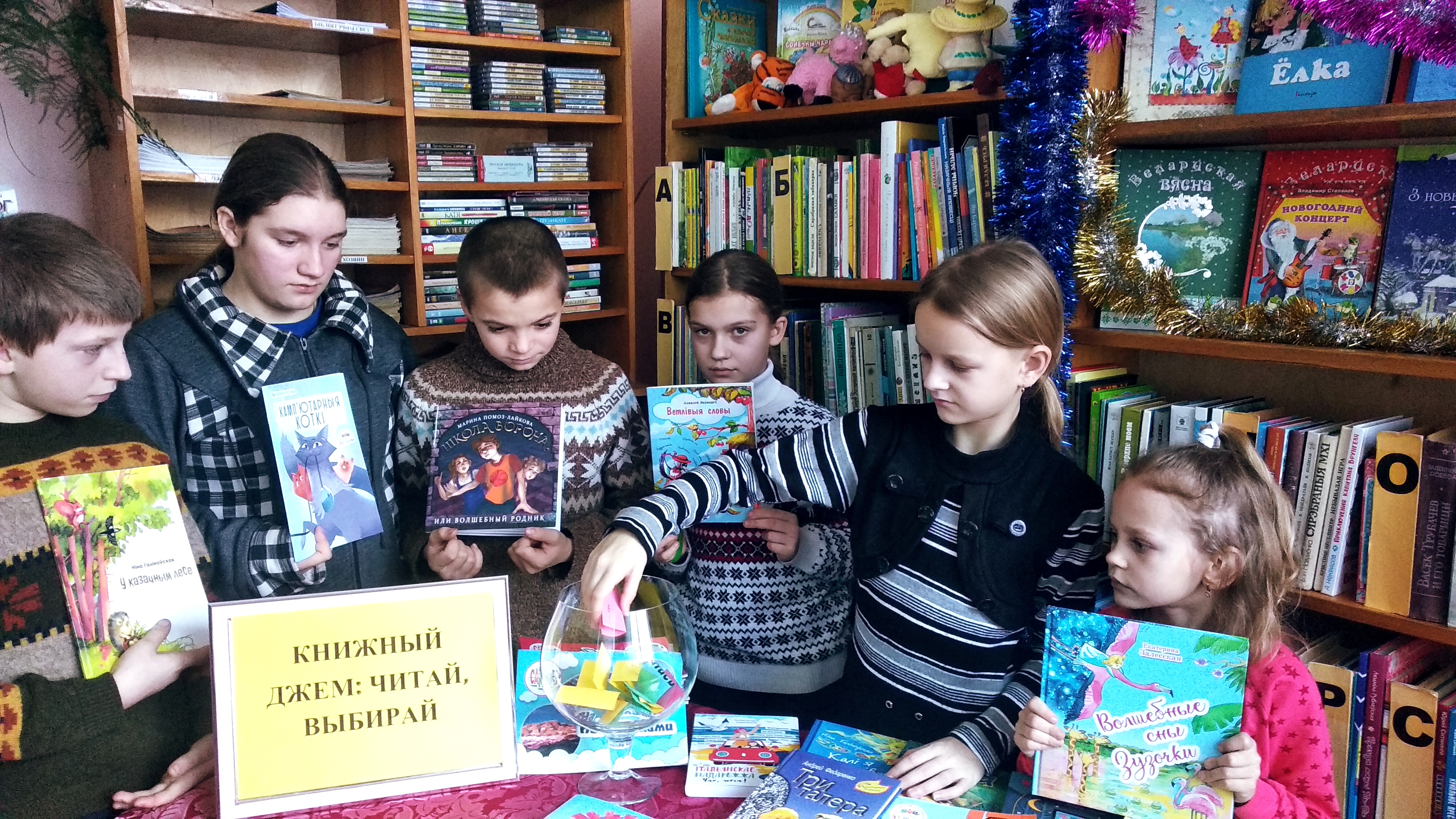 Библиотекари городской библиотеки №2 для ребят из пришкольного лагеря районной гимназии организовали конкурсную программу «Новый год пришёл в наш дом». Дети узнали, в каких странах и как празднуется Новый год, как появилась новогодняя ёлка, участвовали в конкурсах «Сорвать с елки все игрушки», «Мотальщики». Школьники вспоминали пословицы о зиме, участвовали в викторине, разгадывали загадки и ребусы, посмотрели новогодний мультфильм и получили в подарок сладкие сюрпризы и мозаику.Зимние каникулы с библиотекой – это весело, познавательно и необычно. Викторины, новые знания, знакомство с новыми книгами, праздники – все это библиотекари ГУК «Климовичская библиотечная сеть» дарили своим юным читателям.