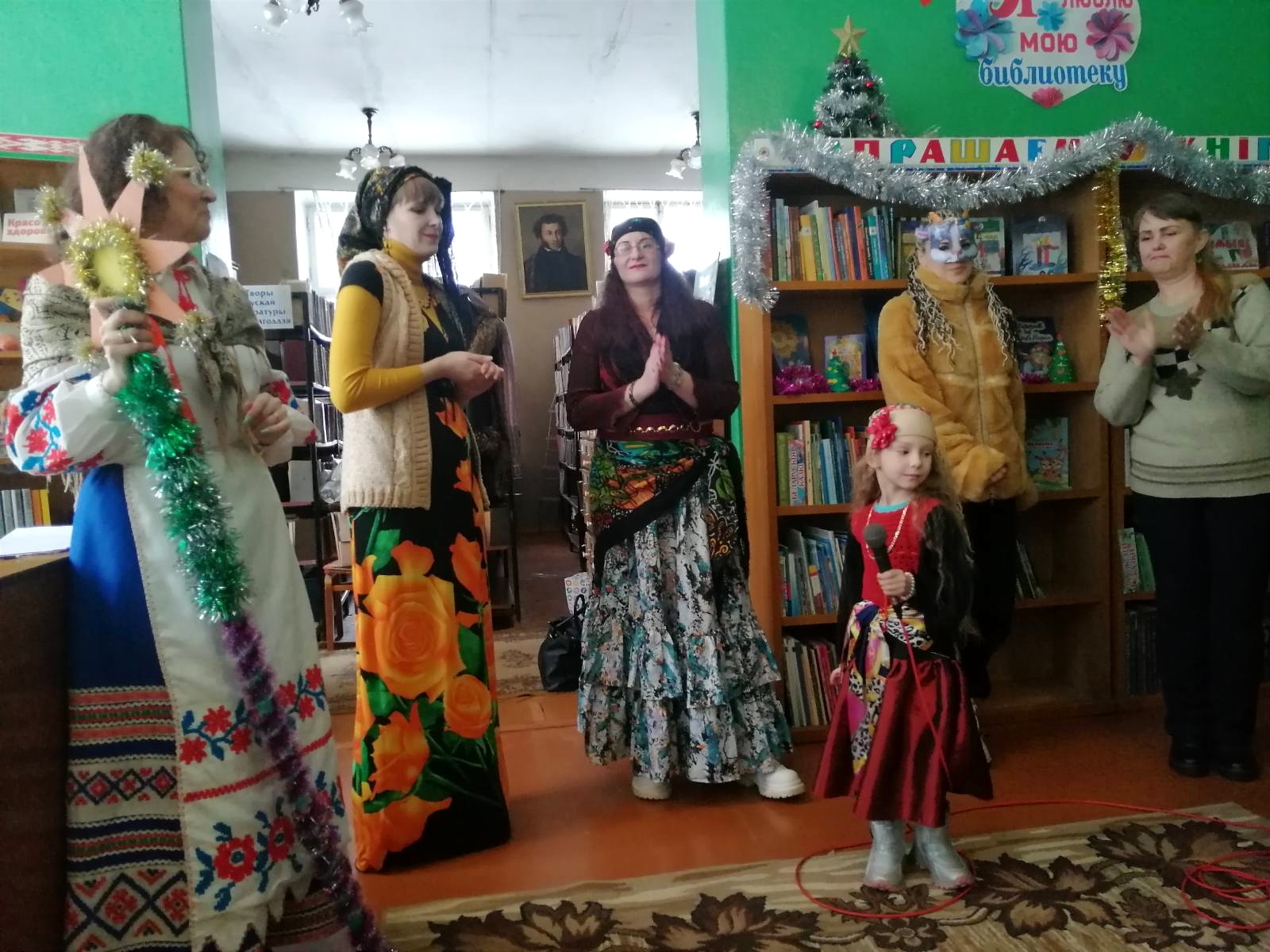 Театрализованное представление с колядками подготовили библиотекари и читатели городской библиотеки №1. Коза и Медведь развлекали гостей танцами и песнями, Цыганка предложила гадание, Коляда и Мехоноша зазывали всех в хоровод и предлагали гостям весёлые игры.