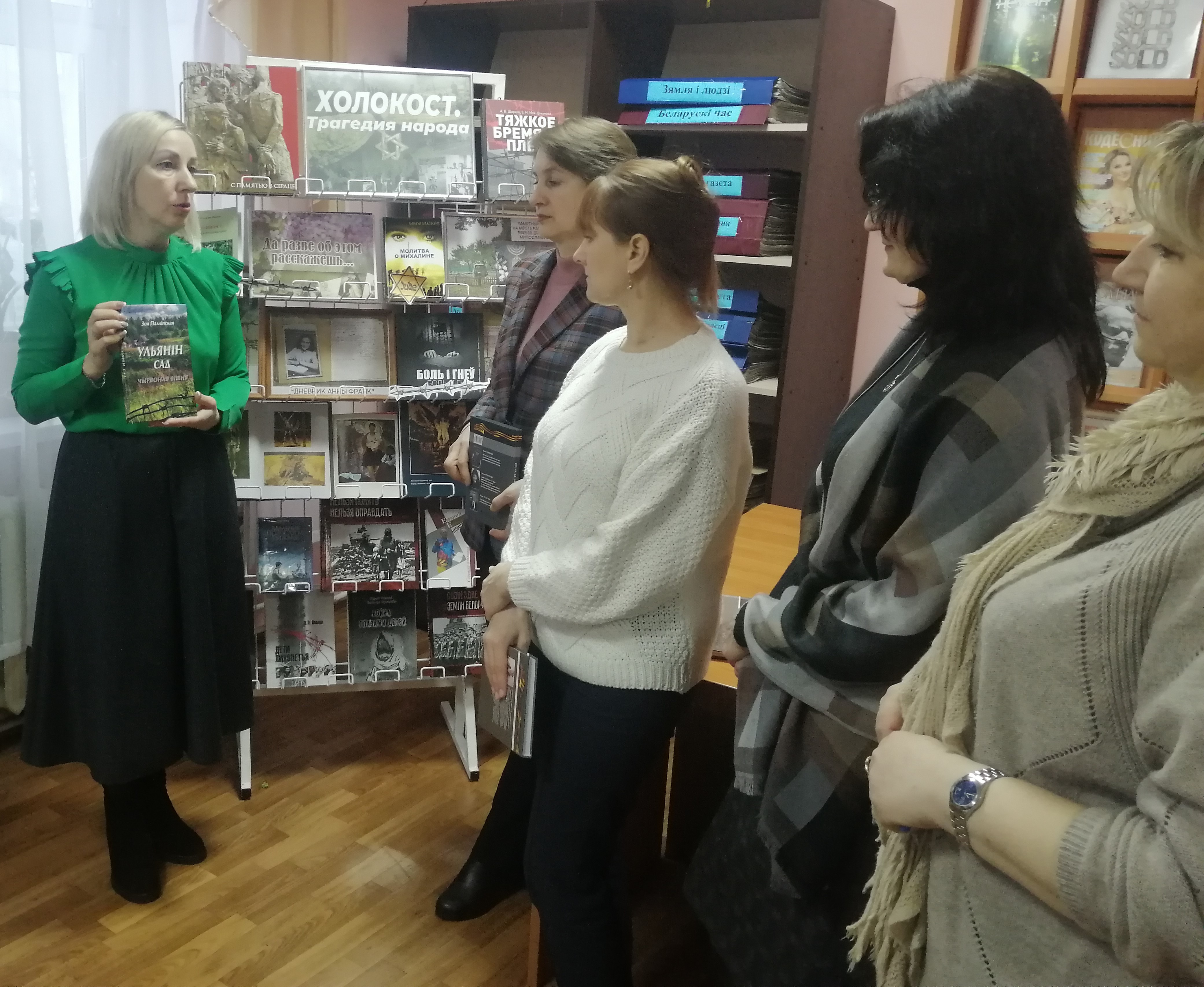 В читальном зале экспонируется тематическая выставка. Здесь представлены документальные источники, брошюры, воспоминания бывших узников лагерей смерти, публикации из периодической печати, призванные служить тому, чтобы уроки Холокоста были учтены и сохранены в памяти будущих поколений. Посетители библиотеки могут познакомиться с историческими фактами трагедии Холокоста как одним из примеров бесчеловечной политики нацистов. Сотрудники библиотеки рассказывают о многочисленных жертвах фашизма, о жестоком истреблении еврейского народа и на территории Климовичского района.