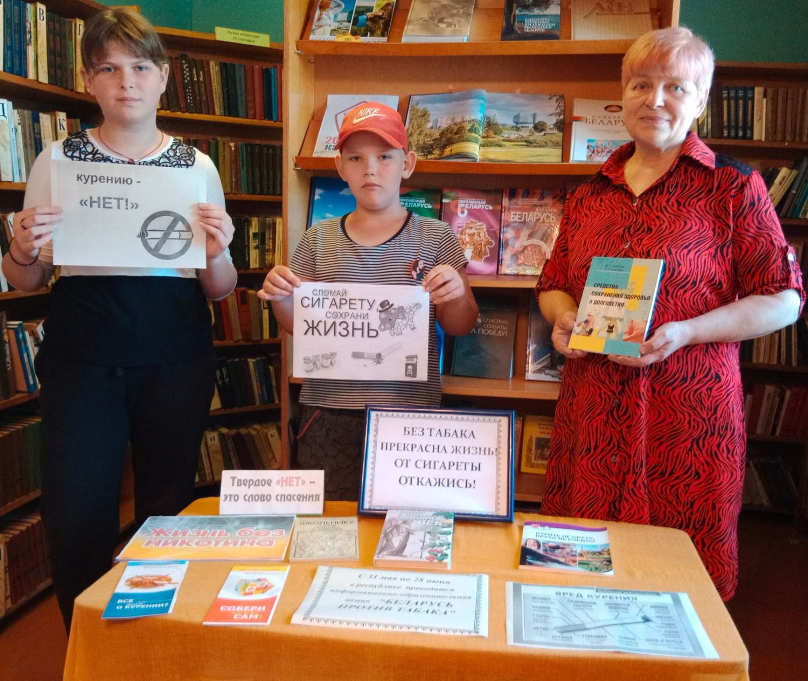 С целью информирования населения и особенно детей и подростков о пагубном воздействии табачной и никотинсодержащей продукции на здоровье в период с 31 мая по 28 июня в Беларуси проходит республиканская информационно-образовательная акция «Беларусь против табака». В библиотеках района стало традиционным в рамках этого события проводить различные мероприятия о пагубном влиянии вредных привычек.