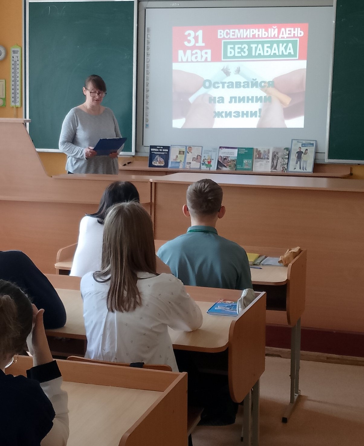Урок здоровья «Бросай курить — пока не поздно» состоялся в районной гимназии. Библиотекарь городской библиотеки №2 рассказала о вреде курения, про закон, запрещающий курение в общественных местах и о том, как влияет табачный дым на некурящих людей, если они находятся рядом с курильщиком. Ребята узнали много интересной и полезной информации, приняли активное участие в викторине «Что ты знаешь о курении?».