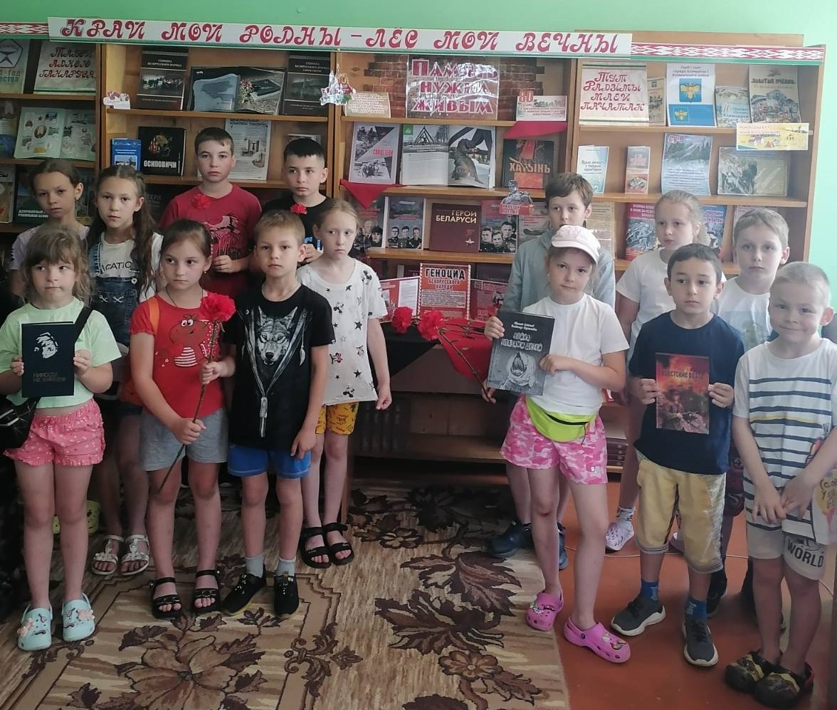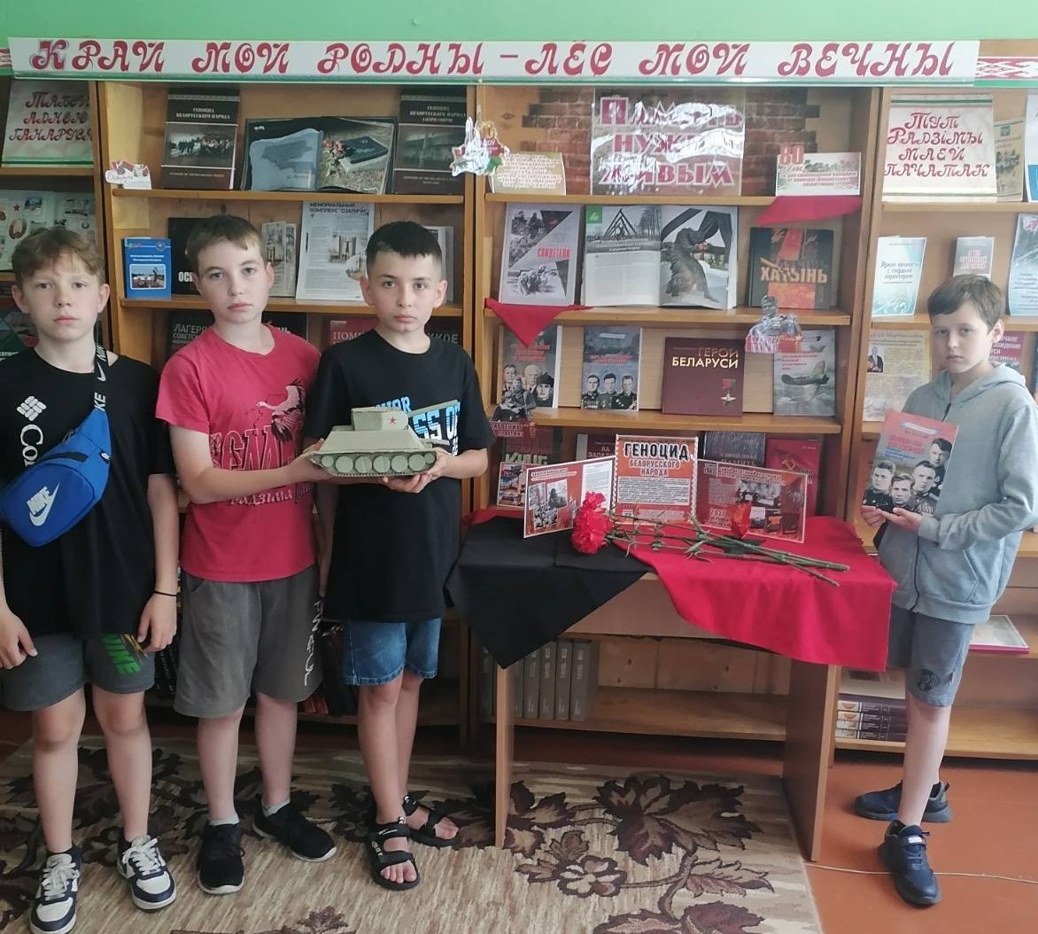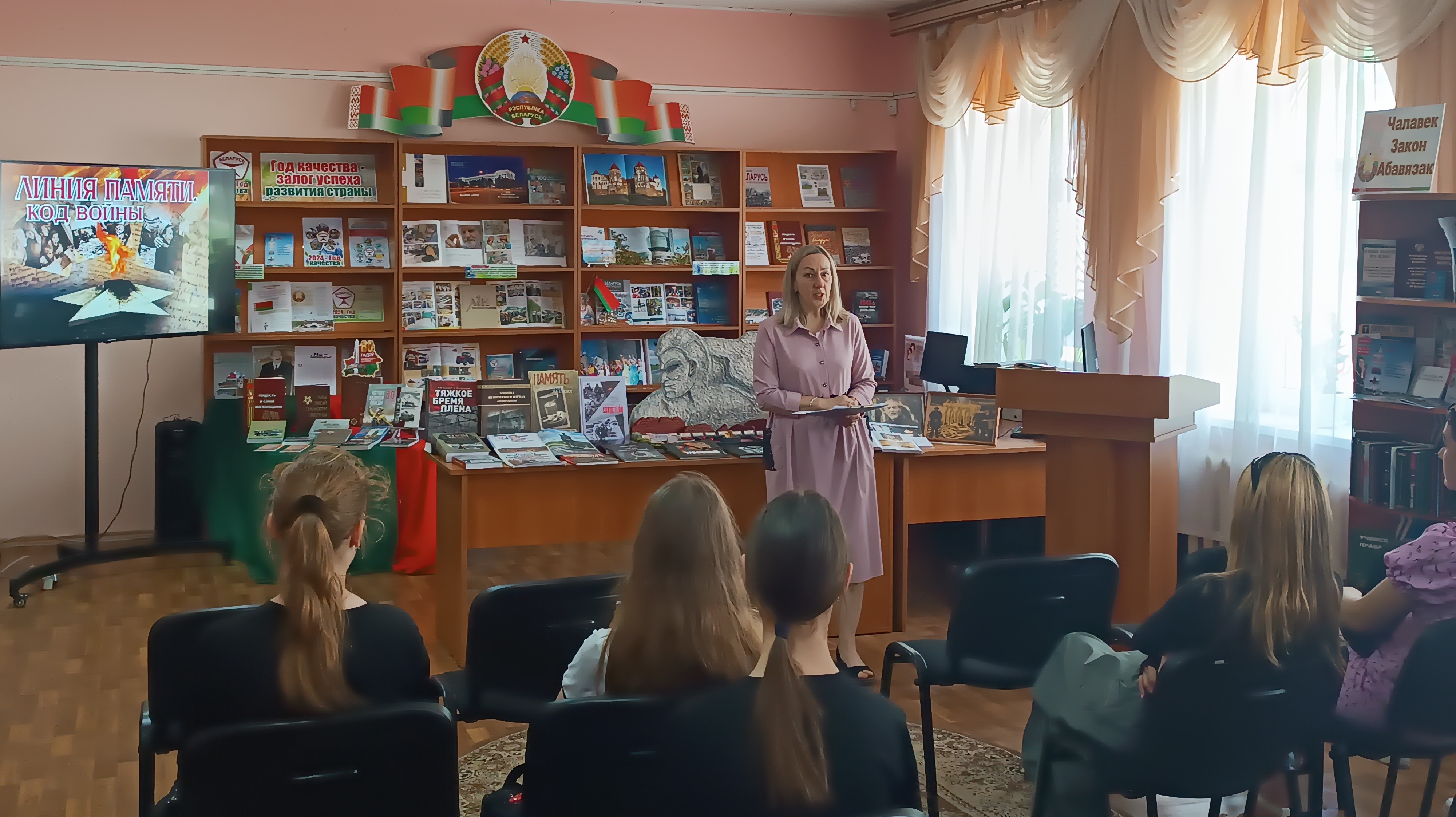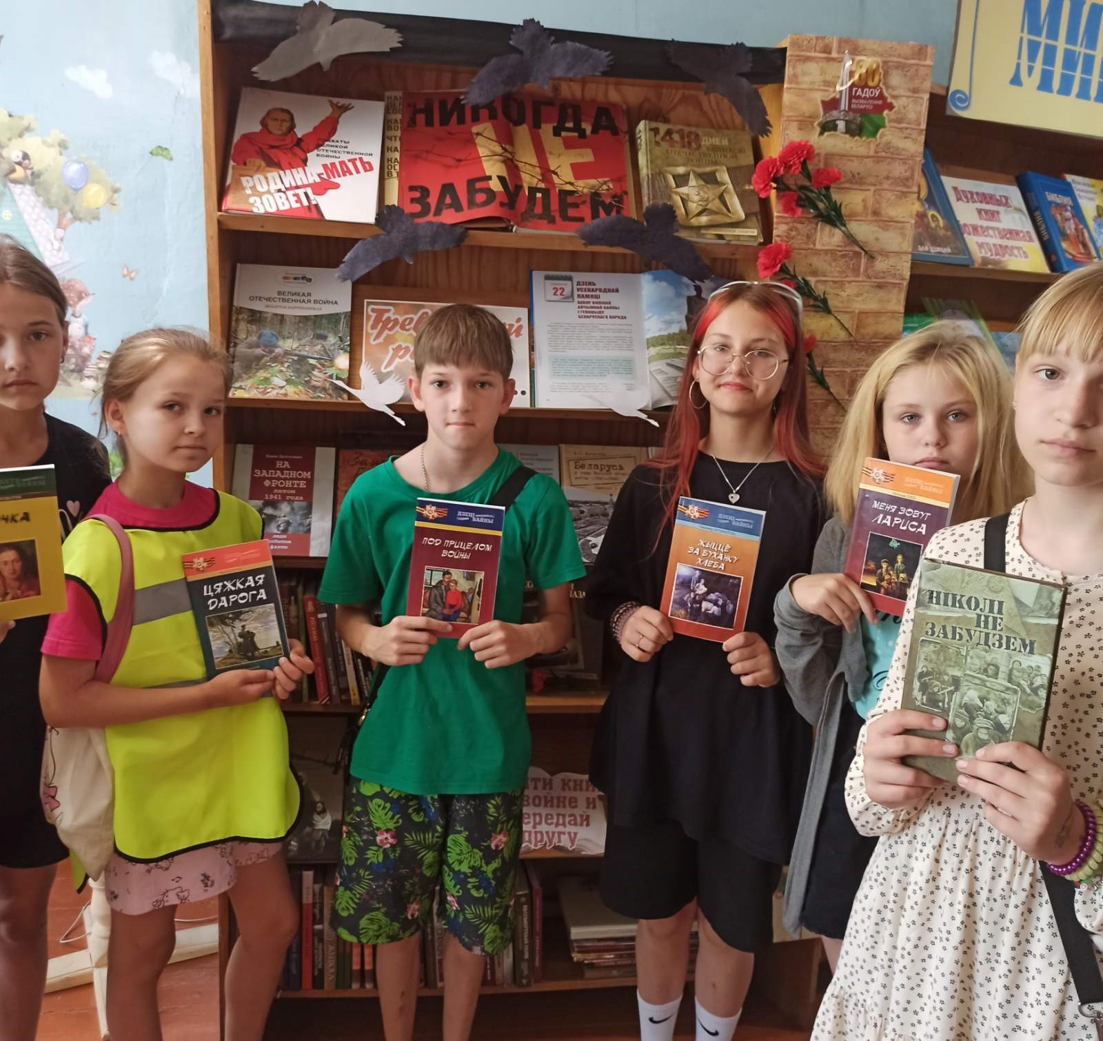 Час исторической памяти «Пока мы живы помнить надо!», приуроченный ко Дню всенародной памяти жертв Великой Отечественной войны, геноцида белорусского народа и к 80-летию освобождения Беларуси от немецко-фашистских захватчиков, проведен в центральной районной библиотеке. В мероприятии приняли участие ребята из трудового лагеря средней школы №4. Заведующий отделом обслуживания и информации Ольга Максимович рассказала ребятам о том, как огненным вихрем ворвалась в мирную жизнь людей война.
