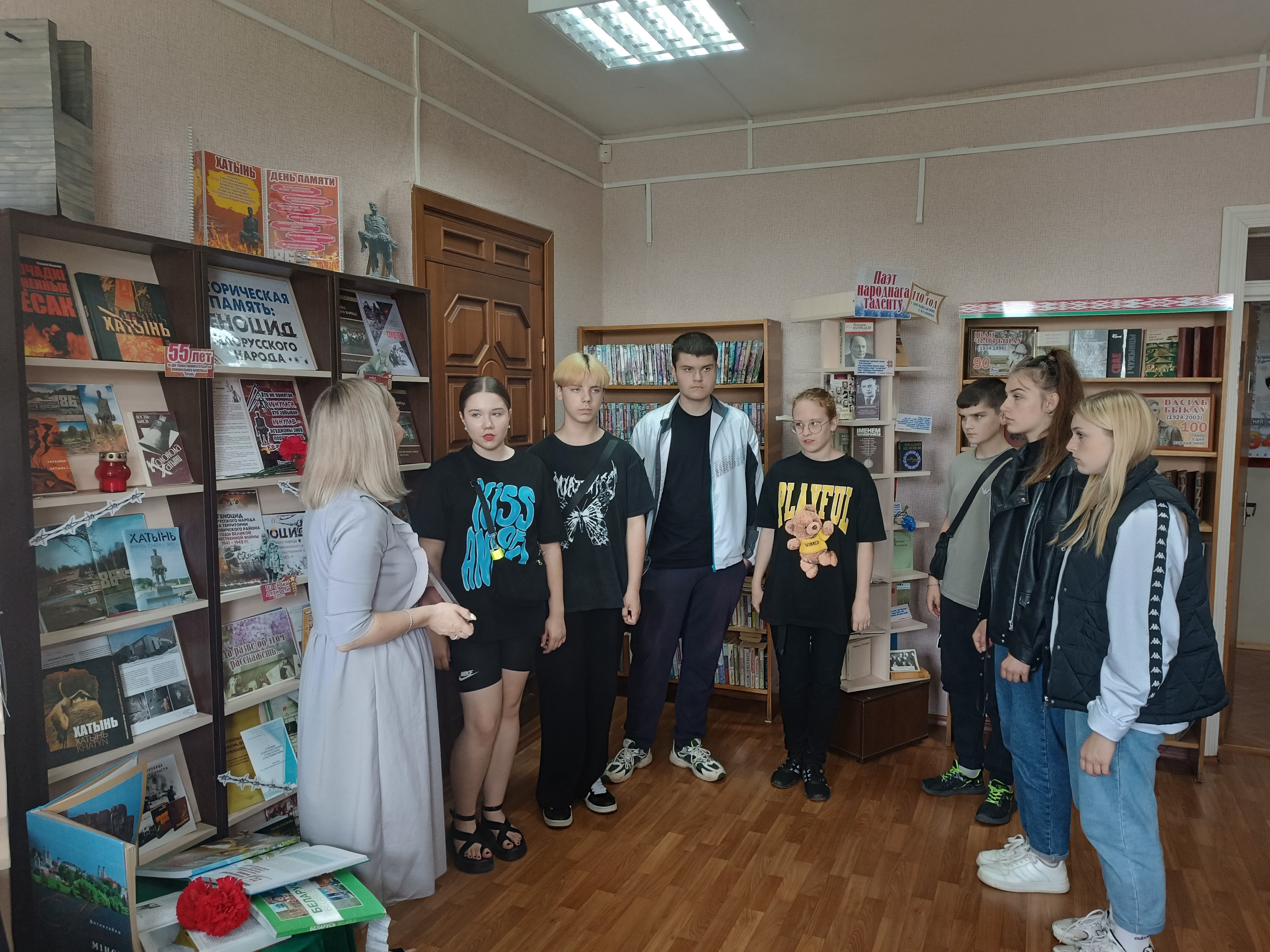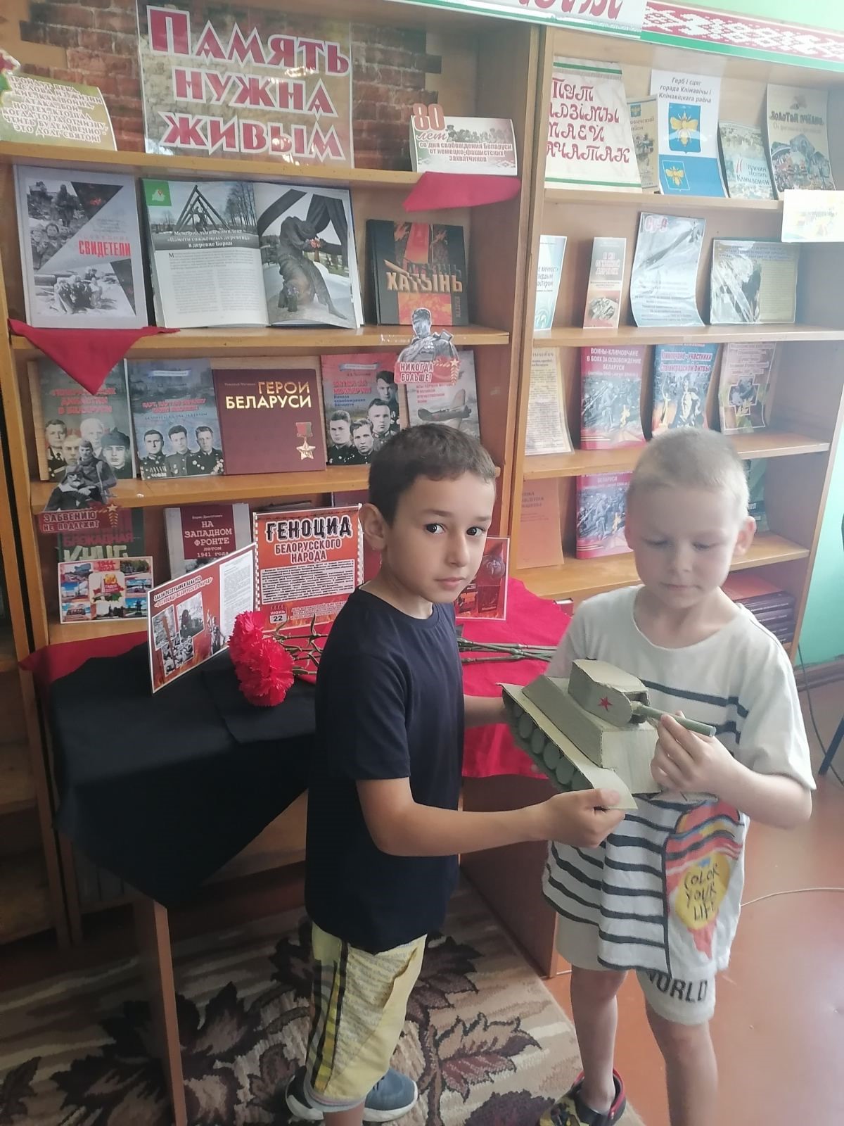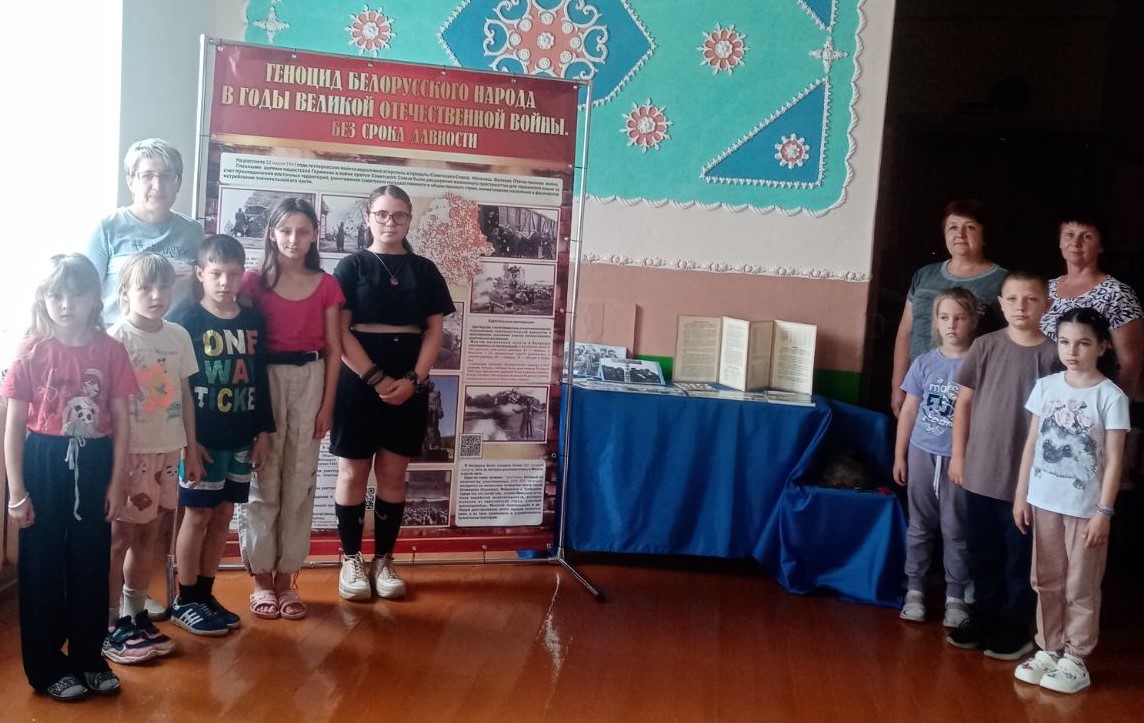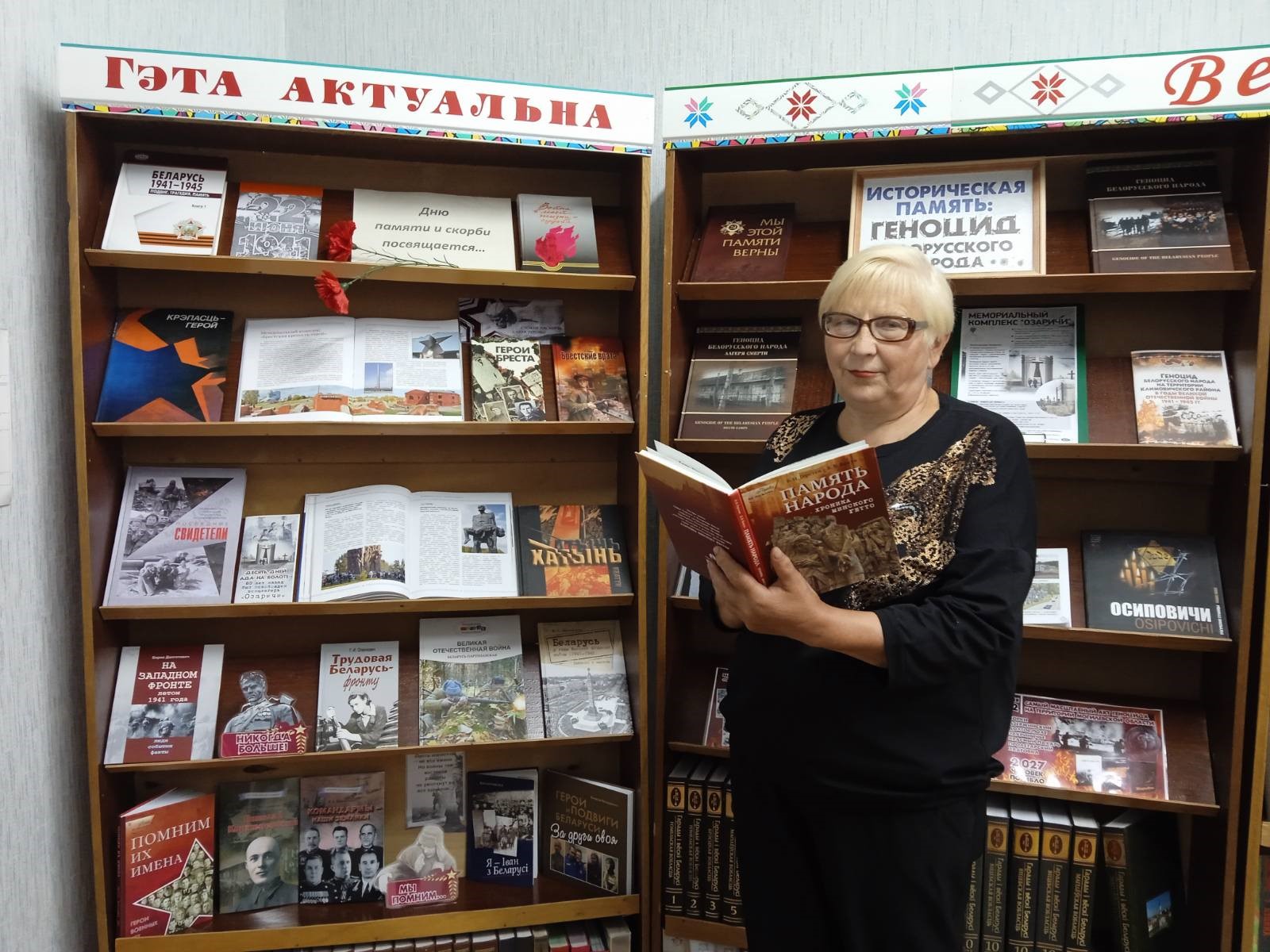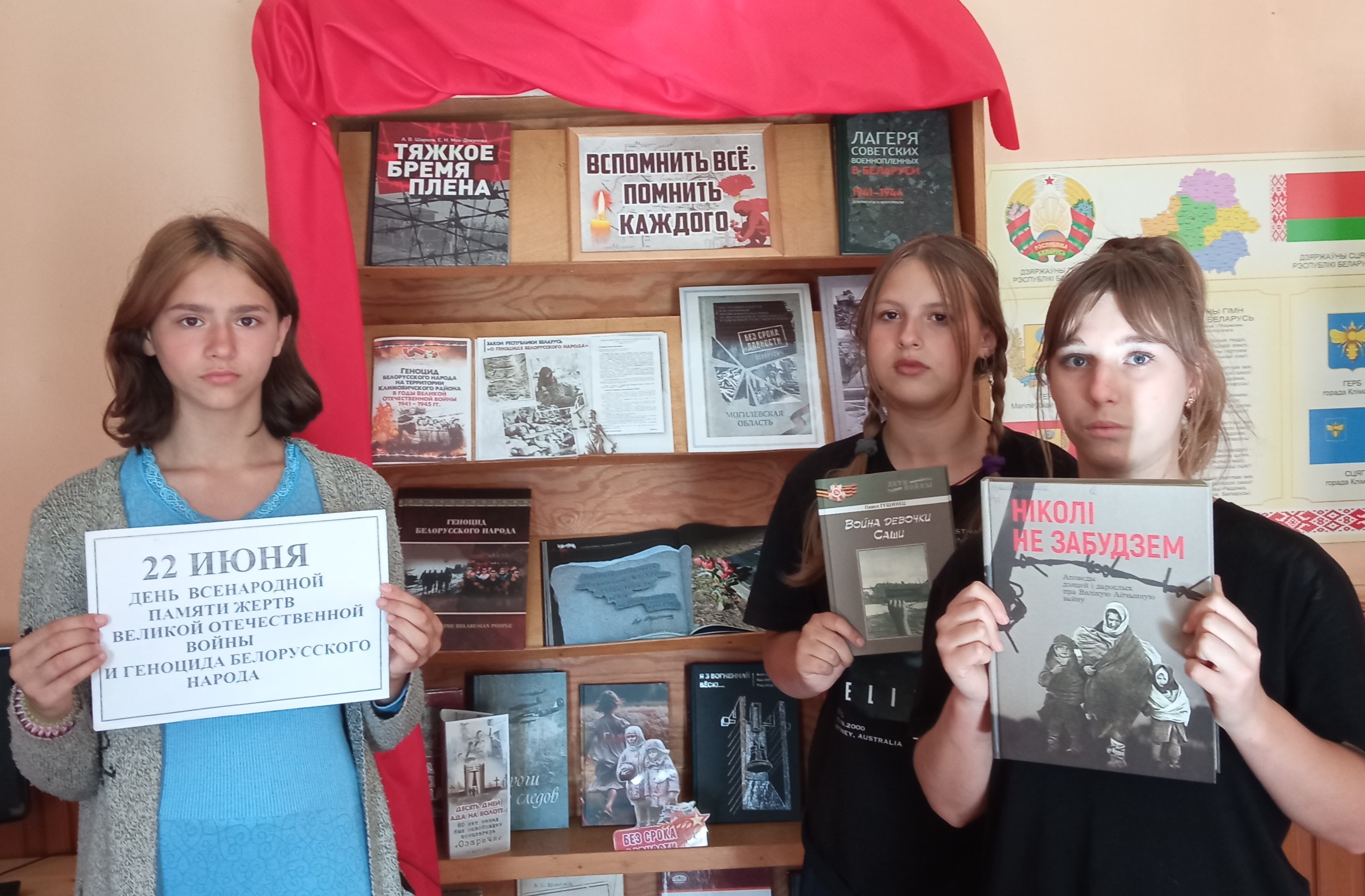 Час исторической памяти «Пока мы живы помнить надо!», приуроченный ко Дню всенародной памяти жертв Великой Отечественной войны, геноцида белорусского народа и к 80-летию освобождения Беларуси от немецко-фашистских захватчиков, проведен в центральной районной библиотеке. В мероприятии приняли участие ребята из трудового лагеря средней школы №4. Заведующий отделом обслуживания и информации Ольга Максимович рассказала ребятам о том, как огненным вихрем ворвалась в мирную жизнь людей война.