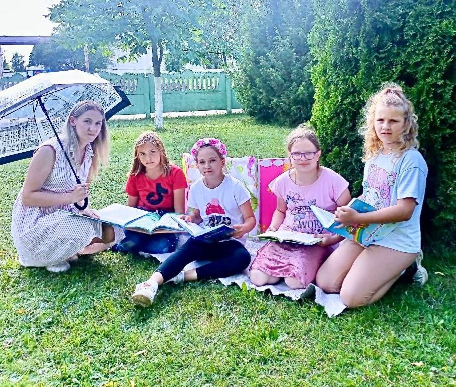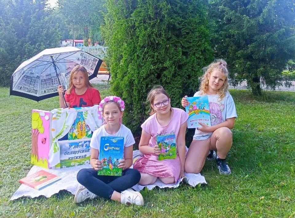 Сотрудники отдела по обслуживанию детского читателя центральной районной библиотеки для ребят школьного лагеря средней школы №3 провели акцию на открытом воздухе библиотека под зонтиком «Разам з кніжкай беларускай». Под куполом библиотечного зонтика маленькие читатели познакомились с детскими книгами белорусских авторов, приняли участие в познавательных викторинах, интересных литературных конкурсах. А ещё здесь можно было почитать, пообщаться с друзьями, взять любую понравившуюся книжку домой.