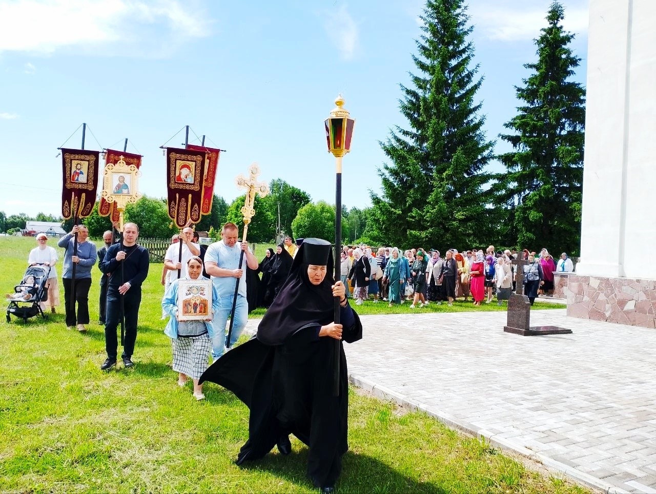 Настоятельница обители Матушка Фомаида радушно встретила белорусских паломников, рассказала об истории храма, познакомила их с особенностями его строения и особо почитаемых иконах. Священнослужитель отец Алексий Шевяков поздравил и поблагодарил белорусских паломников за приезд и участие в праздничной литургии. А после состоялся крестный ход вокруг храма, в котором приняли участие белорусские и российские верующие.