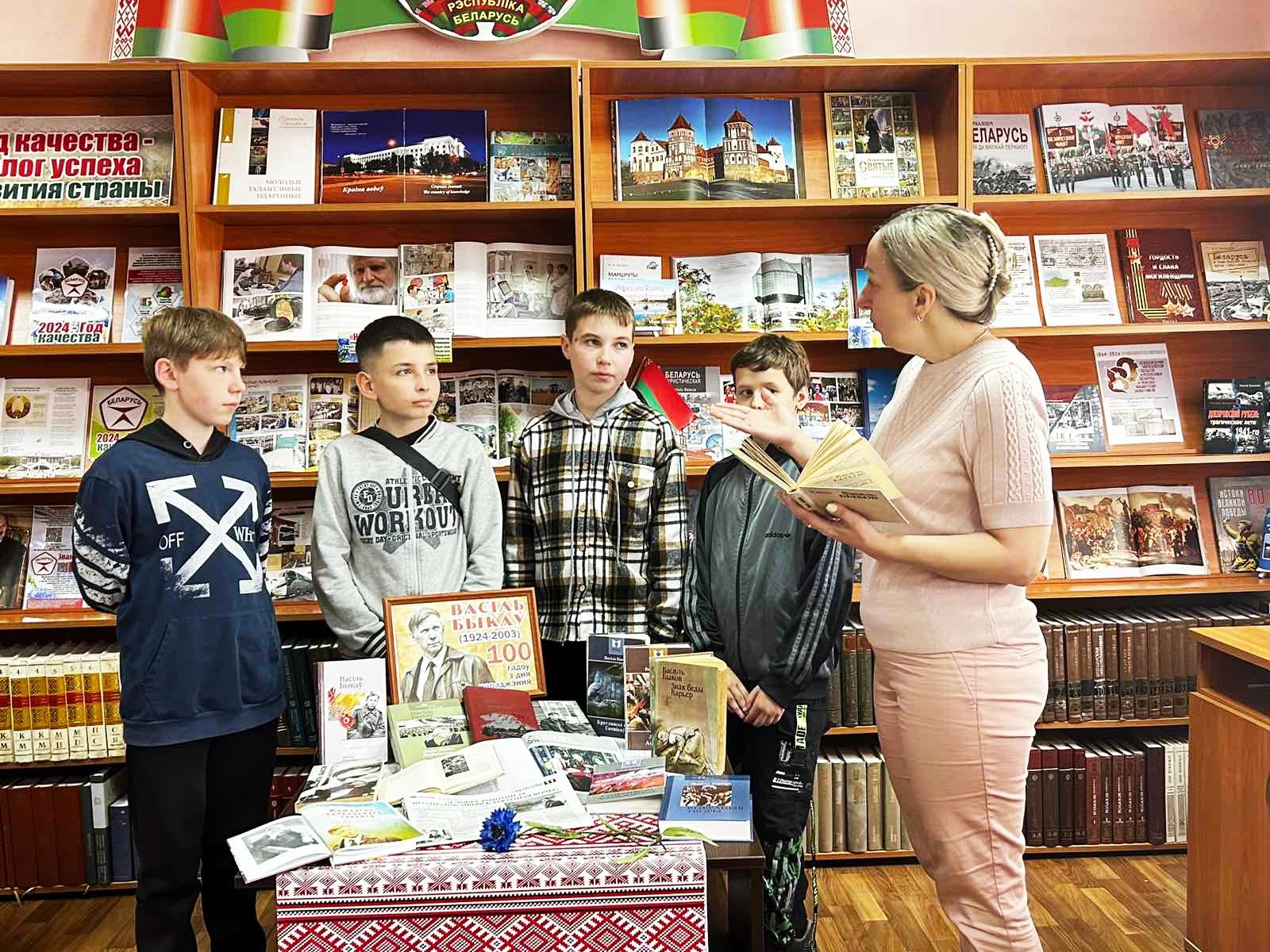 У Высокаўскай сельскай бібліятэцы прайшла літаратурная гадзіна “Доўгія вёрсты вайны”. Бібліятэкар пазнаёміла ўдзельнікаў з біяграфіяй пісьменніка, жыццёвым і творчым шляхам аўтара.