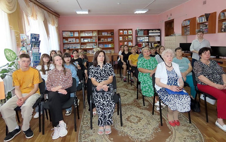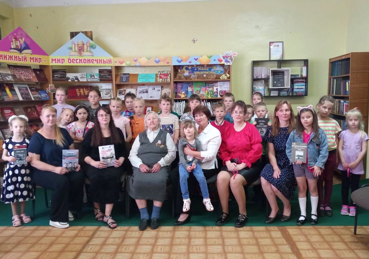 Для ребят из пришкольного лагеря средней школы №4 в городской библиотеке №1 прошел исторический час «В памяти чёрным разрывом страшное слово «Война!». Почетным гостем на мероприятии стала читатель библиотеки Голикова Алимпиада Тихоновна. Она поделилась рассказом о том, как слышала взрывы, видела как умирали от голода и страха, как погиб под бомбами старший брат, как возвращались из эвакуации после войны в родные места. Сотрудники библиотеки рассказали ребятам о первых часах войны, о мужестве и героизме нашего народа, вспомнили имена юных героев, отдавших жизни за победу. Вниманию ребят были представлены мини-сценка «Оборванного мишку утешала...» и обзор книг о войне. Звучали песни и стихи на военную тематику в исполнении сотрудников Тимоновского СДК и юной участницы мероприятия Езерской Ники. Минутой молчания участники мероприятия почтили память погибших в той страшной войне.