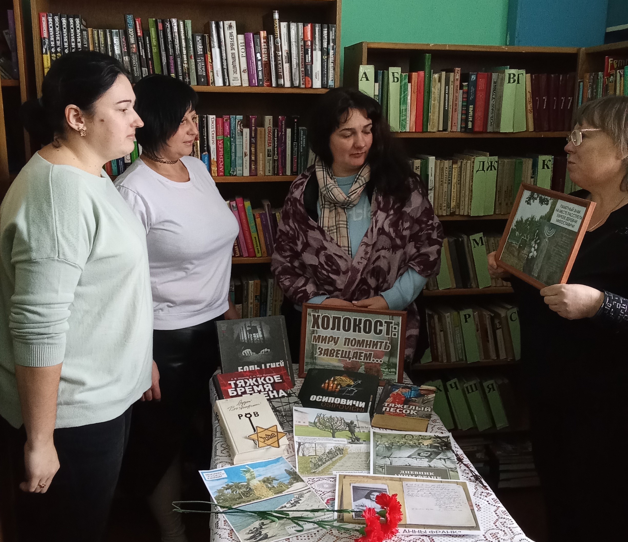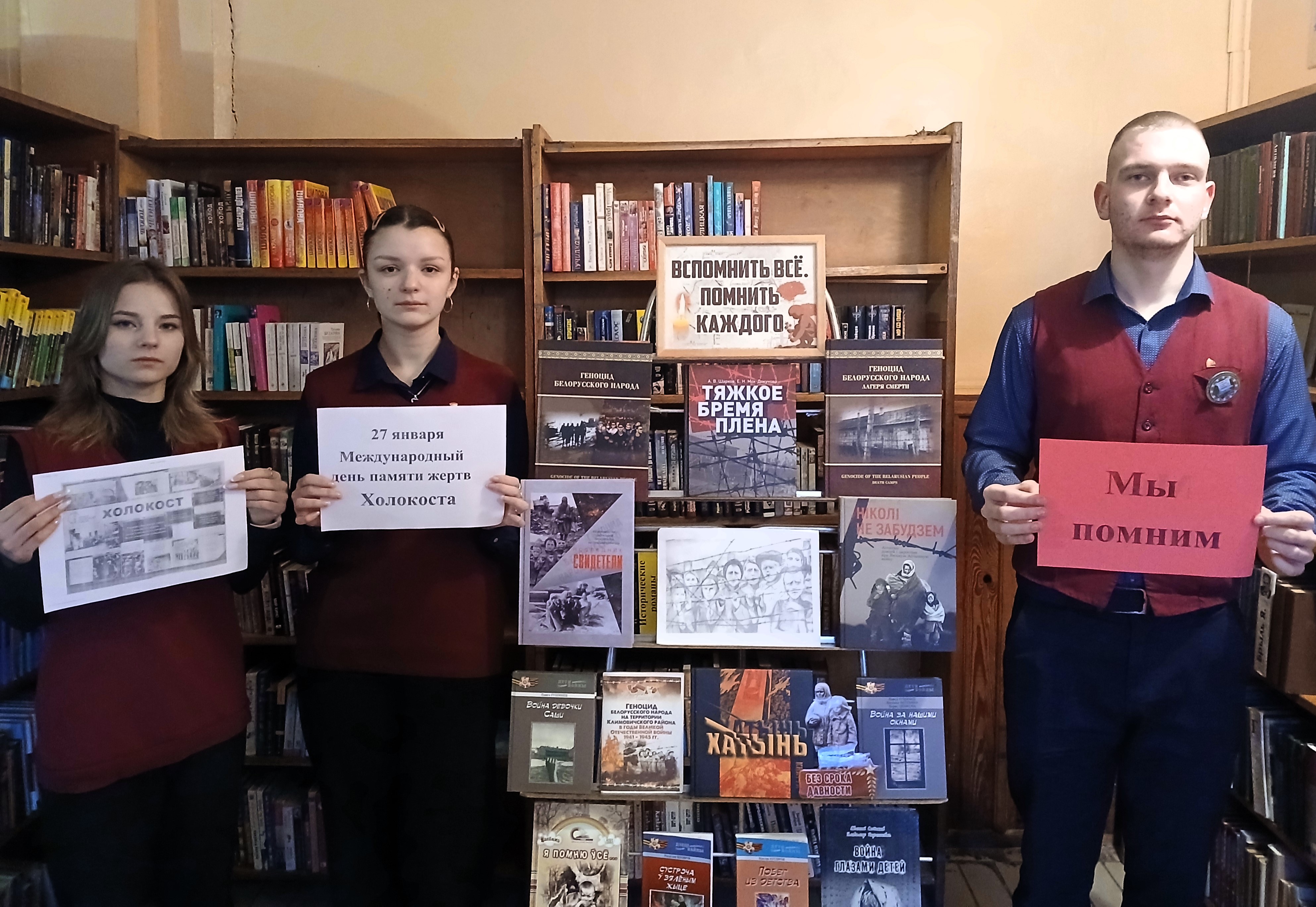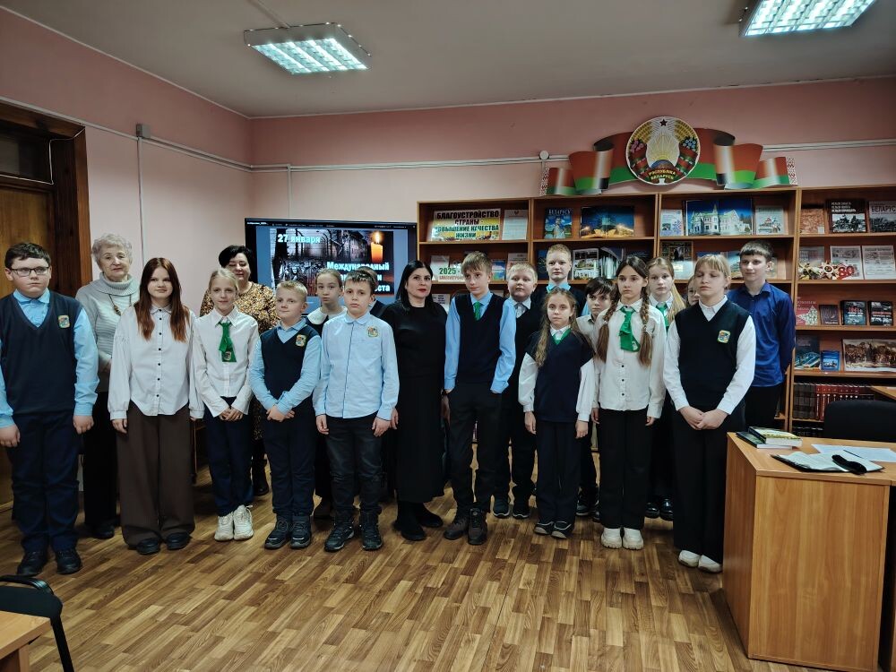 В городской библиотеке № 1, Звенчатской и Стародединской сельских библиотеках на часах истории и памяти «Холокост: память поколений», «Про Холокост расскажут книги», «Геноцид - боль и память» библиотекари рассказали юным читателям о событиях, предшествующих Холокосту, которые стали отправной точкой для дальнейшего уничтожения и гонения еврейского народа. Ребята узнали о зверстах фашистов в годы Великой Отечественной войны, судьбе еврейского народа на территории Беларуси, познакомились с тематическими обзорами литературы «Память и боль белорусской земли», которые дали возможность прикоснуться к трагическим страницам истории, почтили память безвинно погибших минутой молчания.