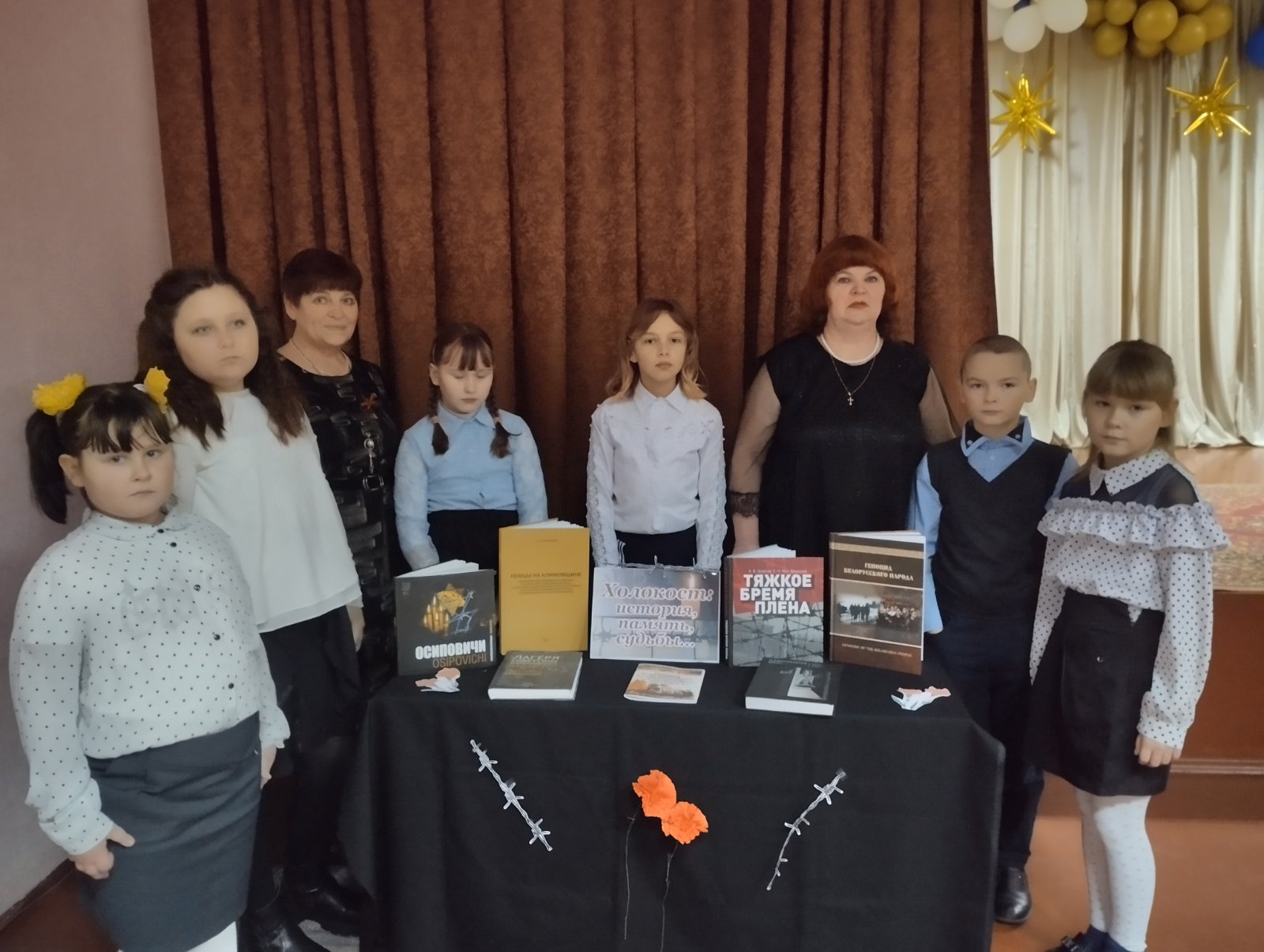 Участники мероприятия смогли ознакомиться с выставкой книг «Холокост: миру помнить завещаем…», на которой были представлены сборники документов и материалов о преступлениях нацистов и их пособников против мирного населения и военнопленных в годы Великой Отечественной войны, книги из серии «Беларусь. Трагедия и правда памяти», горькие свидетельства потомков очевидцев Холокоста на климовичской земле.