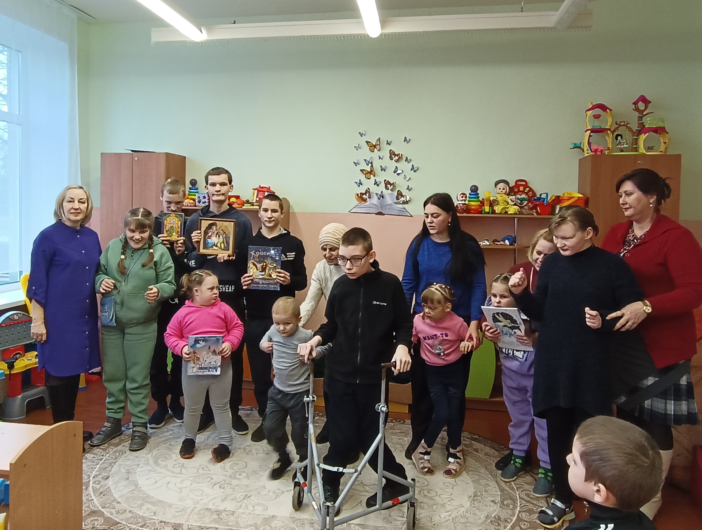 Не осталась в стороне и центральная районная библиотека. Заведующий отделом обслуживания и информации и по совместительству руководитель Клуба традиционных славянских ценностей Ольга Максимович посетила воспитанников ГУО «Климовичский районный центр коррекционно-развивающего обучения и реабилитации». Ольга Викторовна присоединилась к рождественским поздравлениям и подаркам от настоятеля Свято-Михайловского храма отца Иннокентия и рассказала об истории и традициях праздника Рождества Христова.