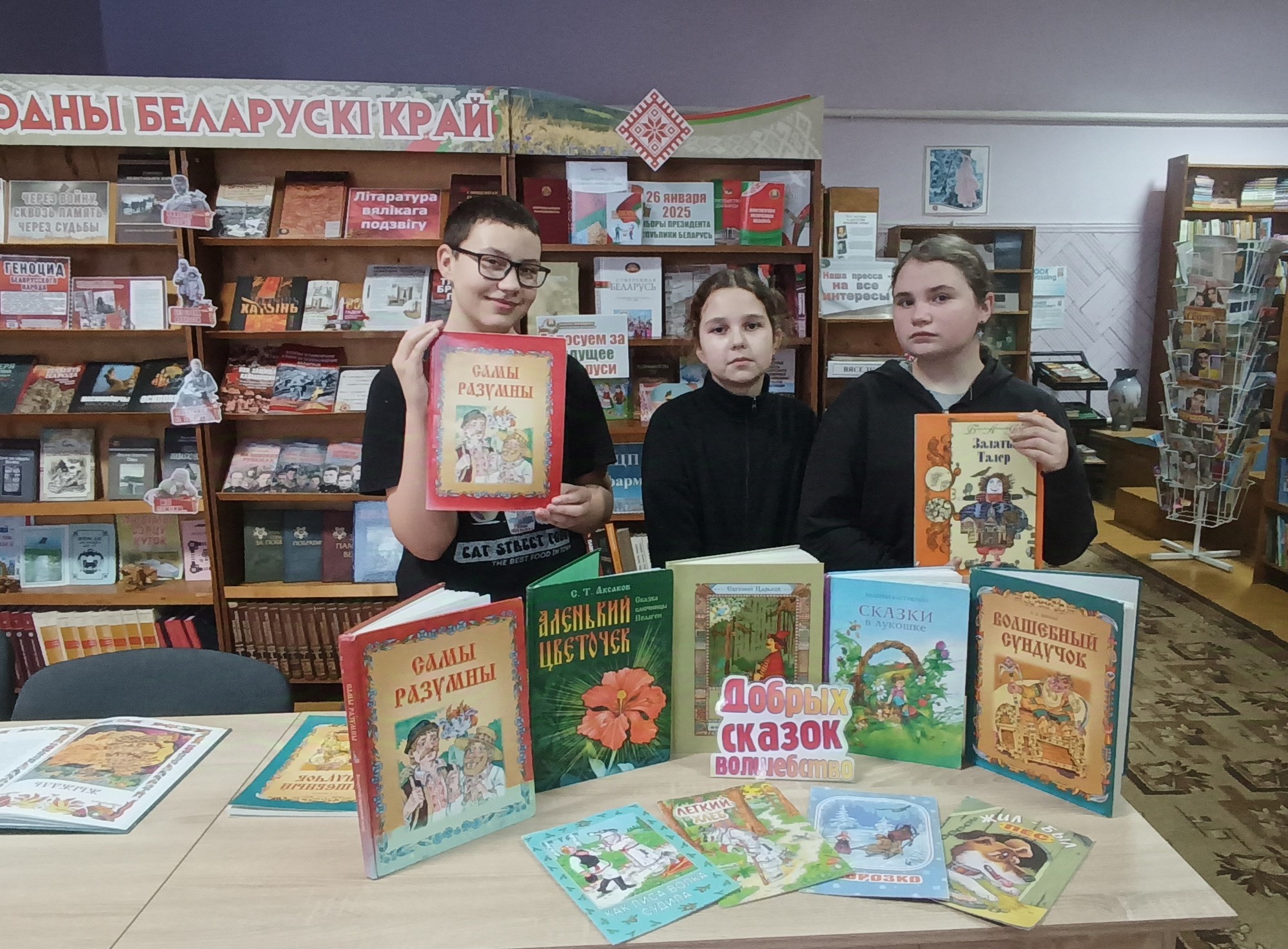 А в Звенчатской библиотеке с ребятами сельской школы проведены литературная викторина «По дороге зимних сказок» и выставка-знакомство со сказочными произведениями русских и белорусских писателей «Добрых сказок волшебство».