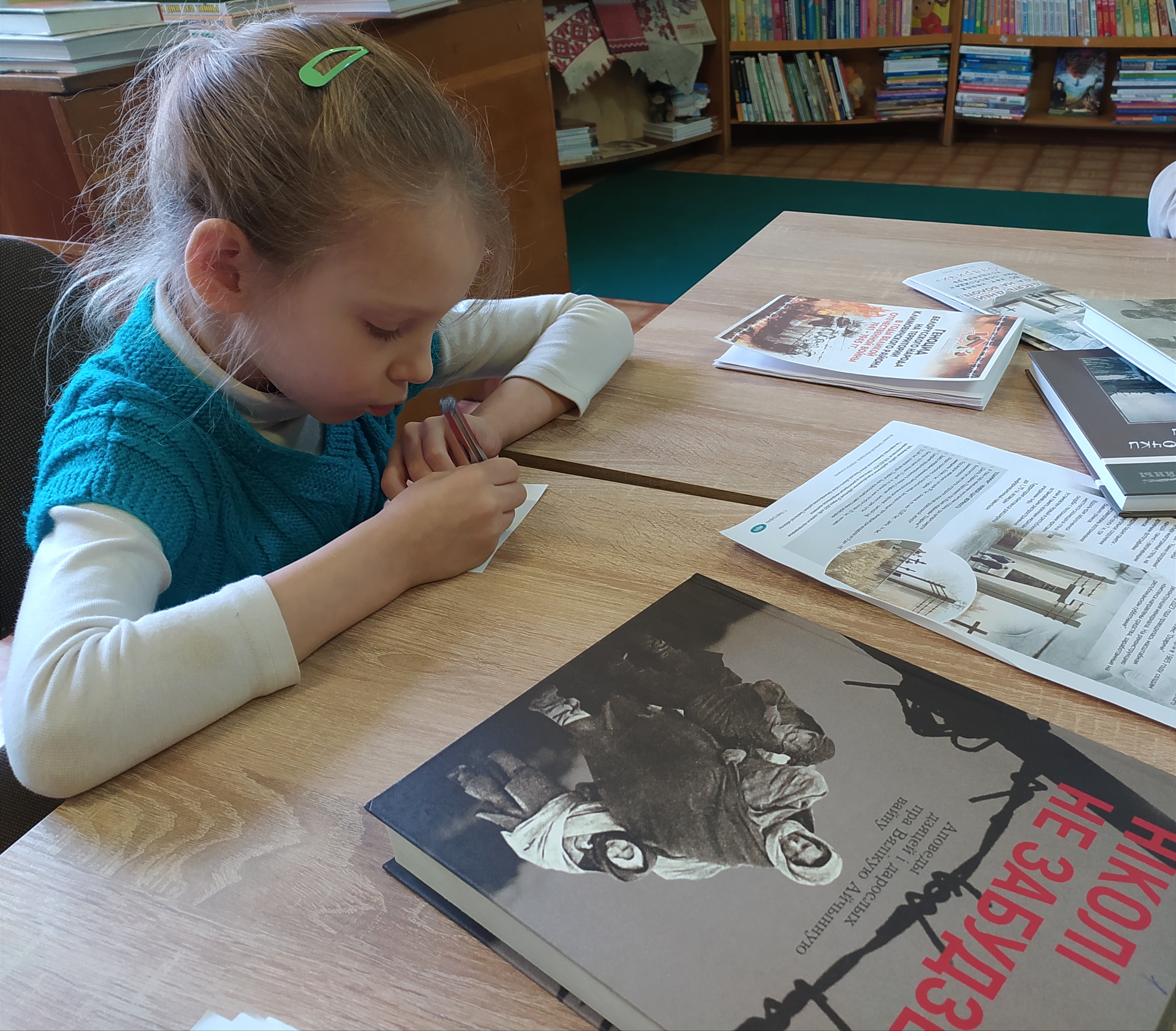 27 января, в Международный день памяти жертв Холокоста, в читальный зал центральной районной библиотеки на круглый стол «Холокост: преступление и наказание» были приглашены учащиеся шестого класса районной гимназии. В ходе мероприятия ребята узнали историю зверств фашистов на климовичской земле в годы Великой Отечественной войны, посмотрели видеоролик «По страницам Памяти» и прослушали рассказ-воспоминание Разуевой Татьяны Ивановны, узницы фашистского концлагеря «Озаричи», о фактах личной жизни и трагических событиях, очевидцем которых она стала. Каждый из участников смог пролистать страницы книг из серии «Беларусь. Трагедия и правда памяти».