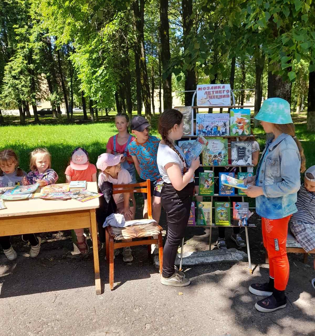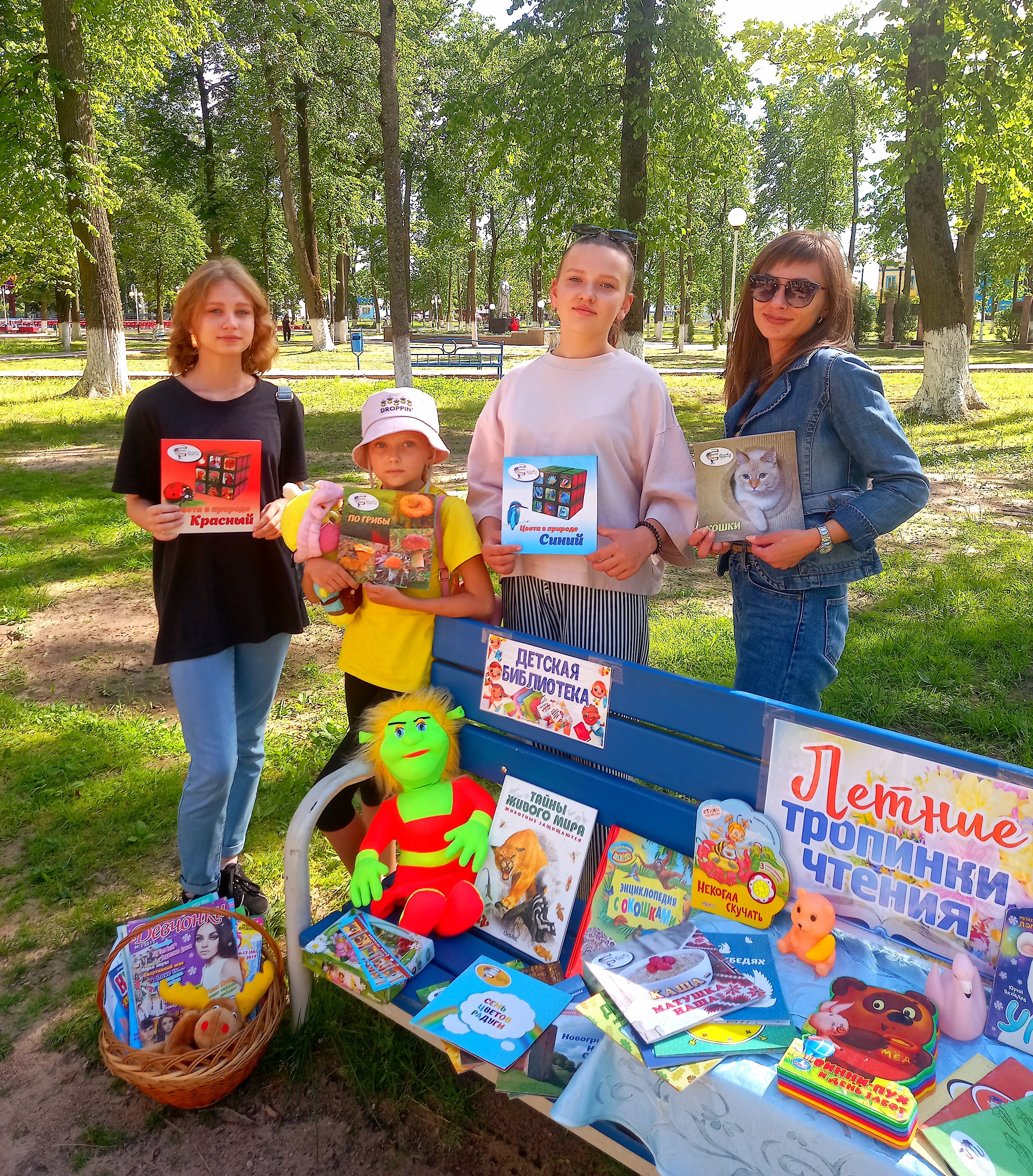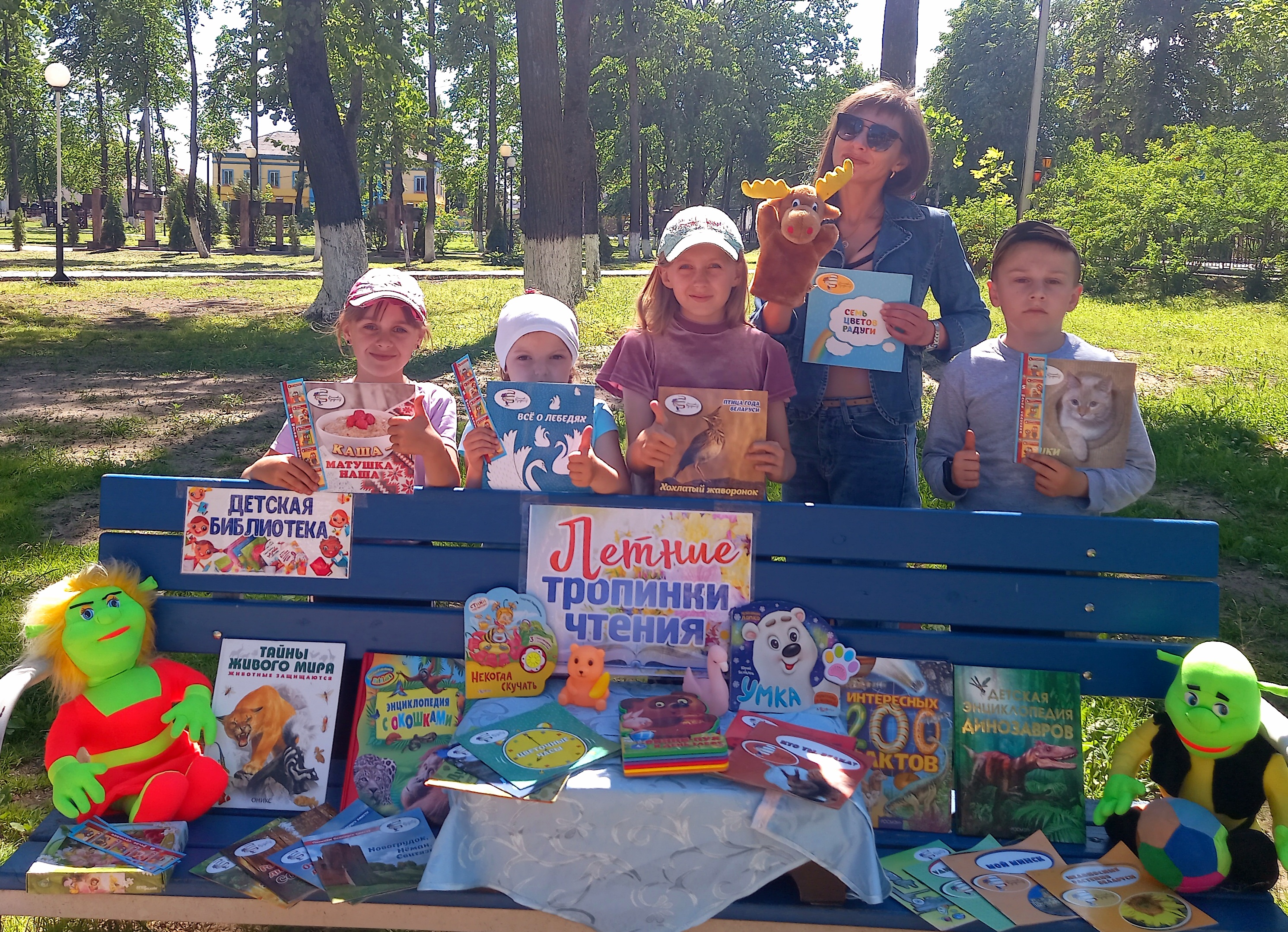 Сотрудники отдела по обслуживанию детского читателя центральной районной библиотеки организовывают в городском парке летний читальный зал «Летние тропинки чтения». Дети с удовольствием играют в подвижные игры и литературные викторины на свежем воздухе, листают журналы и книги.
