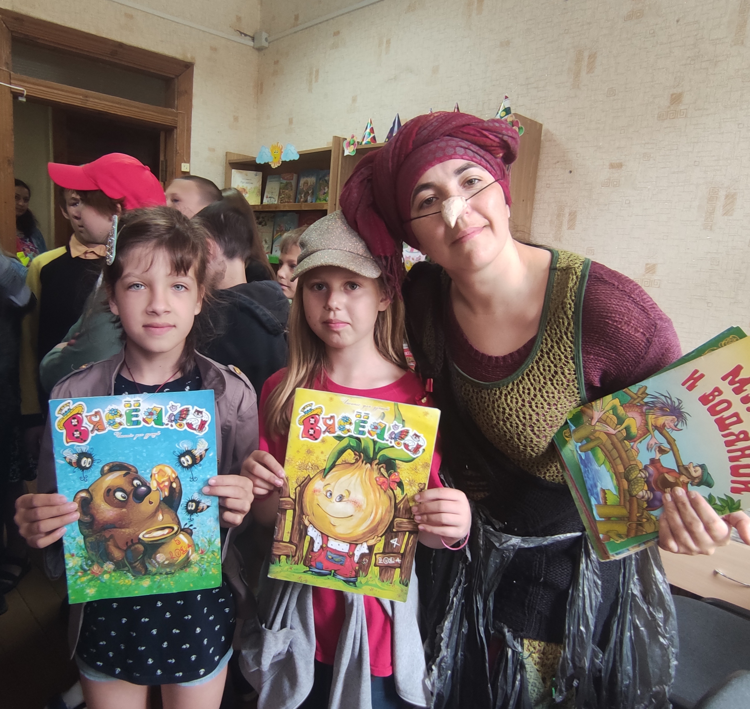 Герои научили ребят не унывать и не грустить, радоваться жизни, находить выход из любой ситуации, а еще поделились секретом с ребятами как весело и интересно, и главное с пользой провести досуг во время летних каникул. Секрет прост - нужно прийти в библиотеку и взять книгу. Книга покажет и расскажет, книга - это чудо! Ребят пригласили в "Ателье Храброго Портняжки" и на "Кухню Пеппи Длинныйчулок", где они вместе с героями справились с такими не простыми заданиями, как "Укротитель ниток", "Сортируем крупы", "Варим суп и компот".
