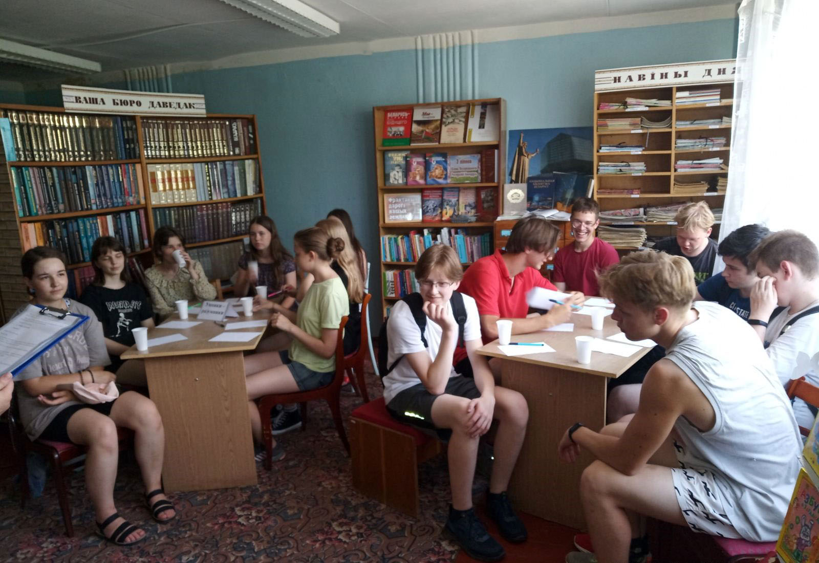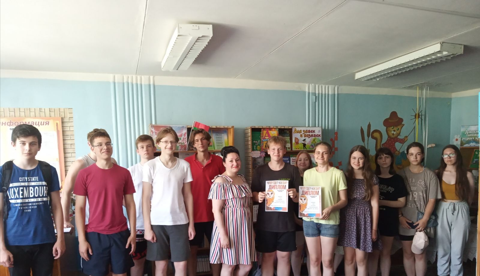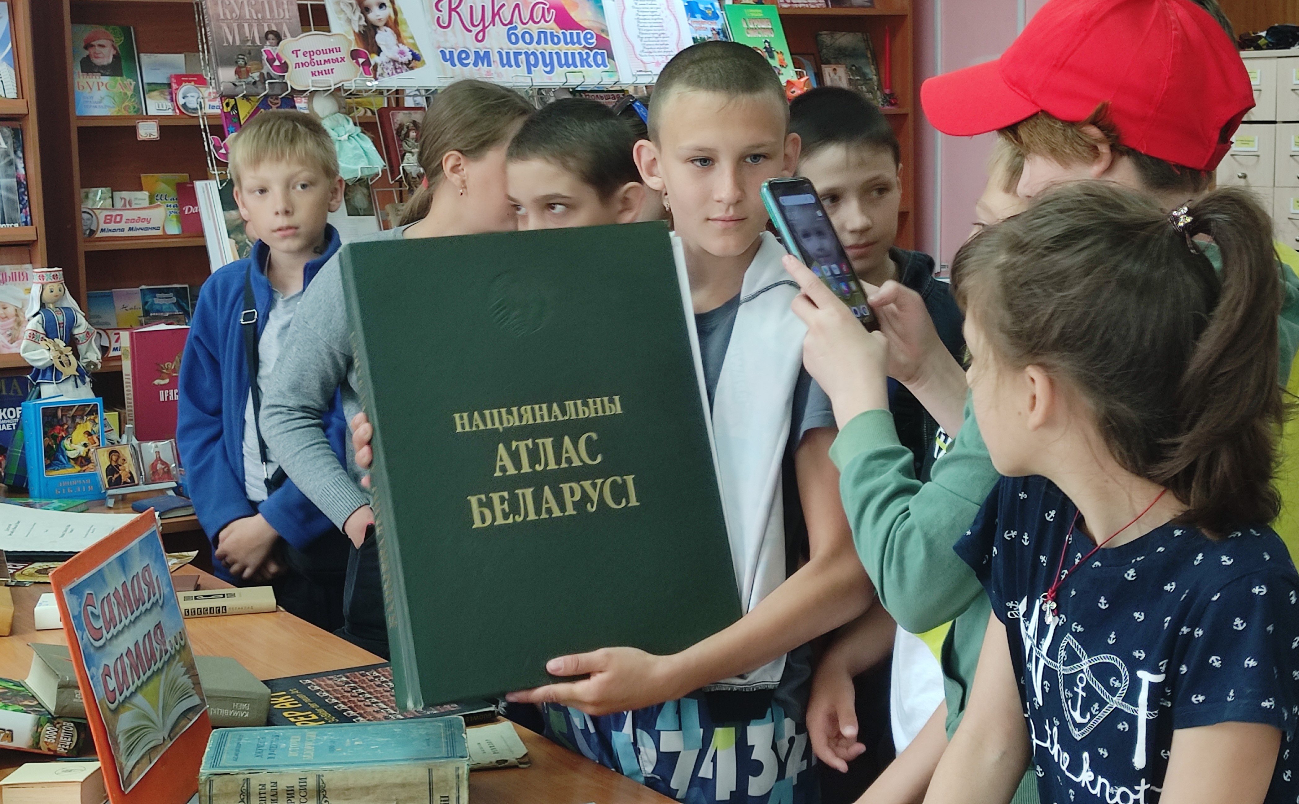 Для ребят из пришкольного лагеря средней школы №1 сотрудники отдела по обслуживанию детского читателя центральной районной библиотеки провели игру-путешествие «Родины нашей нет милей и краше». Участникам предстояло пройти нескольких маршрутов: «Исторический», «Беларусь героическая», «Символика нашей страны», «Беларусь на карте мира», «Беларусь литературная», «Флора и фауна».