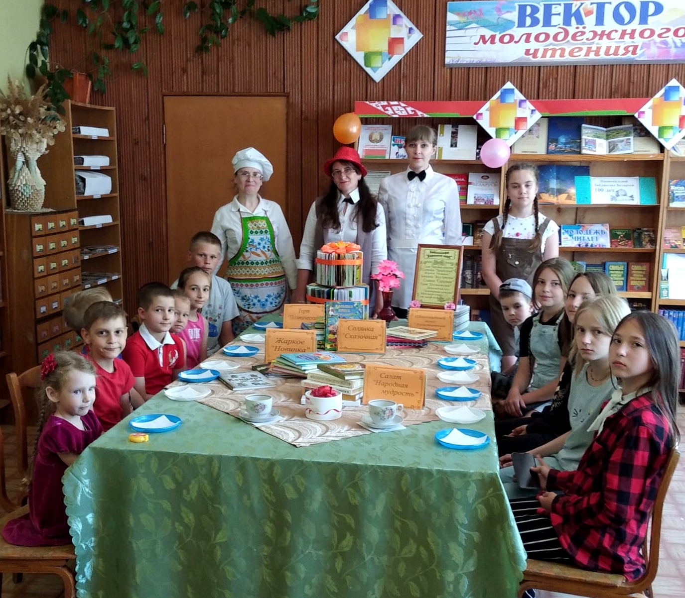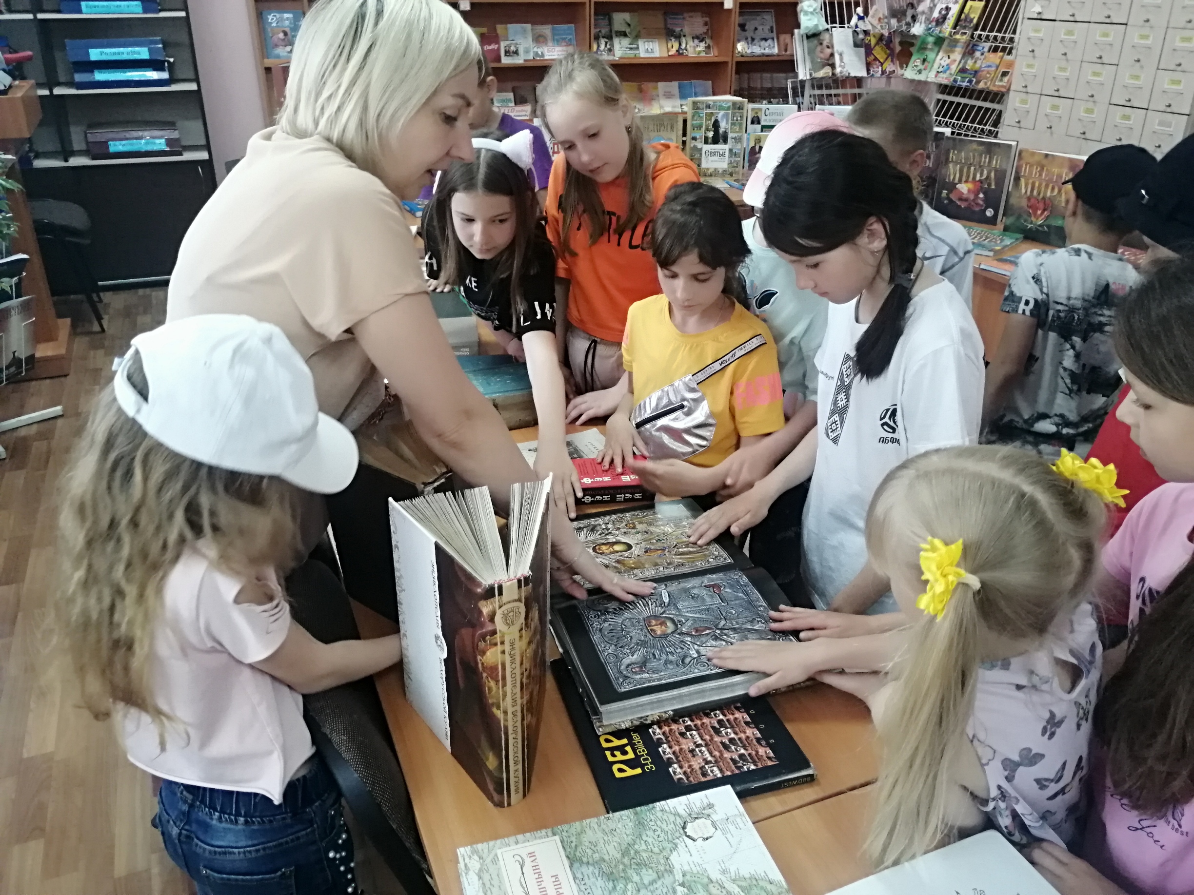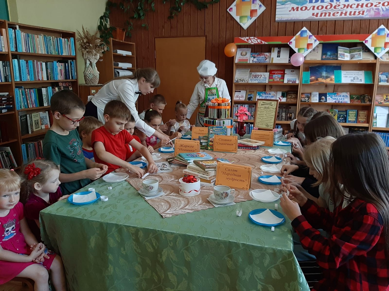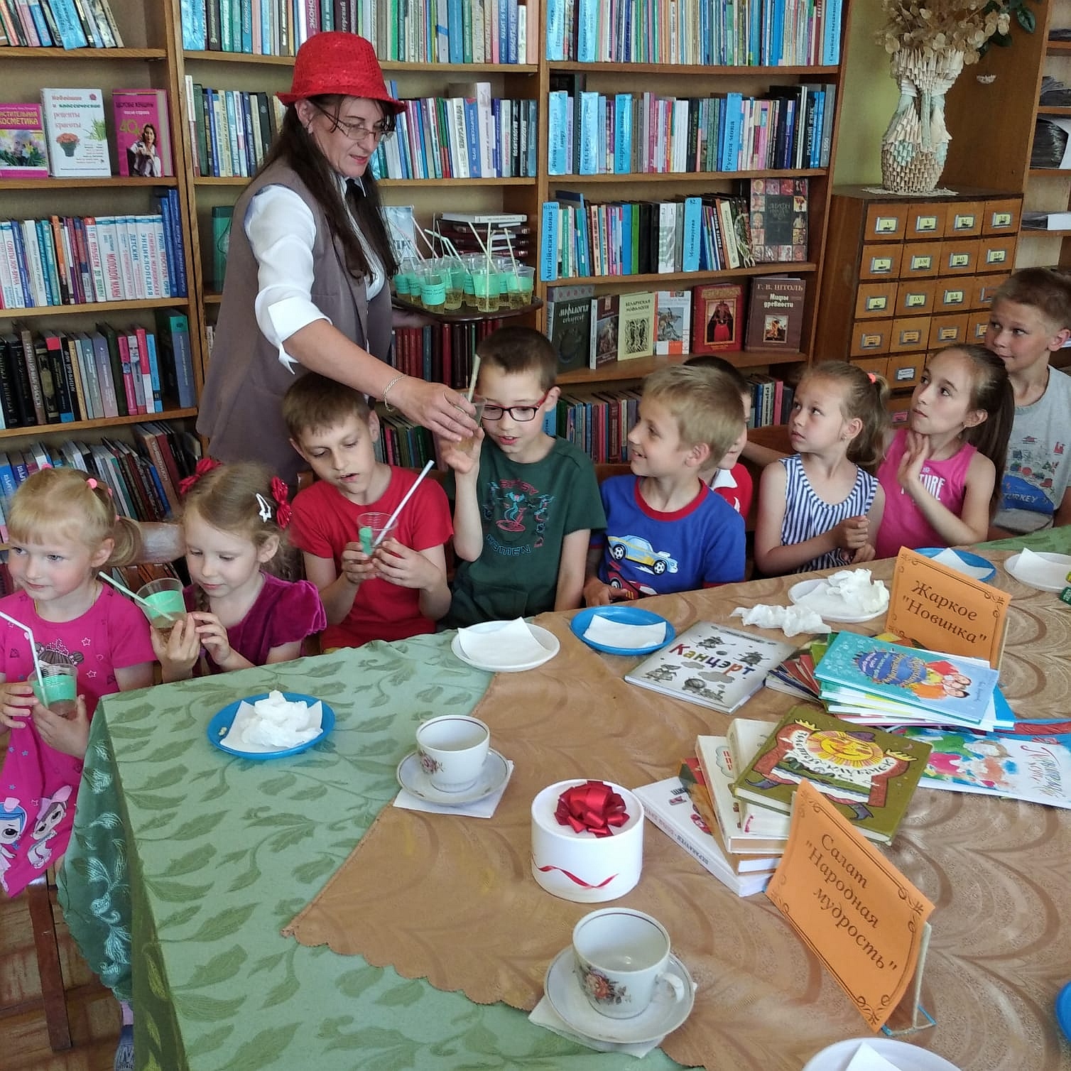 Атмосфера в библиотеке в летний период отличается от обычной. Так, сотрудники центральной районной библиотеки для ребят из пришкольного лагеря средней школы №1 провели литературный салон «Вместе с книгой – в лето».