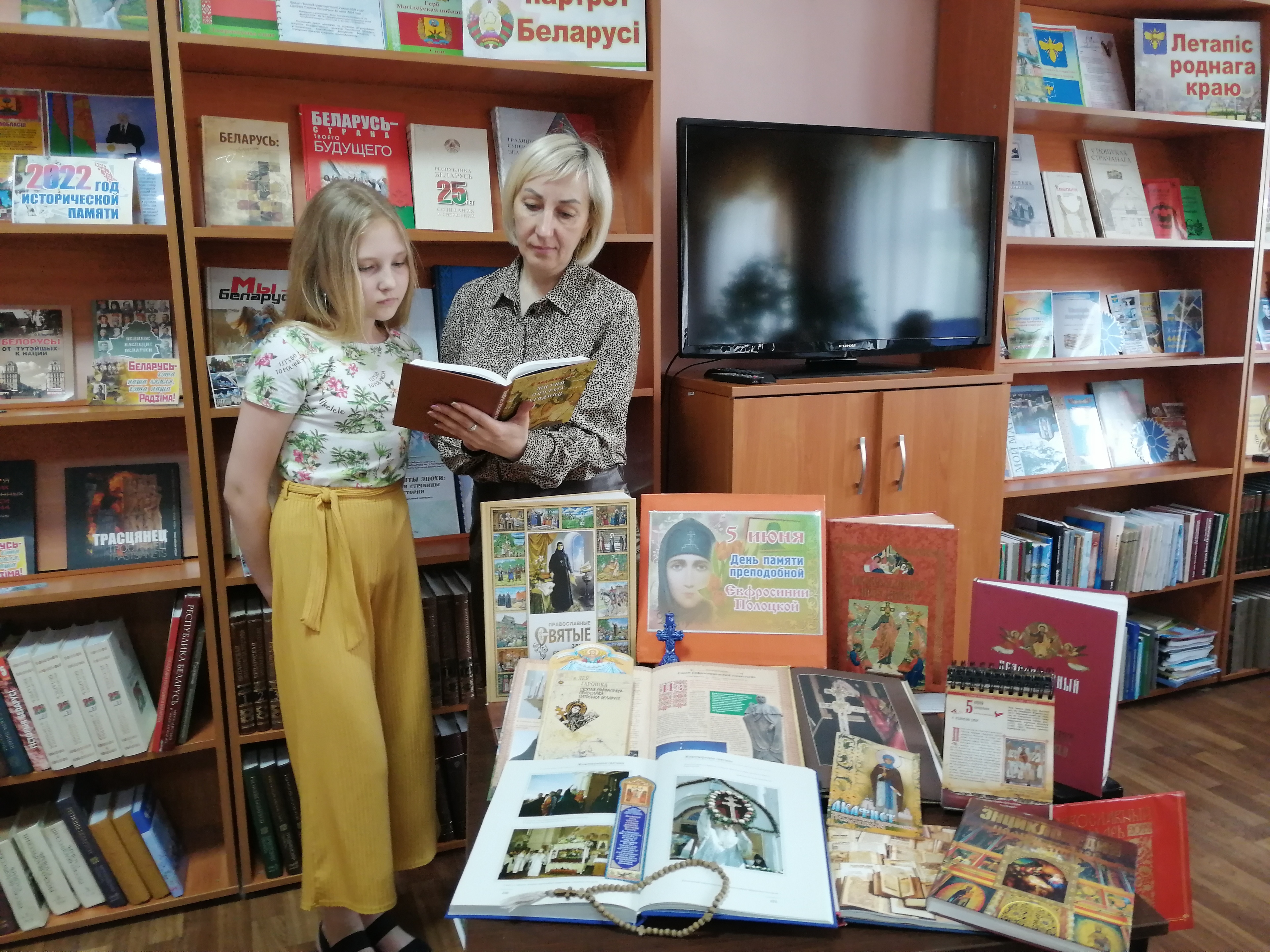 Вниманию читателей в читальном зале центральной районной библиотеки представлена книжная экспозиция, на которой представлена литература и информационный материал о жизненном пути княжеской дочери Предславы, которая выбрала путь служения Богу, своему родному краю и земле Белой Руси, войдя в историю под именем Евфросиния.