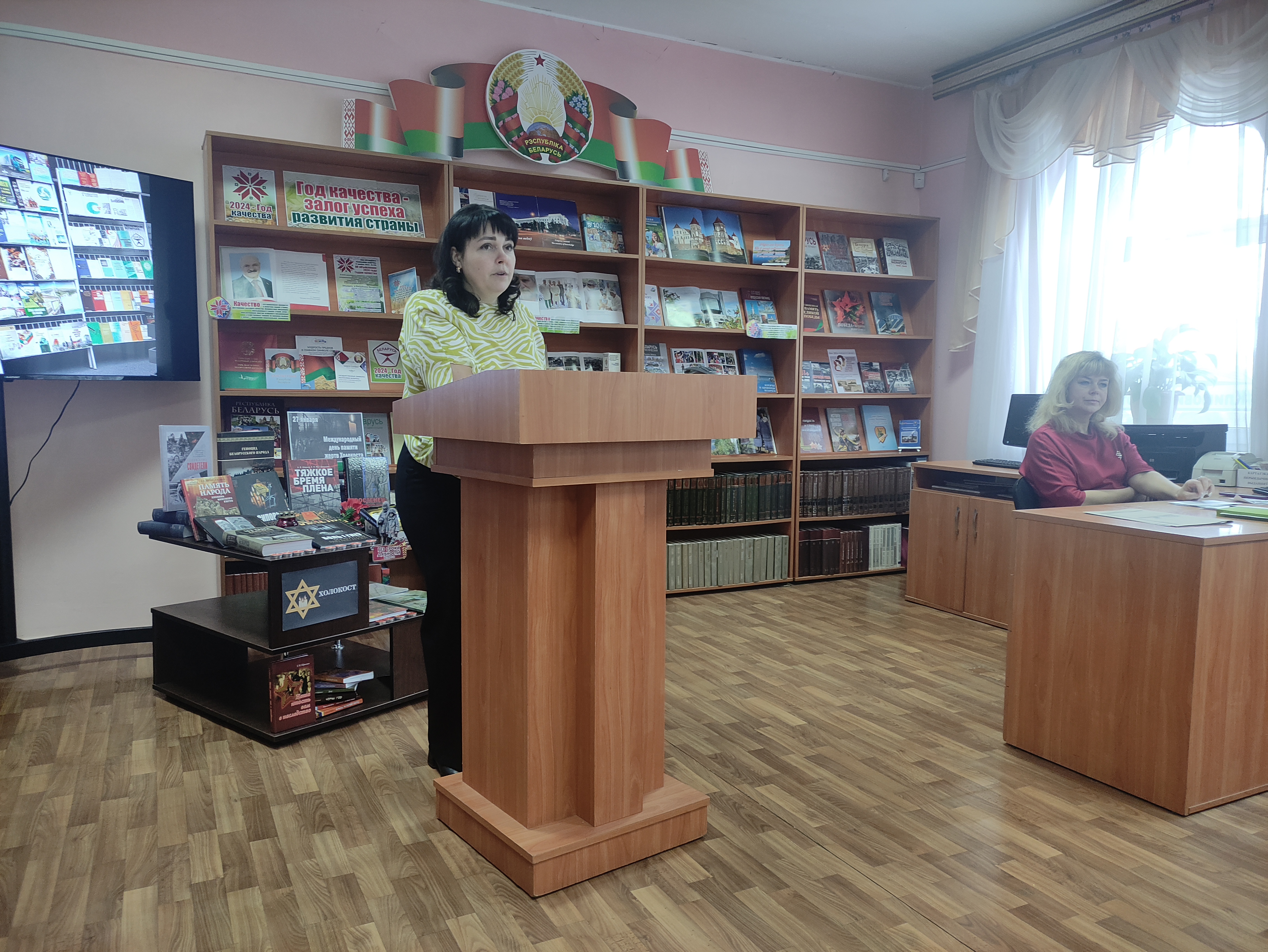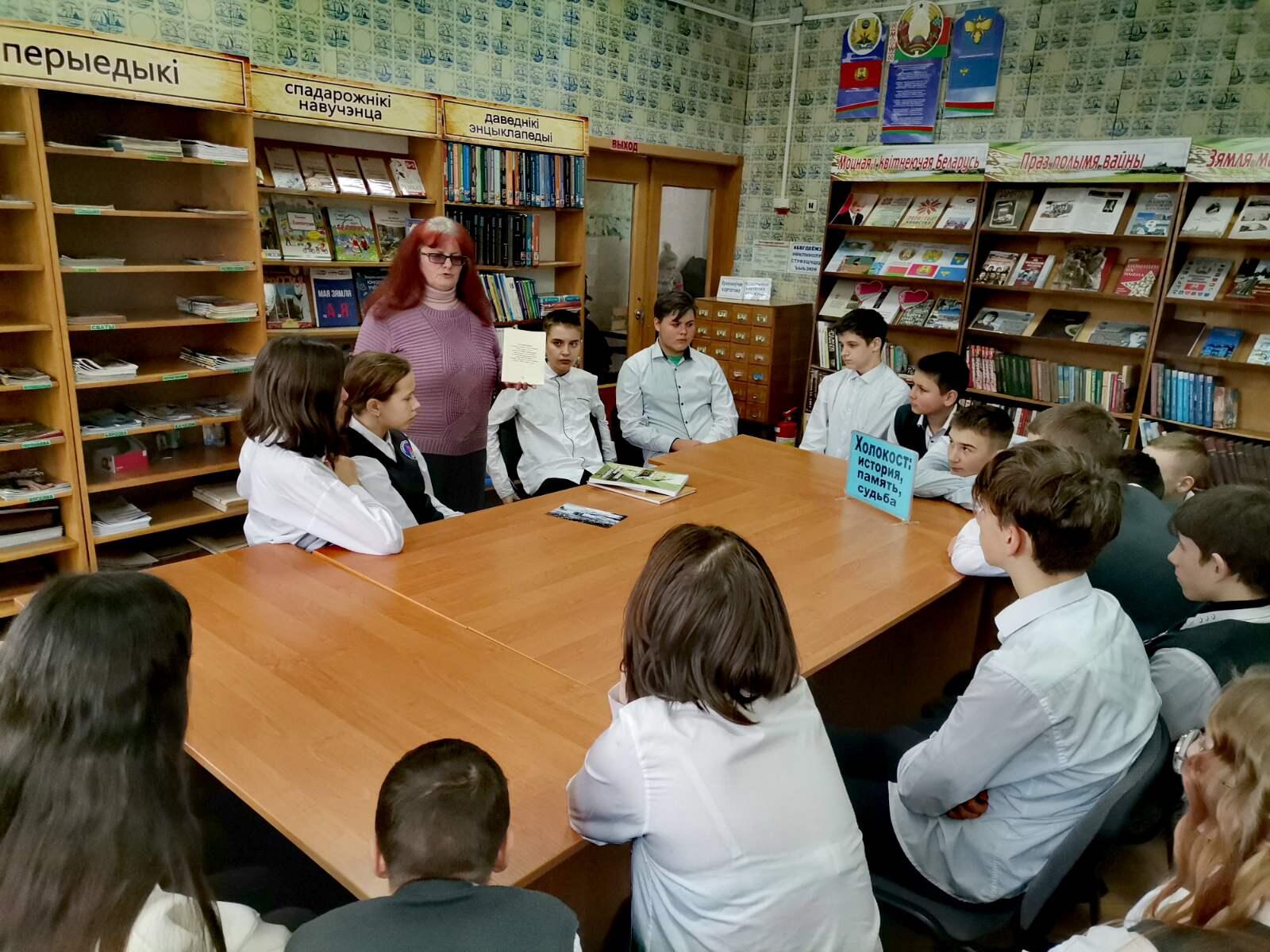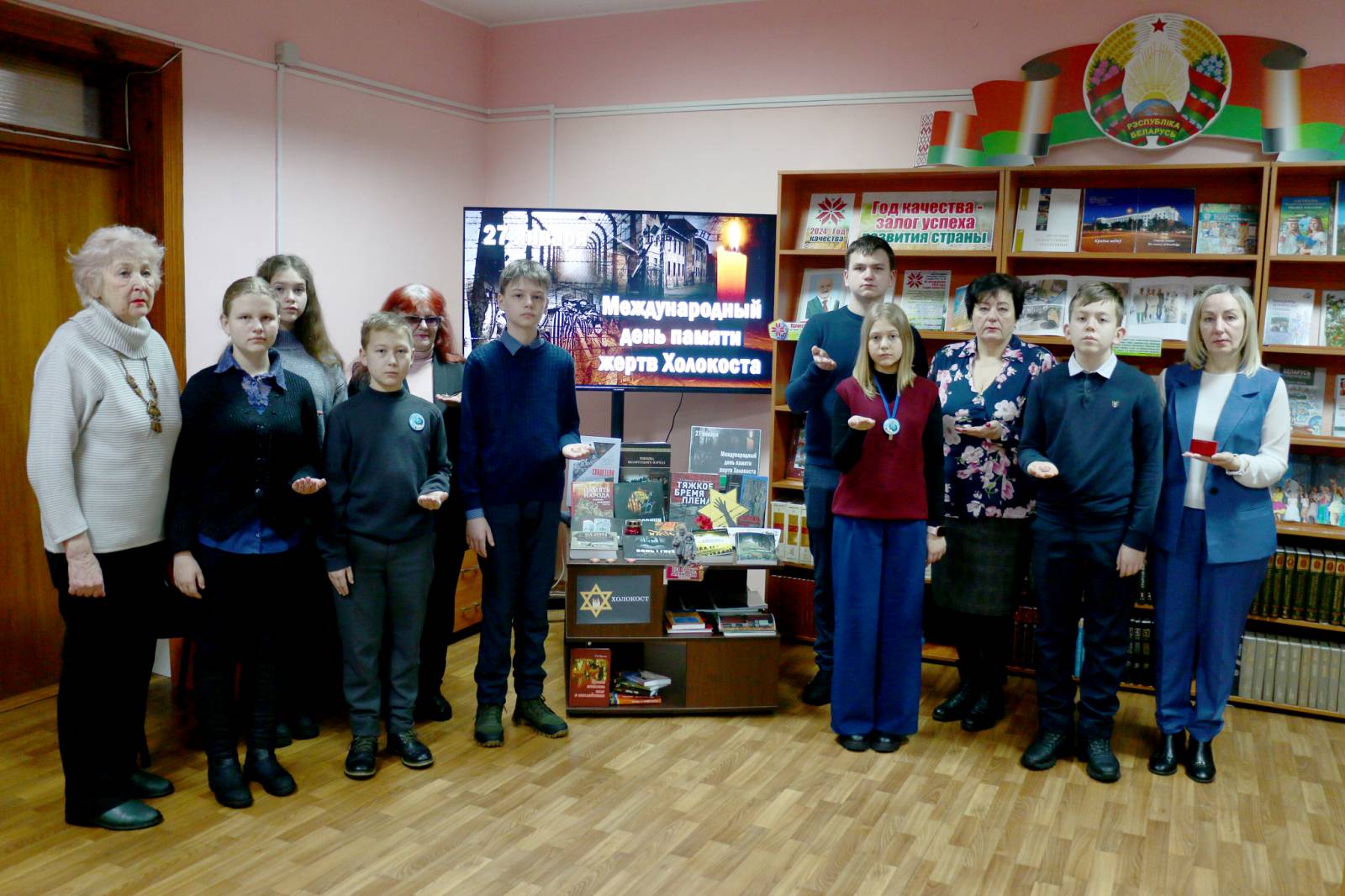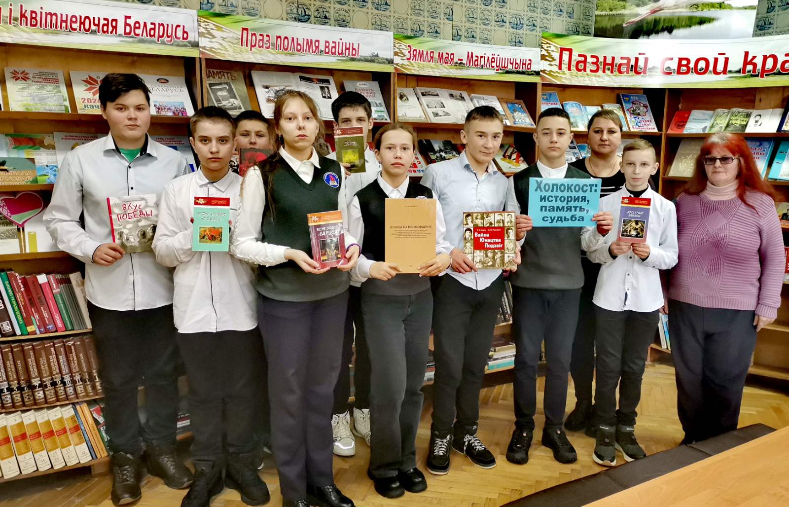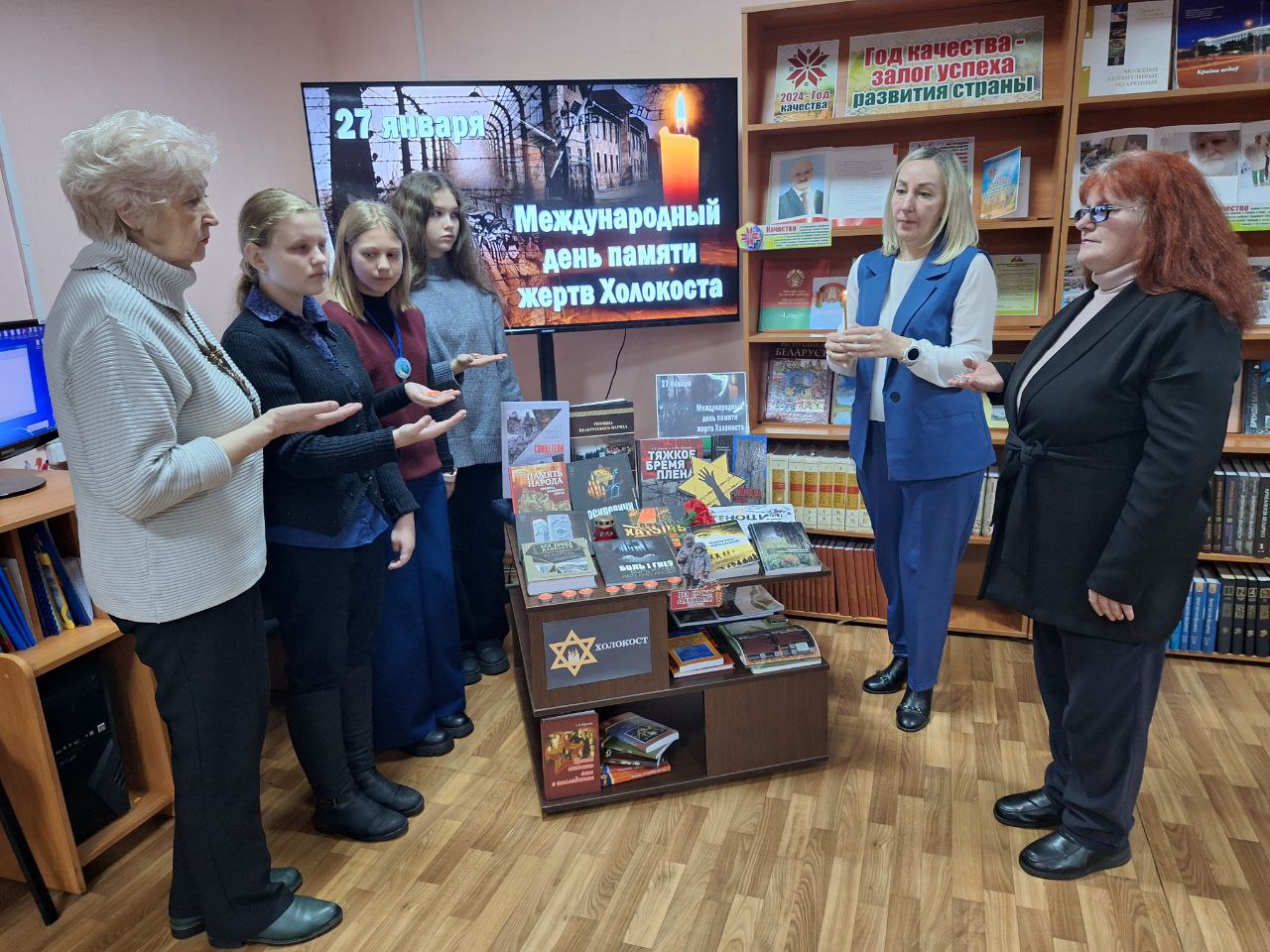 В центральной районной библиотеке прошёл круглый стол «Холокост – преступление против человечества», участниками которого стали учащиеся 7-го класса средней школы №3 и представители ветеранской организации. Библиотекарь познакомила ребят с основными понятиями, связанными с трагедией Холокоста, напомнила о многочисленных жертвах фашизма.