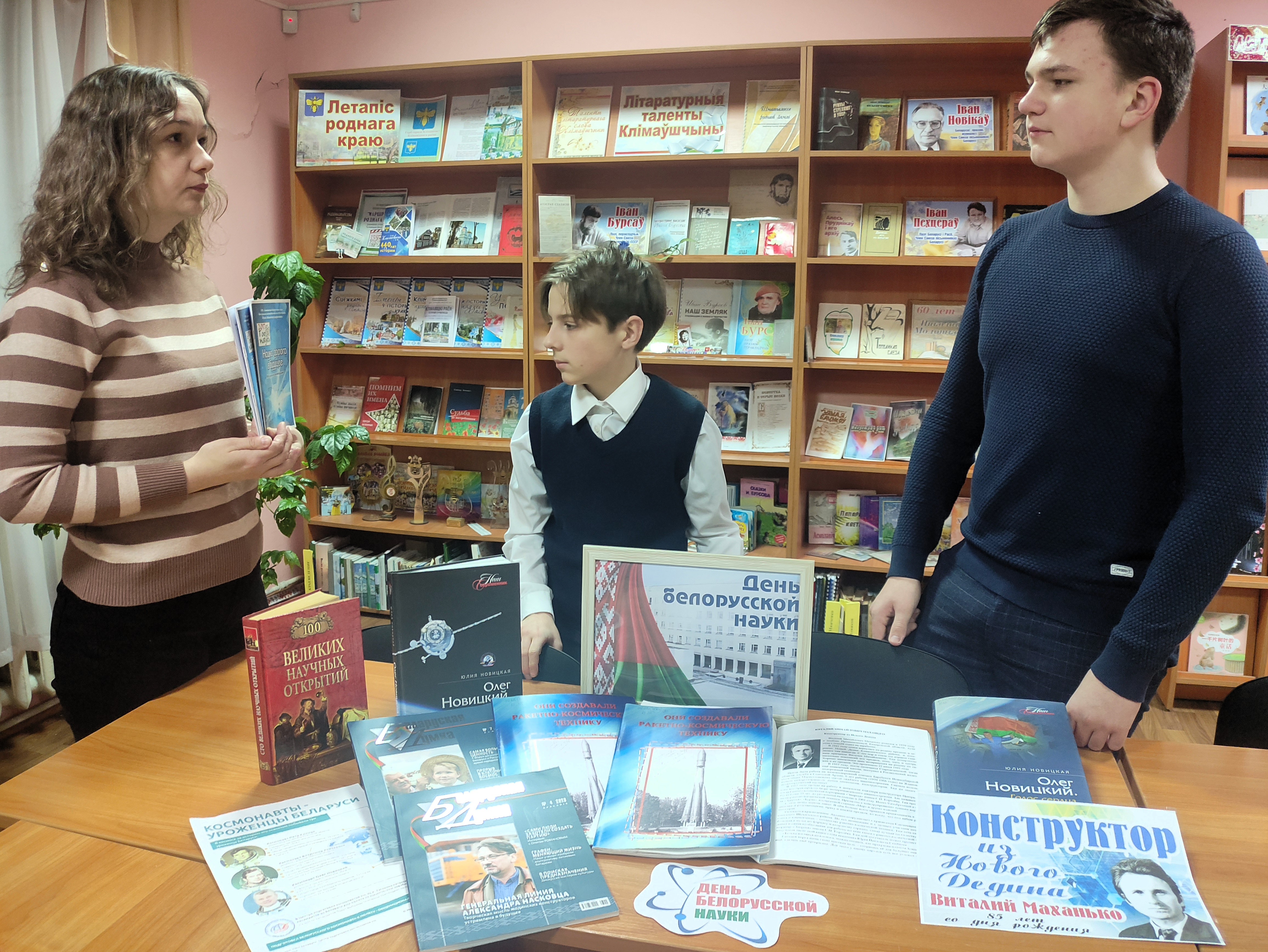 День белорусской науки – повод вспомнить тех, кто посвятил себя науке, поиску, стремлению открывать новое, двигать прогресс. В центральной районной библиотеке имени Ивана Пехтерева прошел час информации «Научные достижения белорусов — вклад в будущее страны» для учащихся 7 класса средней школы №3. Библиограф познакомила присутствующих с нашими знаменитыми земляками, которые прославили наш край своими открытиями и достижениями. Среди них: Виталий Михайлович Маханько конструктор космической техники из Нового Дедина, Крупинин Николай Яковлевич заслуженный эколог Российской Федерации, доктор экономических наук из д. Совна и другими знаменитыми земляками.