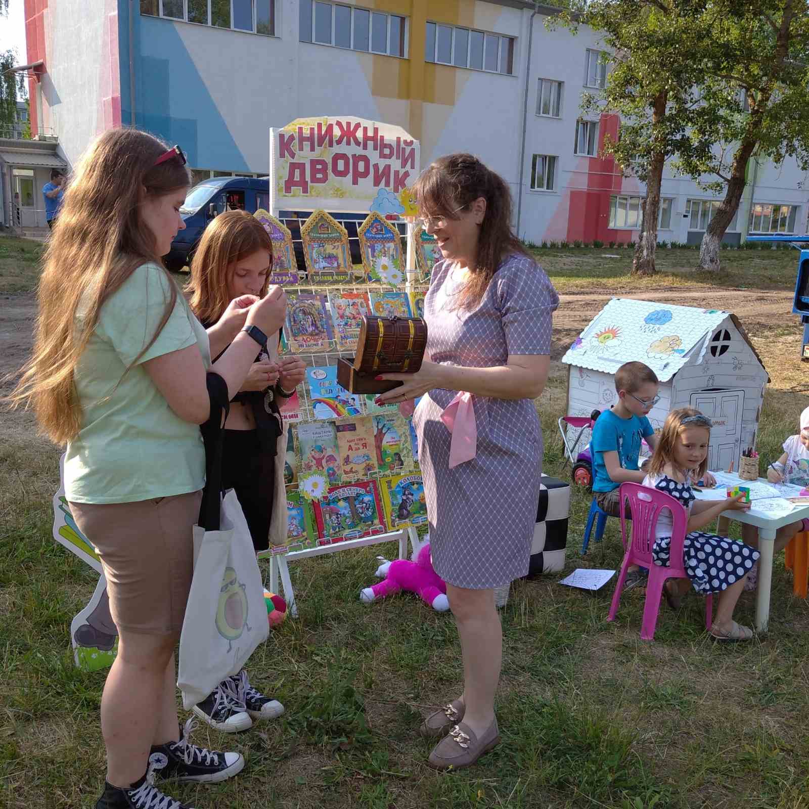 Немалый интерес у юных климовчан и их родителей на празднике микрозоны «50 лет СССР» вызвала интерактивная библиотечная площадка «Книжный дворик», которую организовали сотрудники городской библиотеки №1.