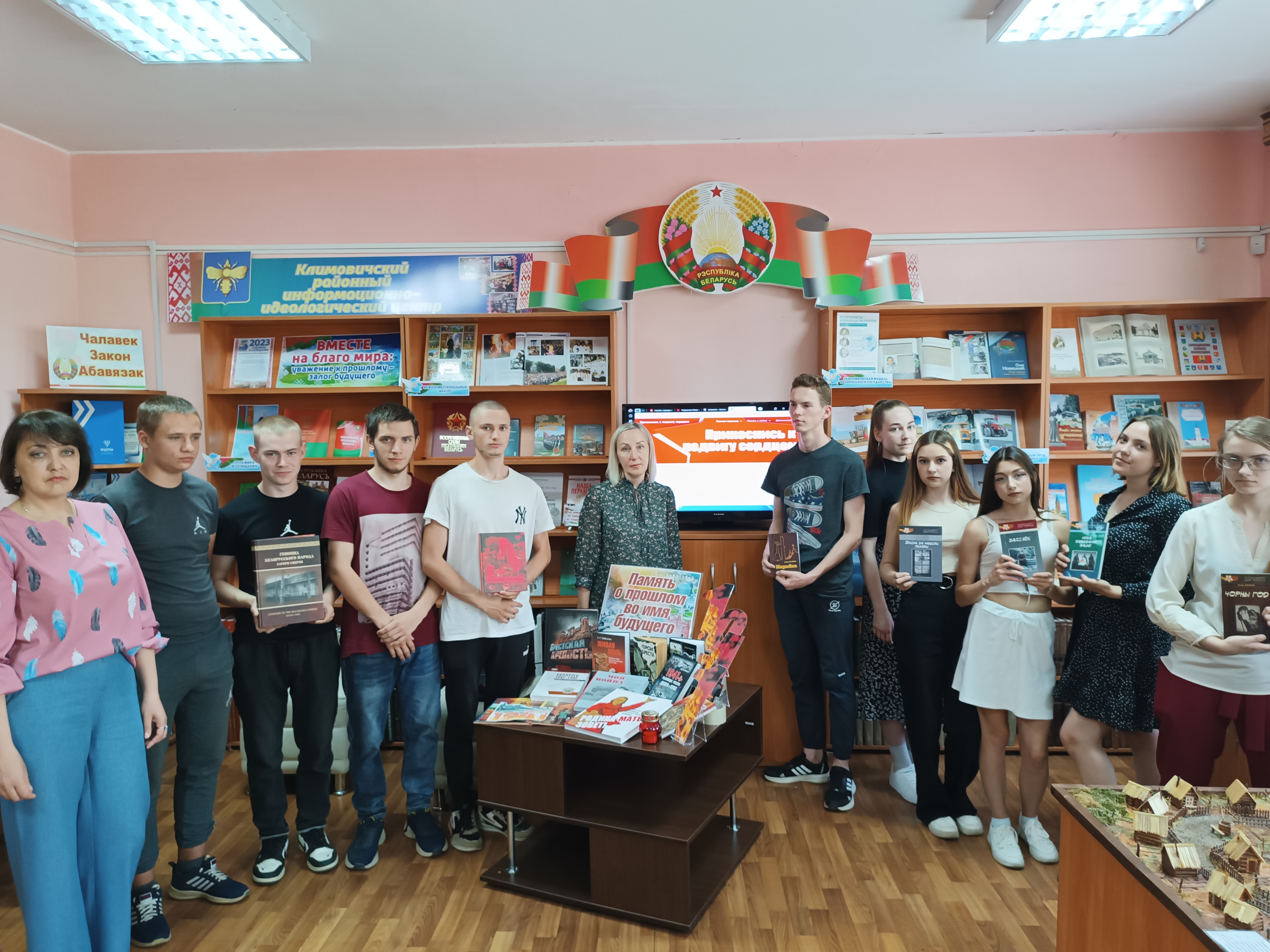 Сотрудники центральной районной библиотеки для учащихся УО «Климовичский государственный аграрный колледж» провели историко-патриотический час «День, который разрушил мечты». Ведущие рассказали о начале войны о том, как в этот самый длинный день изменилась жизнь целого народа, о преступлениях немецко-фашистских захватчиков на территории Беларуси: судьбе белорусских деревень Хатынь, Борки, Ола, концлагерях "Тростенец", "Озаричи" и других местах массового уничтожения людей, военнопленных, мирных жителей, партизан.