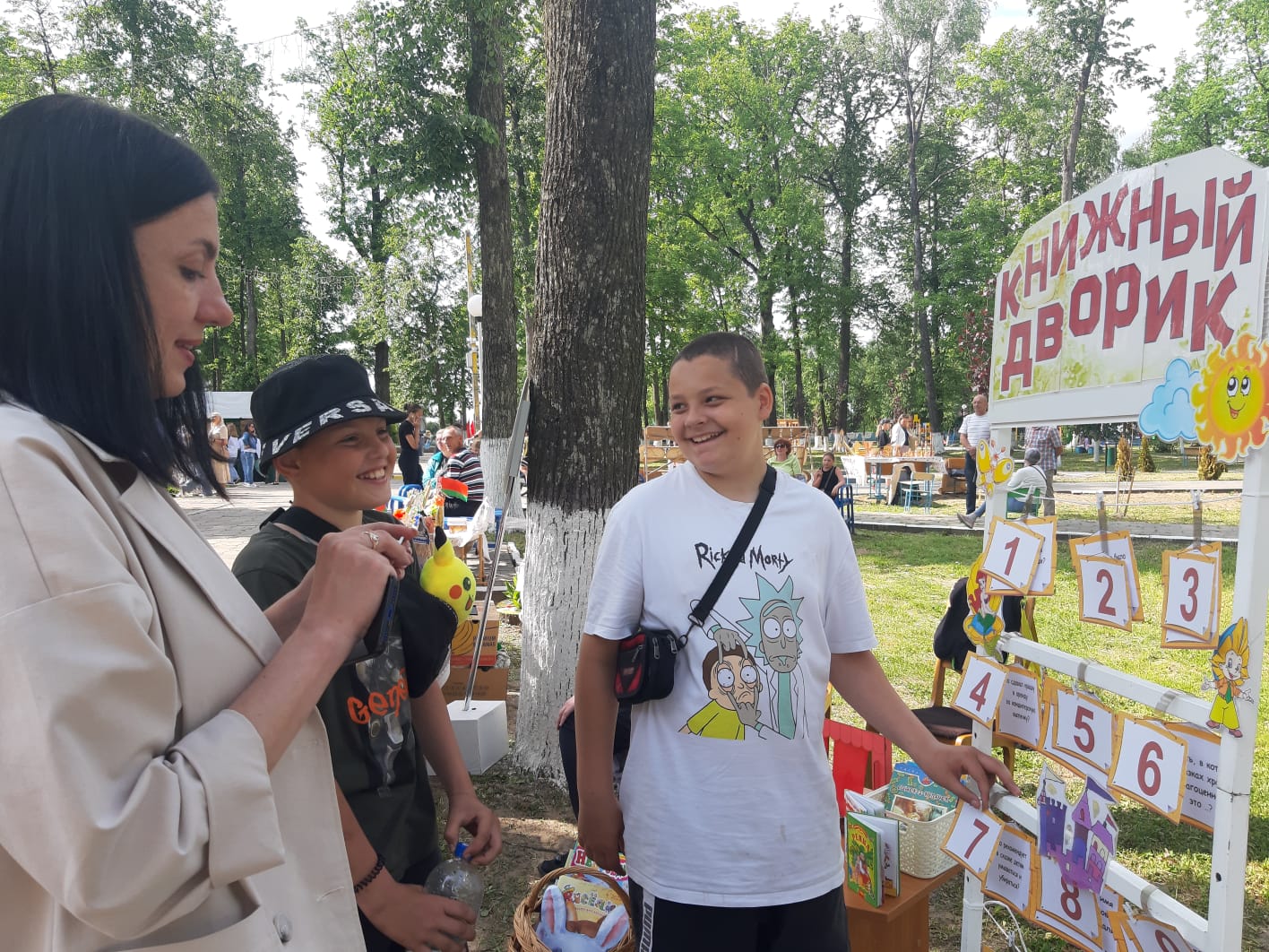 В городском парке сотрудники центральной районной библиотеки организовали литературную площадку «По книжной радуге – в детство». Дети приняли участие в литературных викторинах, квестах, игровых конкурсах. Ребята не только с пользой провели время, но и проявили свои творческие способности. Здесь их ждали сюрпризы, сладкие призы и многое другое.
