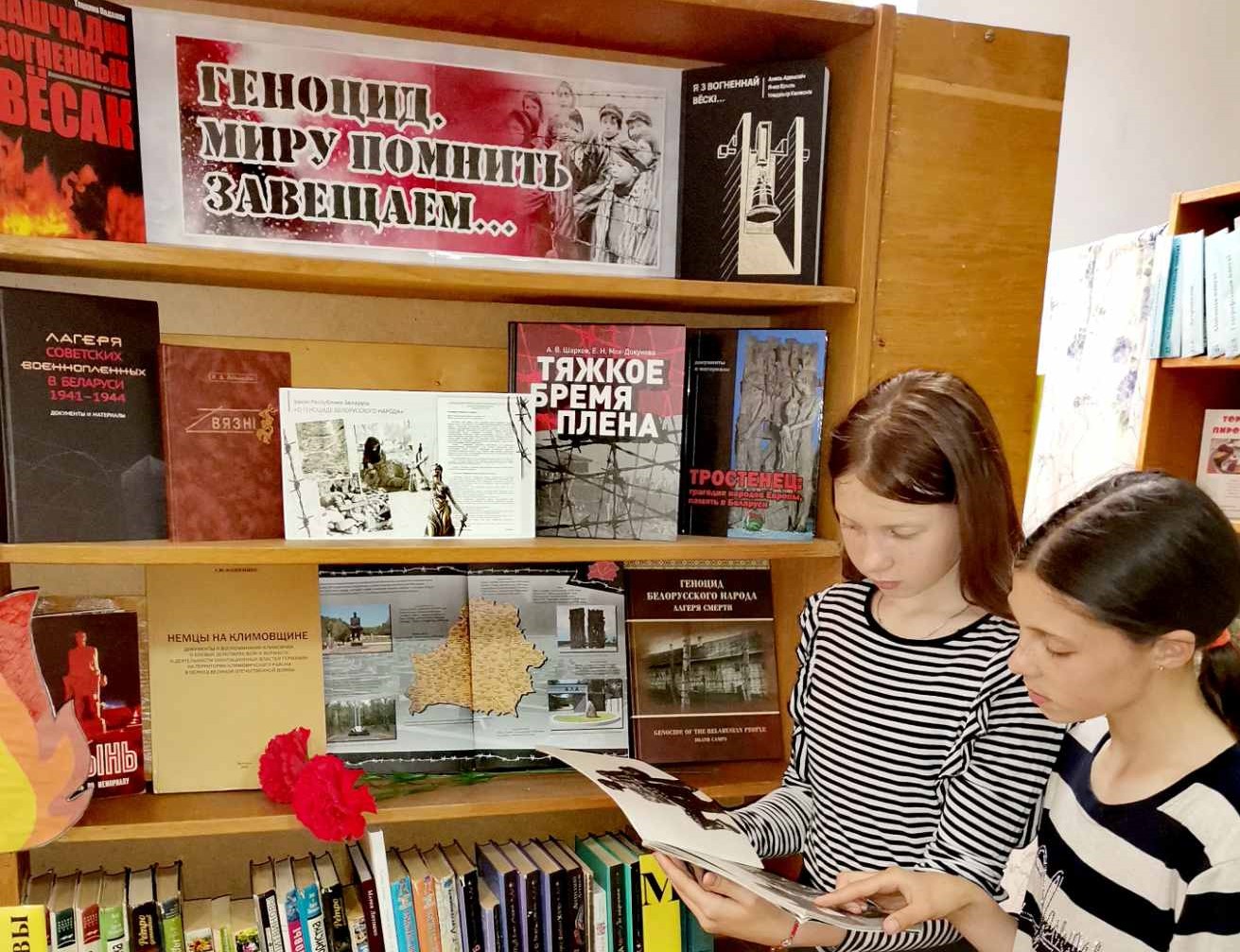 Посетители библиотек могут познакомиться с книгами “Геноцид белорусского народа”, “Геноцид белорусского народа. Лагеря смерти”, созданными на основе материалов и документов, полученных Генеральной прокуратурой Республики Беларусь в рамках уголовного дела по факту геноцида белорусского народа в годы войны.
