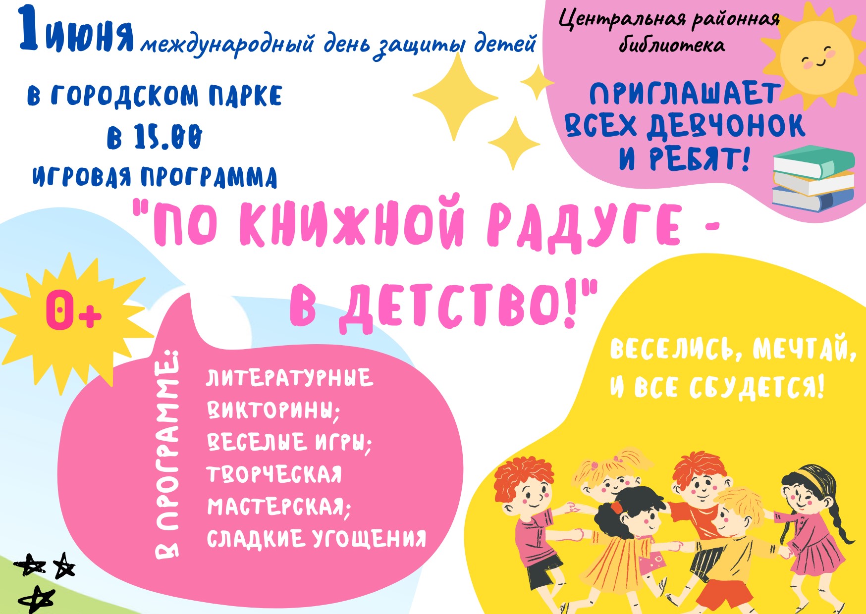 В городском парке для юных гостей и их родителей сотрудники центральной районной библиотеки организуют игровую программу «По книжной радуге – в детство».