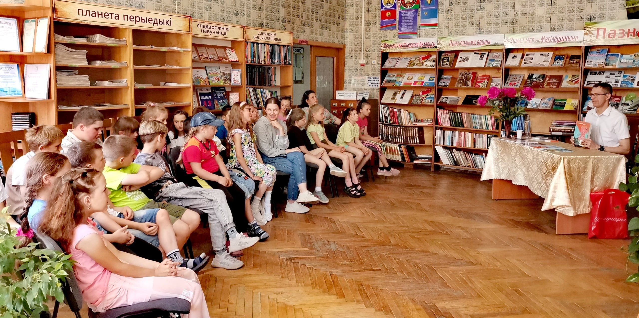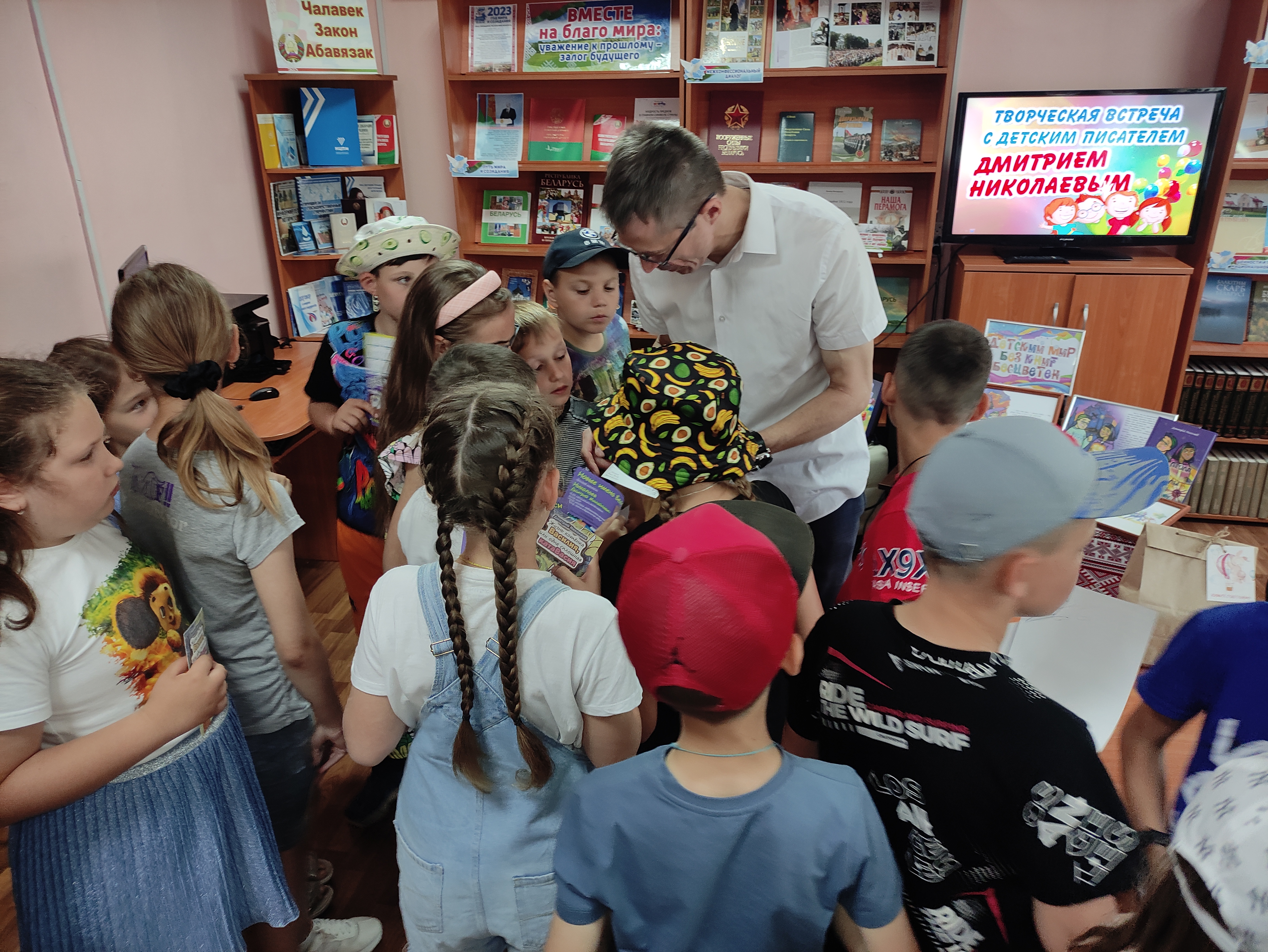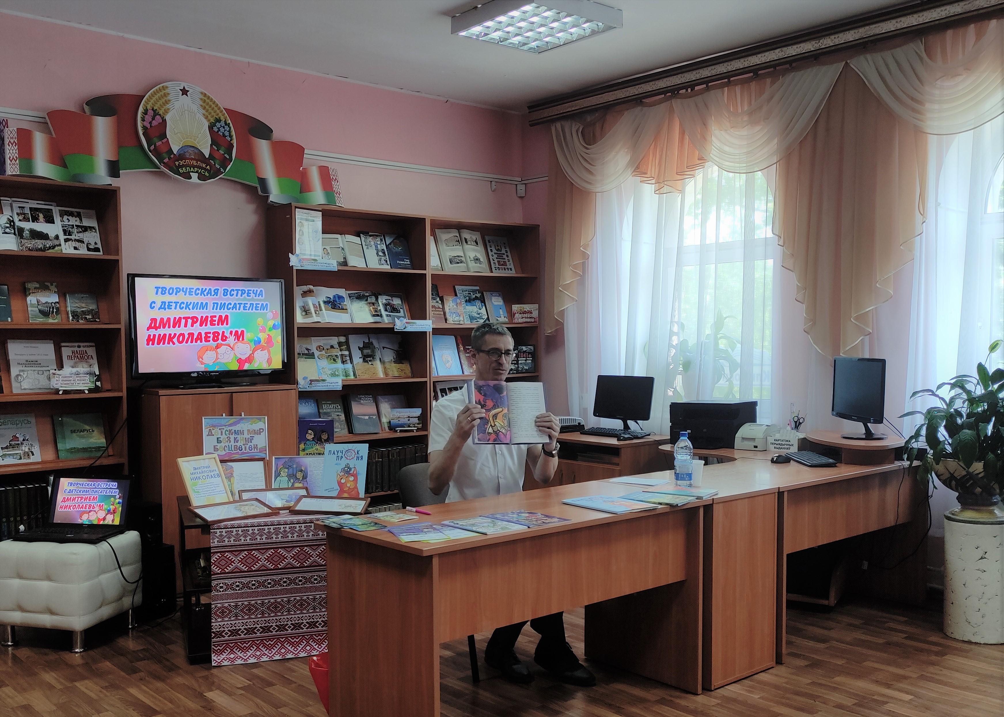 15 июня в центральной районной и Тимоновской библиотеках состоялись встречи с Дмитрием Николаевым. Дмитрий Михайлович – детский писатель, член Союза писателей Беларуси. Он является автором книг, которые уже полюбились нашим юным читателям: «Приключения любопытного волчонка», «Паучок Проня», «Питер, Лейла и Кристаллы добра», «Калядныя цуды» и т.д.