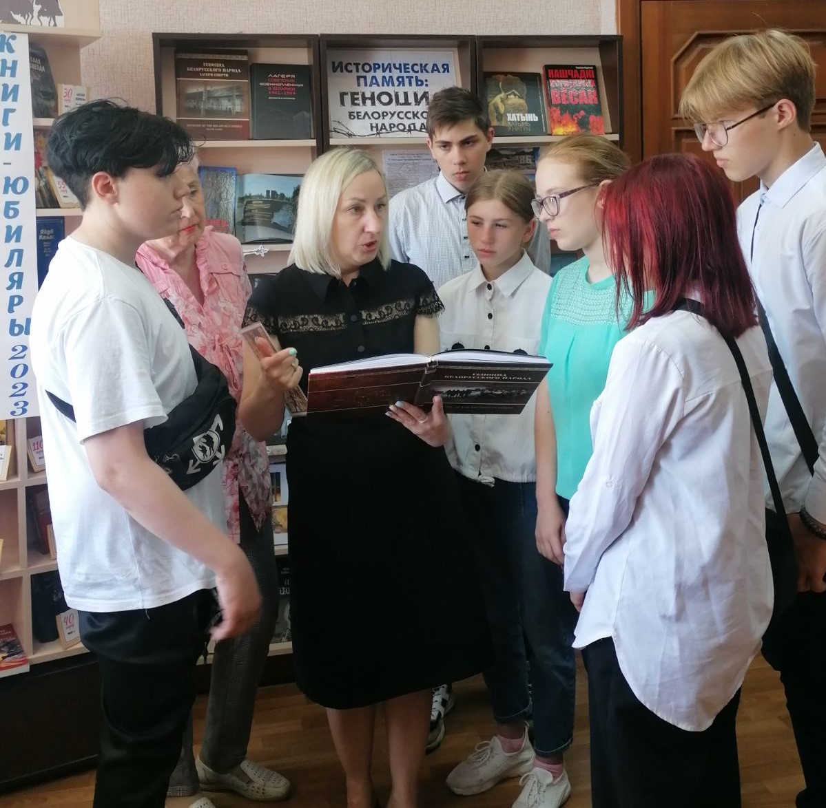 Используя материалы книжно-иллюстративной экспозиции, библиограф рассказала присутствующим о массовых расстрелах на территории Климовичского района. Учащиеся пришли к выводу, что эти трагические страницы истории не имеют срока давности и никогда не должны повториться. Понятия «человеколюбие», «сострадание», «взаимопомощь» актуальны всегда.