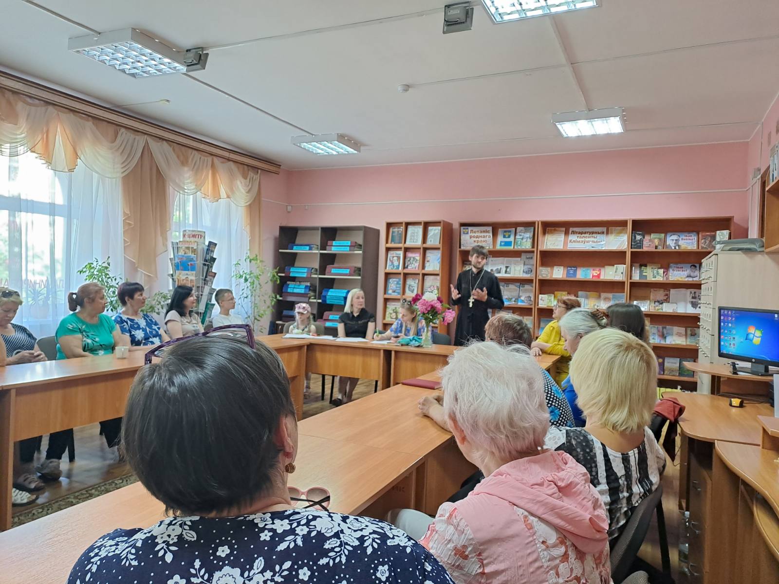 В рамках Года мира и созидания в читальном зале центральной районной библиотеки прошел час духовной культуры «Сила веры. Сила духа». На встречу с членами Клуба традиционных славянских ценностей приехал отец Андрей Шаварин, иерей Спасо-Преображенского Собора г. Могилева.