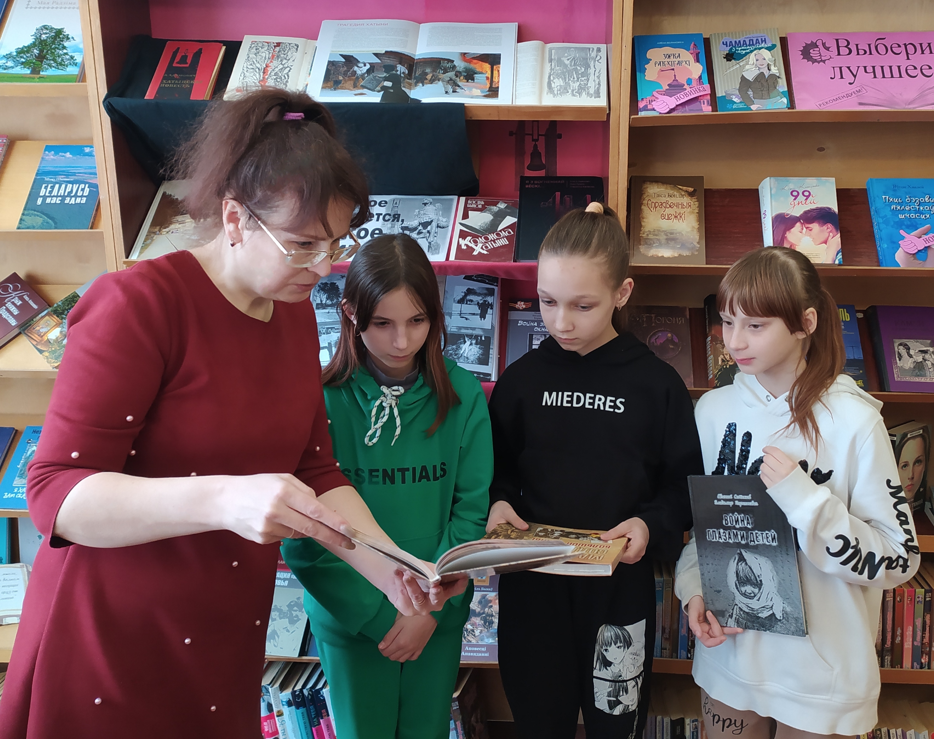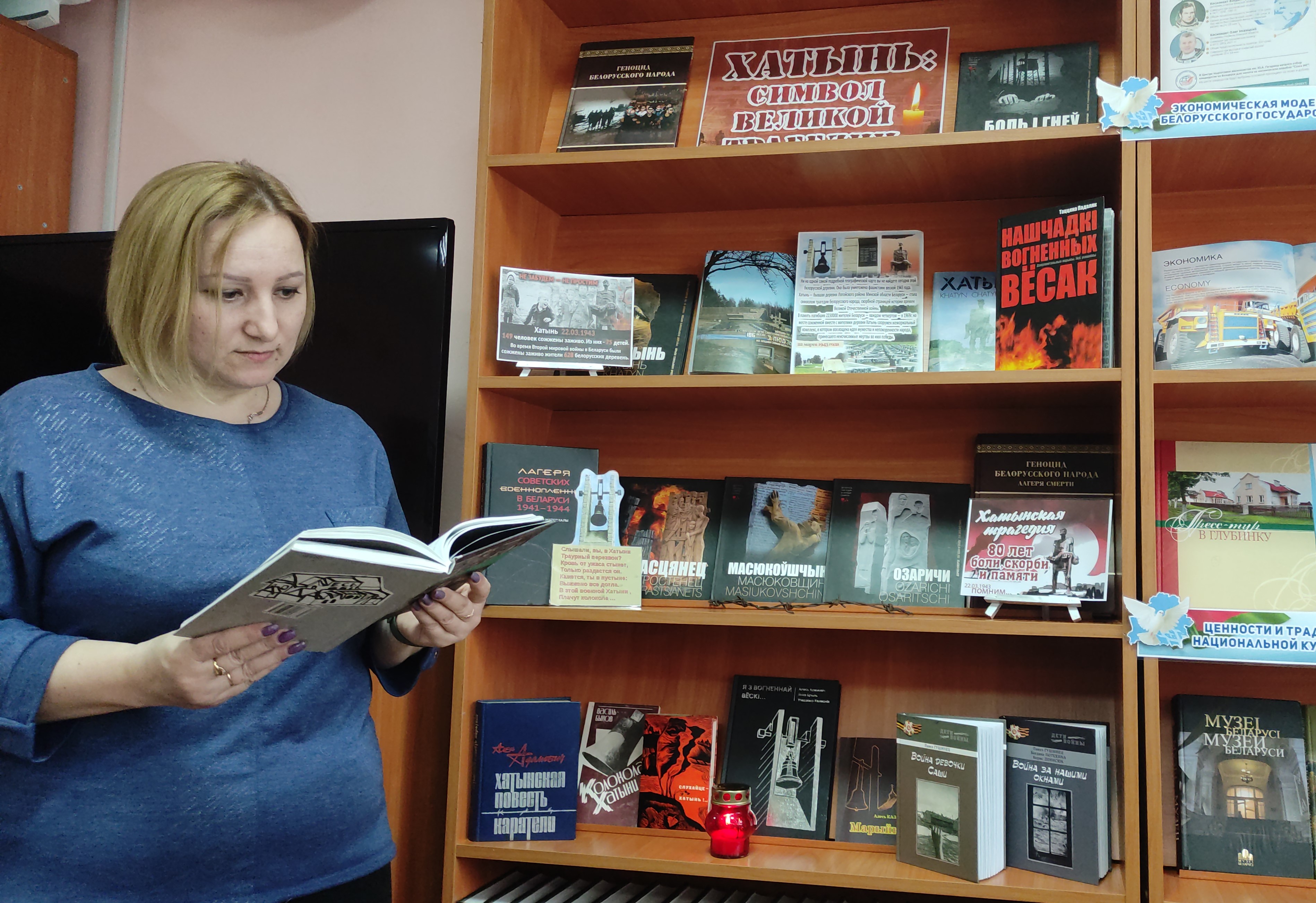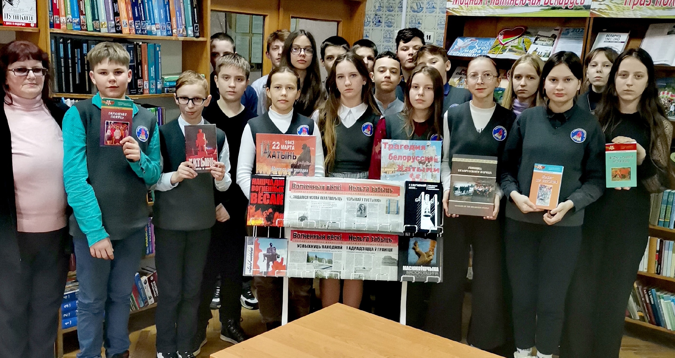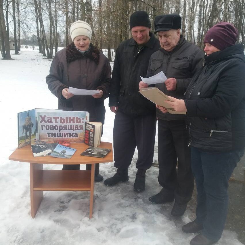 Библиотекарь библиобуса для своих читателей из малонаселенных деревень провела час памяти «Скорбный звон Хатыни». Познакомила присутствующих с книгой «Геноцид белорусского народа. Лагеря смерти», подготовленной издательством «Беларусь» совместно с Генеральной прокуратурой Республики Беларусь при поддержке Министерства информации Республики Беларусь.