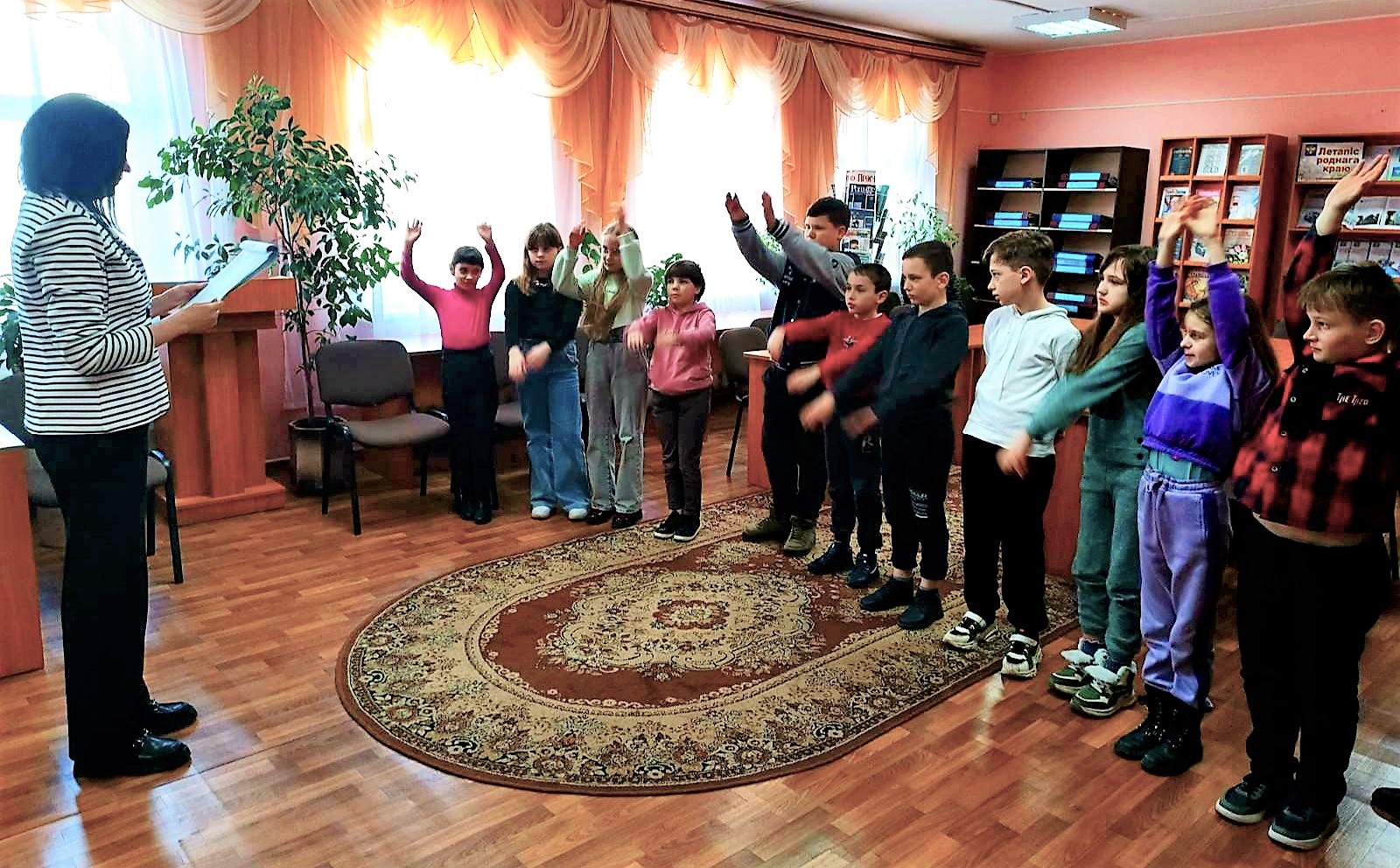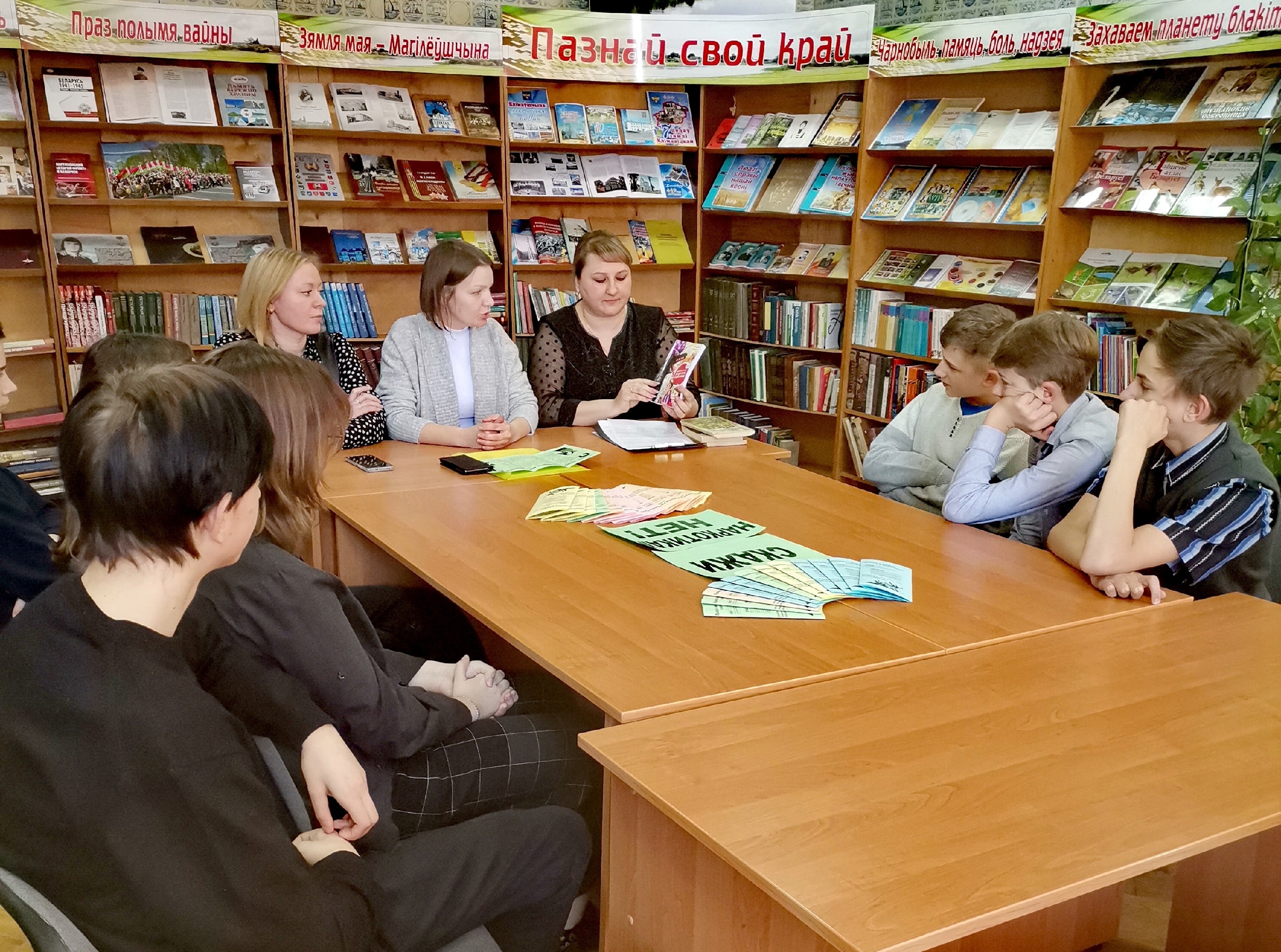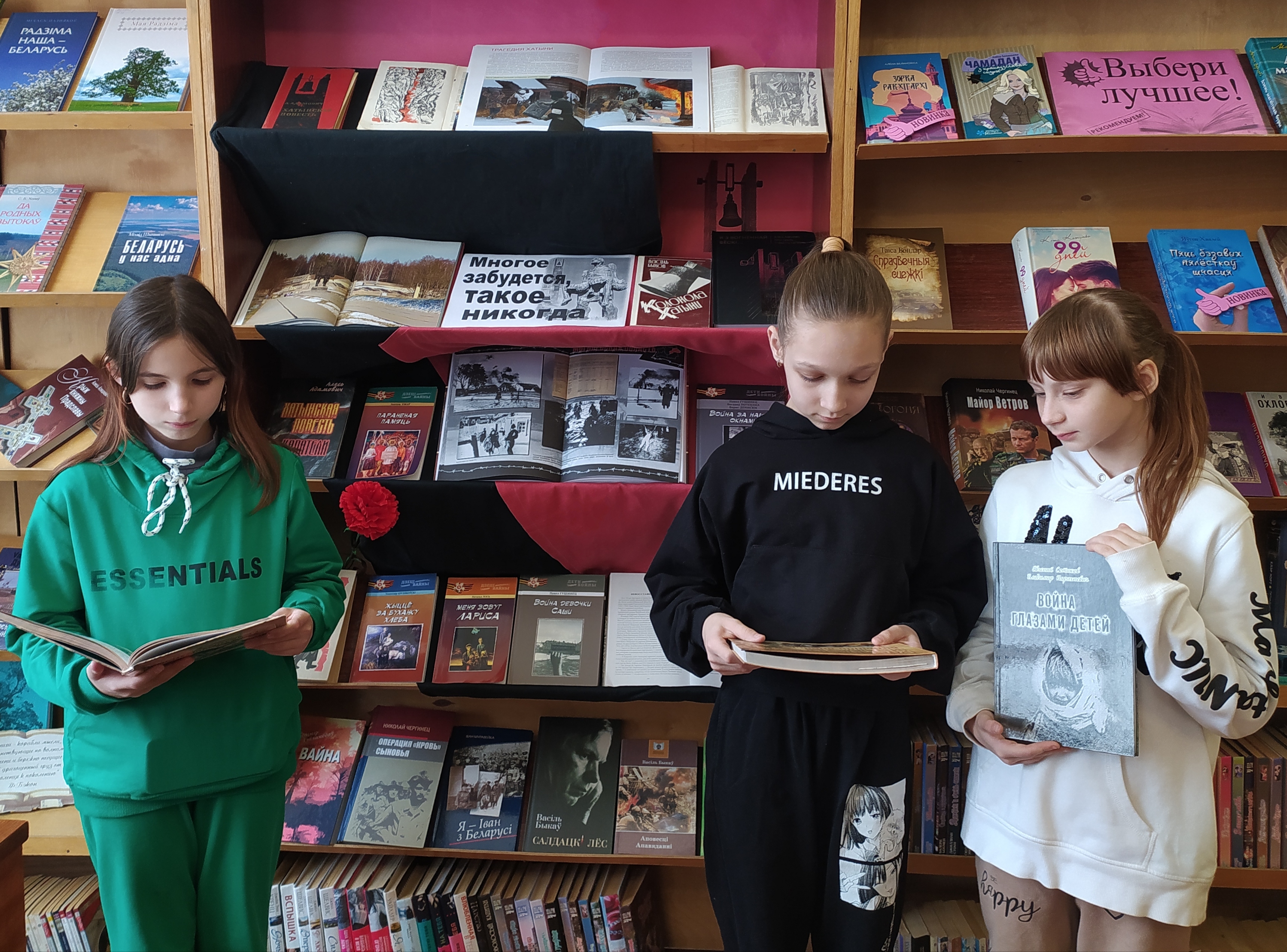 Библиотекарь библиобуса для своих читателей из малонаселенных деревень провела час памяти «Скорбный звон Хатыни». Познакомила присутствующих с книгой «Геноцид белорусского народа. Лагеря смерти», подготовленной издательством «Беларусь» совместно с Генеральной прокуратурой Республики Беларусь при поддержке Министерства информации Республики Беларусь.