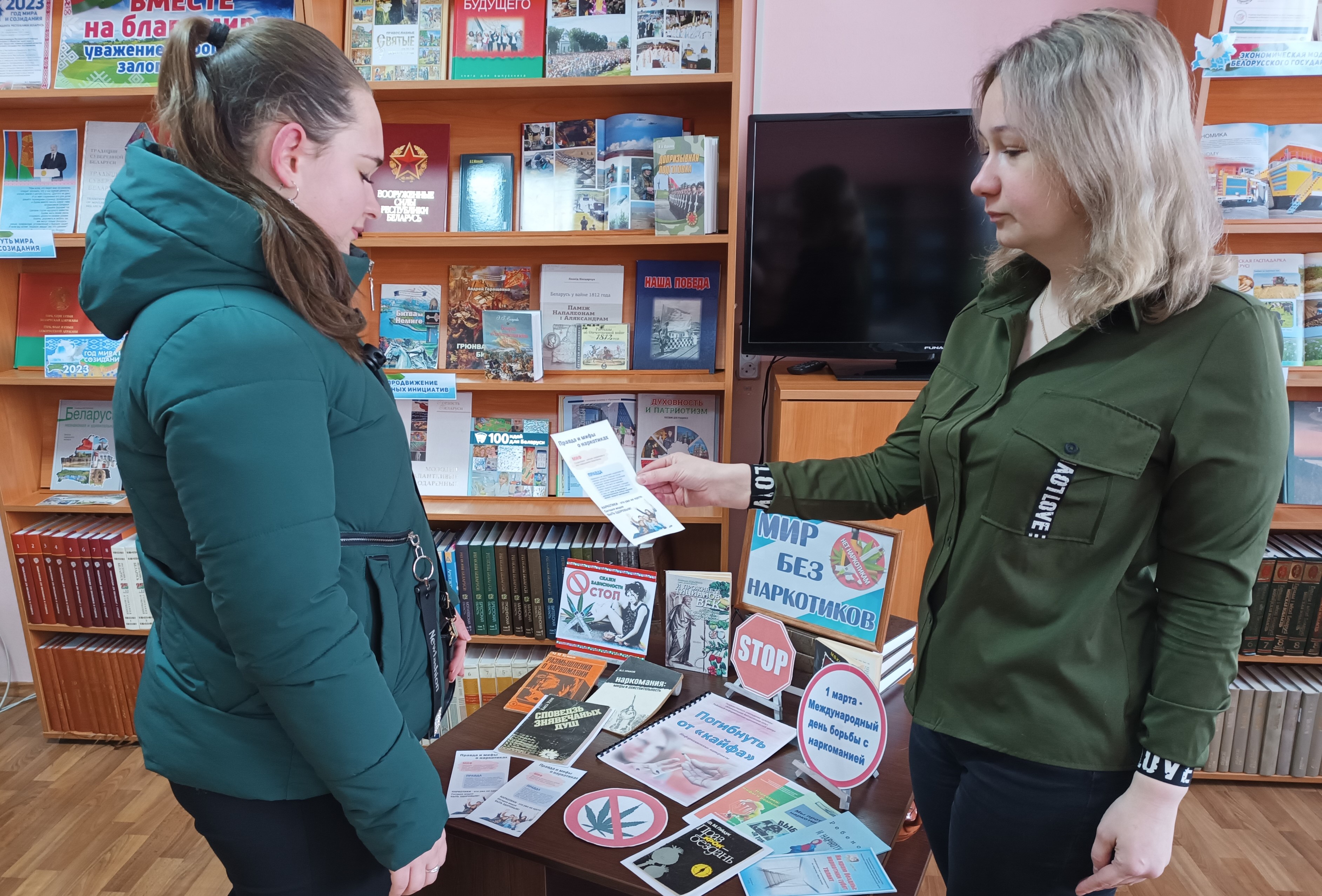 В центральной районной библиотеке в рамках районной антинаркотической межведомственной акции «Вместе против наркотиков» организована книжная информационно-профилактическая выставка «Мир без наркотиков». На выставке представлены информационные материалы и литература, посвященная наркомании как глобальной проблеме человечества, рассказывающая об опасности употребления наркотиков и правилах здорового образа жизни.