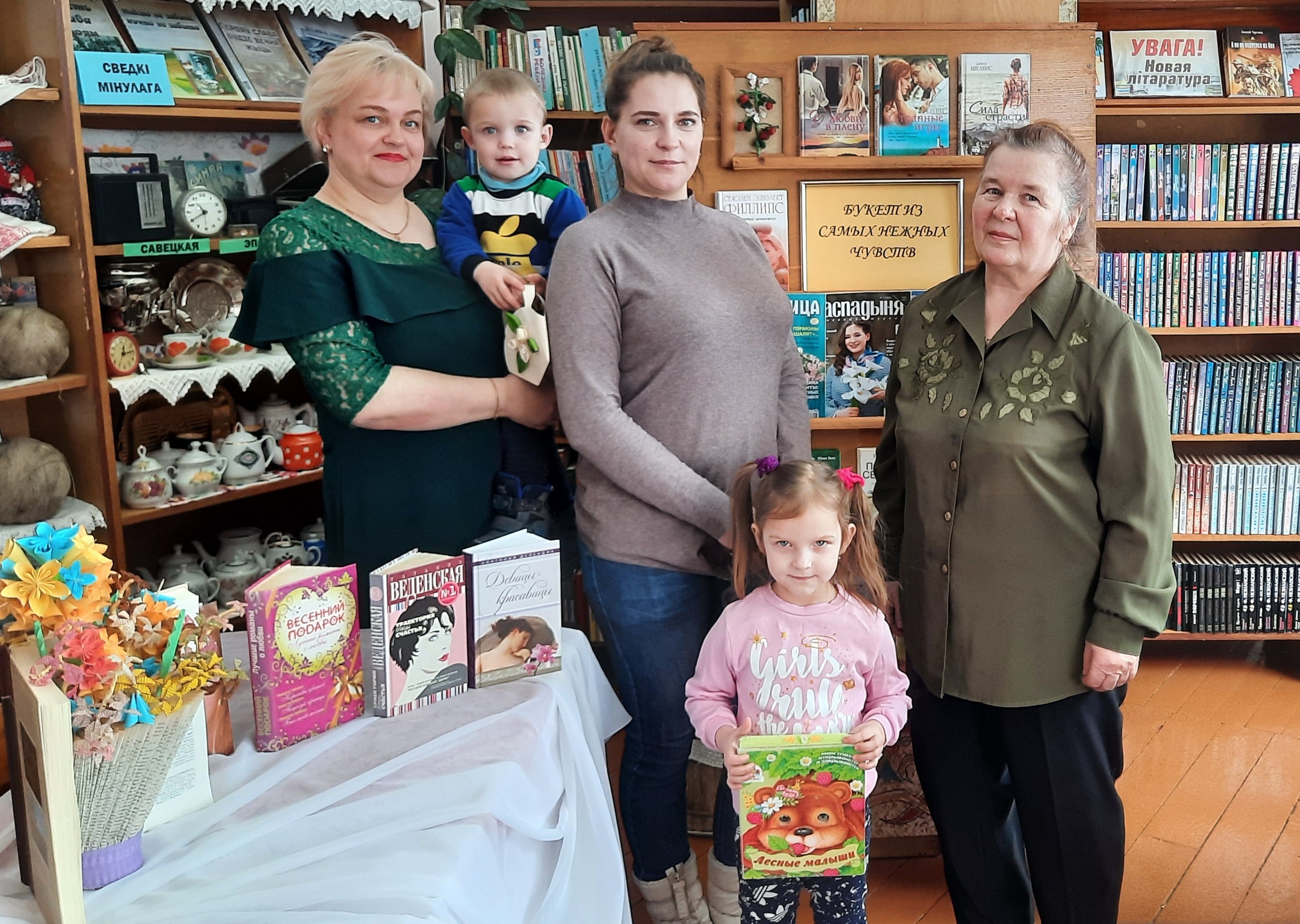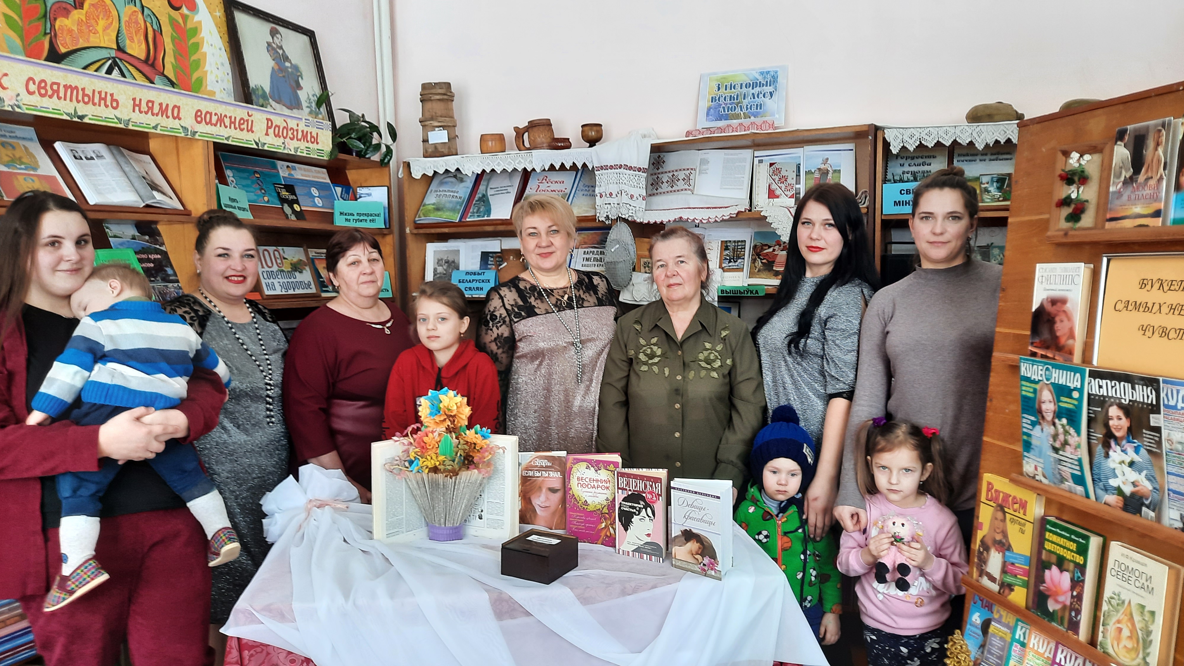 Накануне этого замечательного дня в Лобжанской сельской библиотеке оформлена выставка-вернисаж «Букет из самых нежных чувств», на которой представлены книги о женщинах Беларуси, о великих женщинах разных эпох, оставивших яркий след в истории, произведения современной женской прозы, литература о домоводстве, медицине, детские книги, а так же различные периодические издания для мам и бабушек.