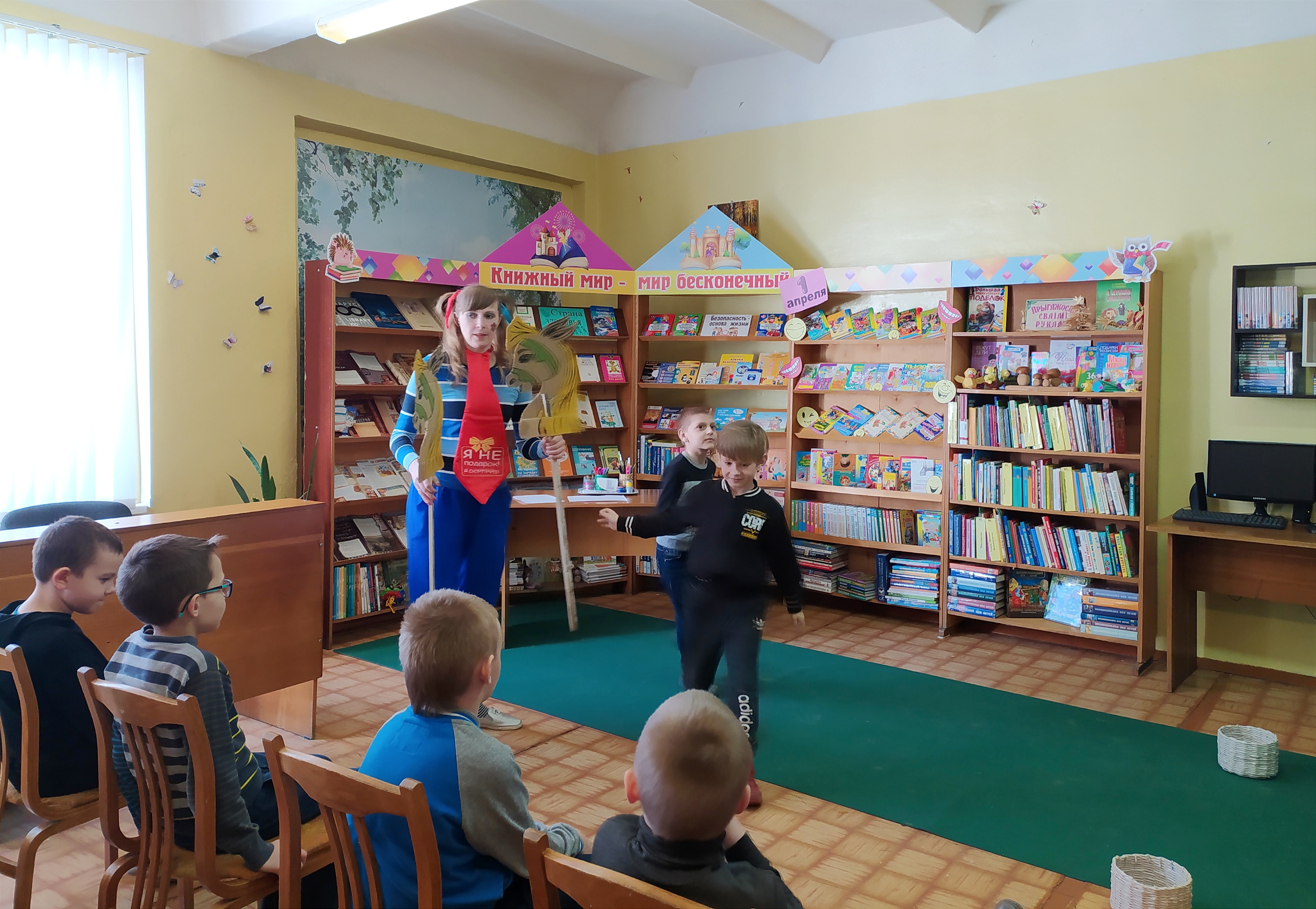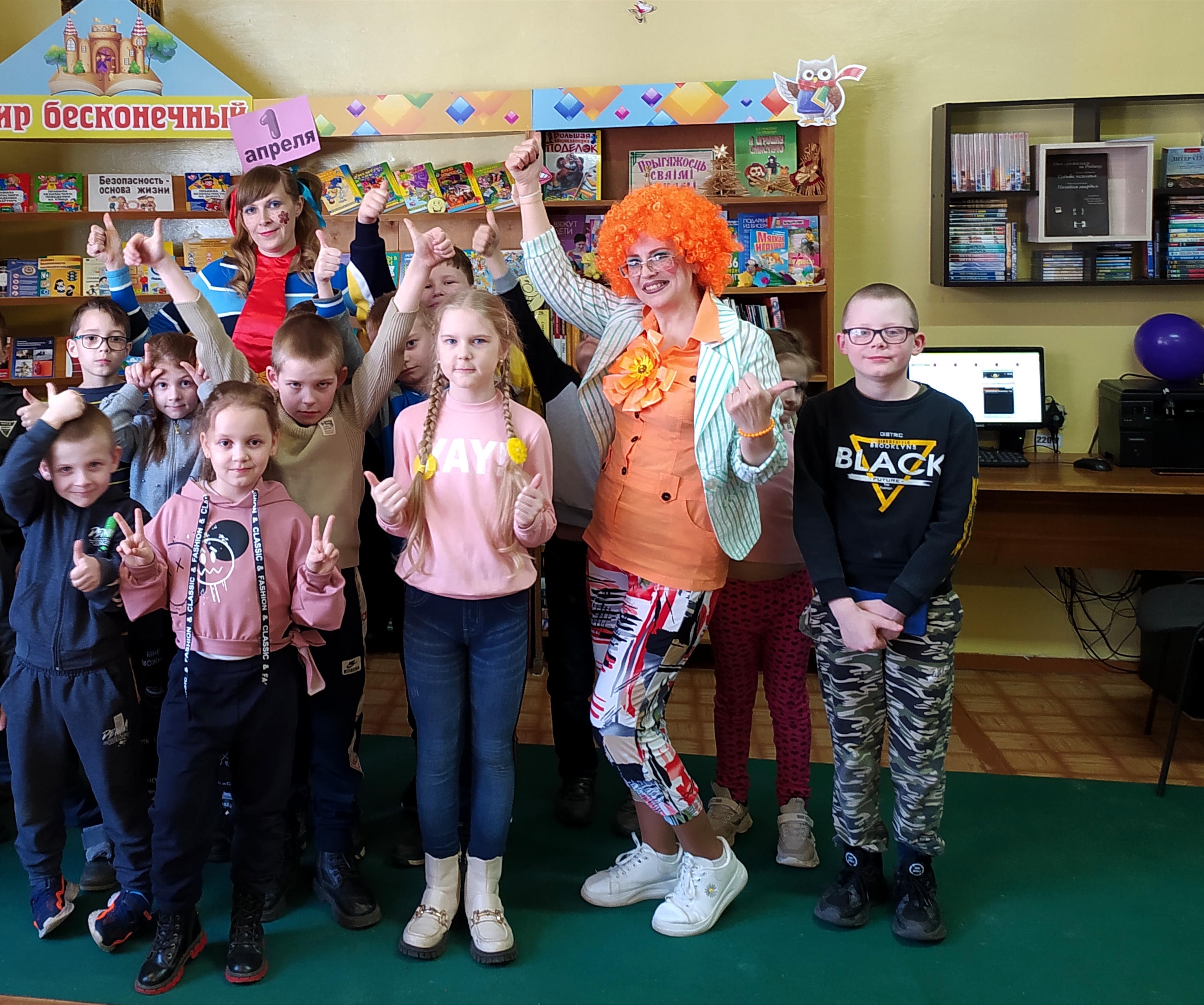 Смех-тайм "Потеха делу не помеха" состоялся в городской библиотеке №1. Ребят из пришкольного лагеря средней школы №4 встречали весёлые клоуны Лёля и Няша. В библиотеке в преддверии дня смеха шутили, смеялись, играли, веселились от души, отвечали на каверзные вопросы клоунов, читали весёлые книги.Неделя детской и юношеской книги «По волшебной стране книжных друзей» в Тимоновской библиотеке открылась литературно-музыкальным праздником «В мир волшебный приглашают книги», на который были приглашены учащиеся пришкольного лагеря «Радуга».