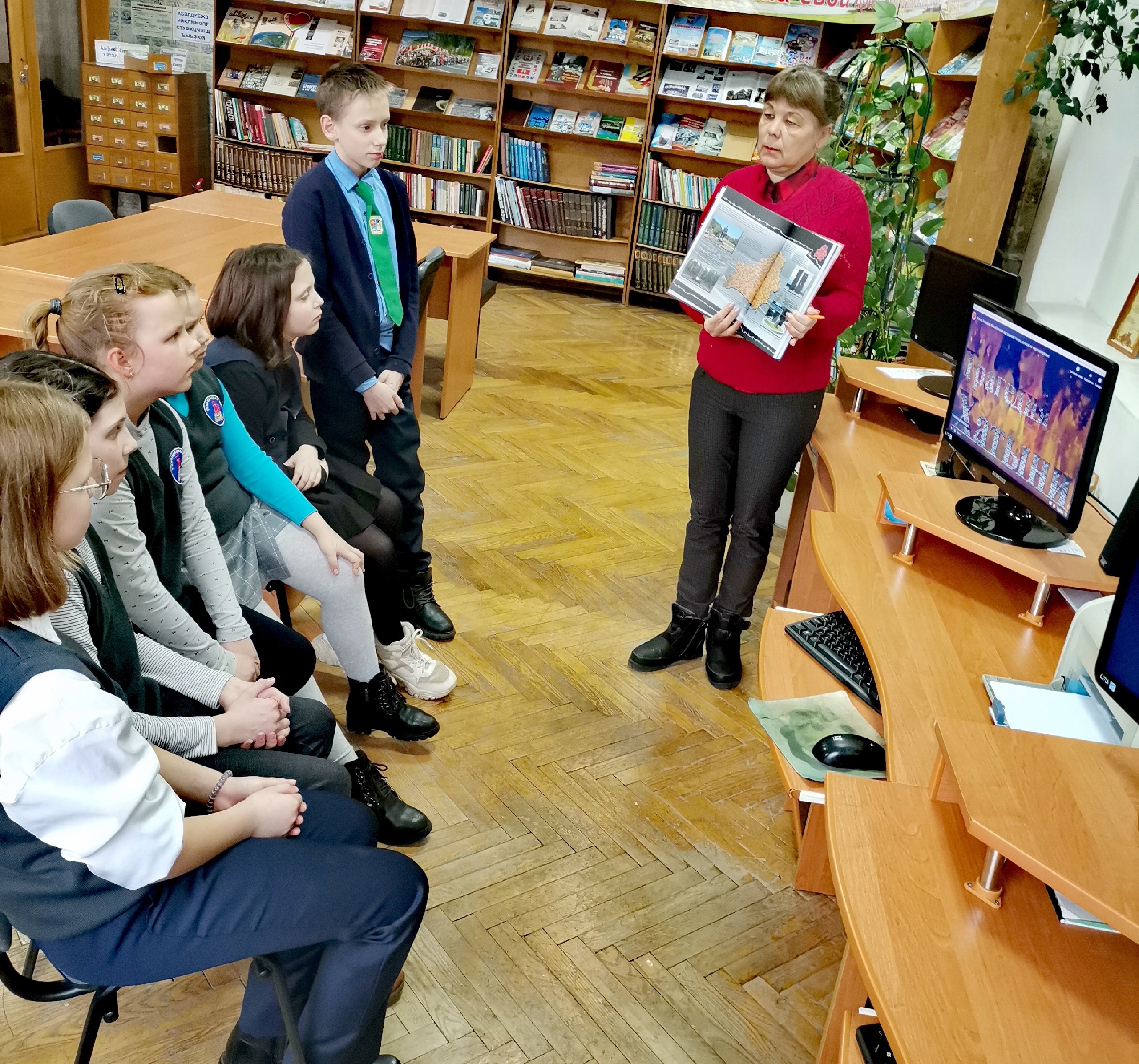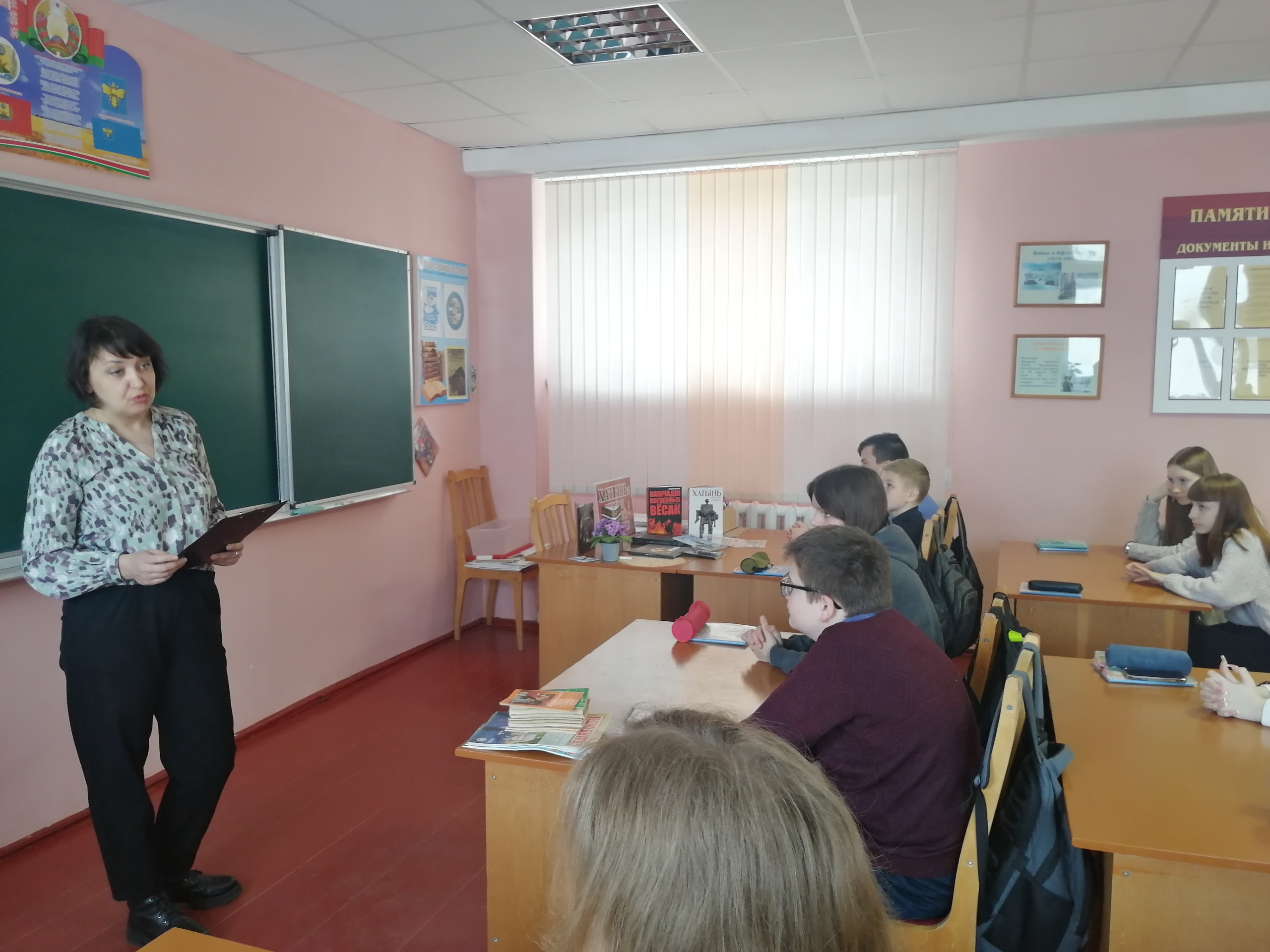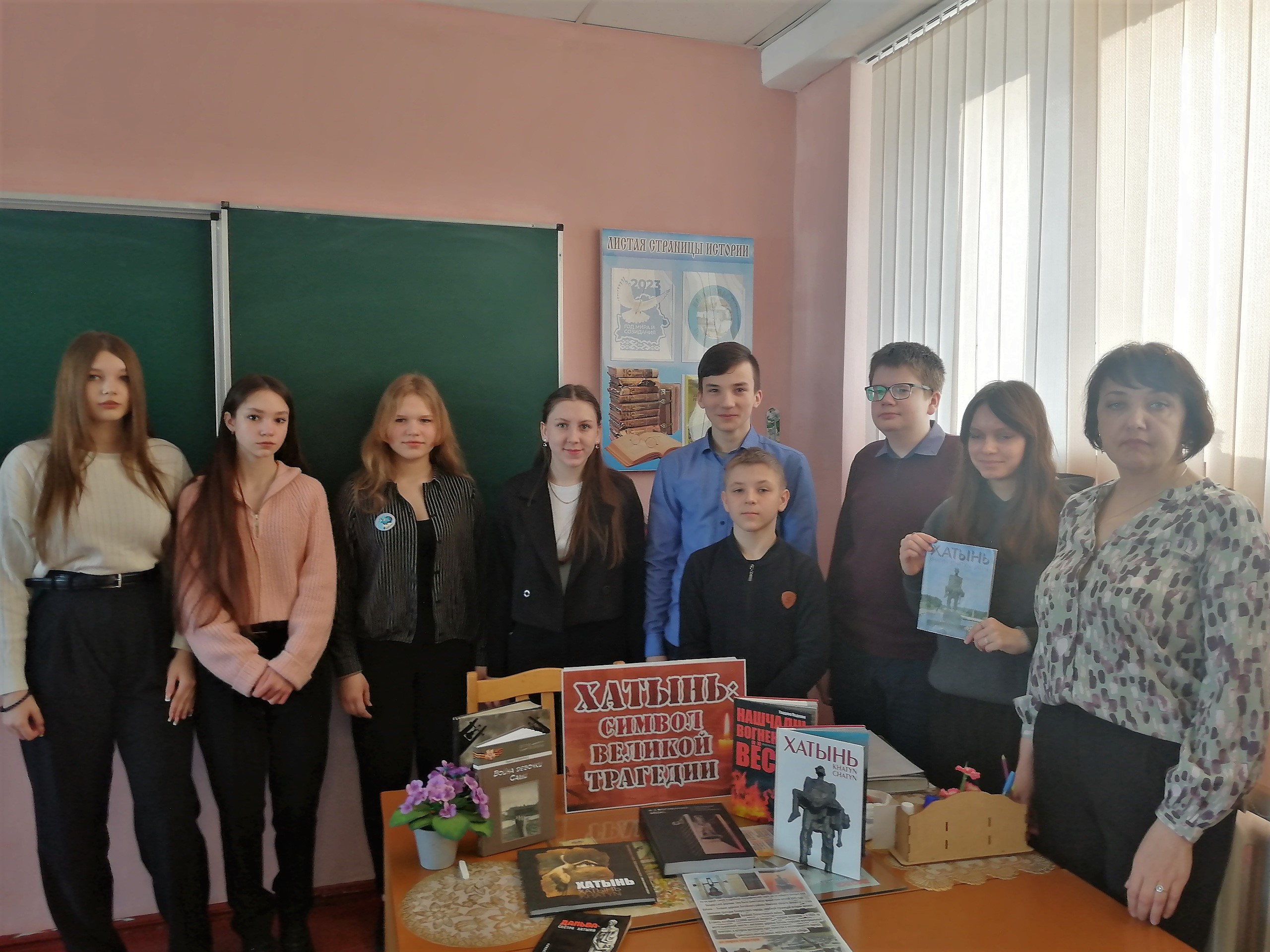 Для учащихся 7-го класса средней школы №4 сотрудники центральной районной библиотеки им. И. Пехтерева провели час-реквием «Хатынь: заплачут вновь колокола». Библиотекари рассказали ребятам историю трагедии, которая случилась в белорусской деревне в далеком 1943 году. Из презентации «Сестры Хатыни — сожженные деревни» учащиеся узнали об уничтоженных в годы Великой Отечественной войны и не возрожденных деревнях в Беларуси.