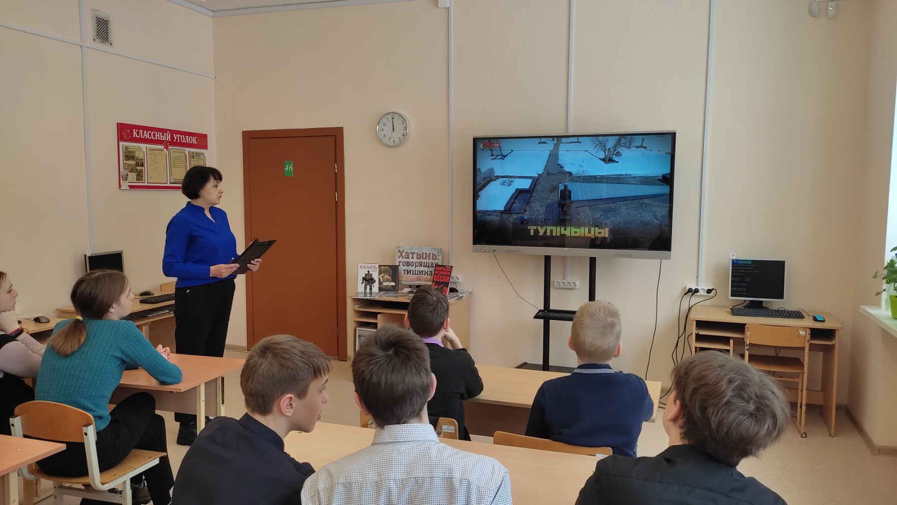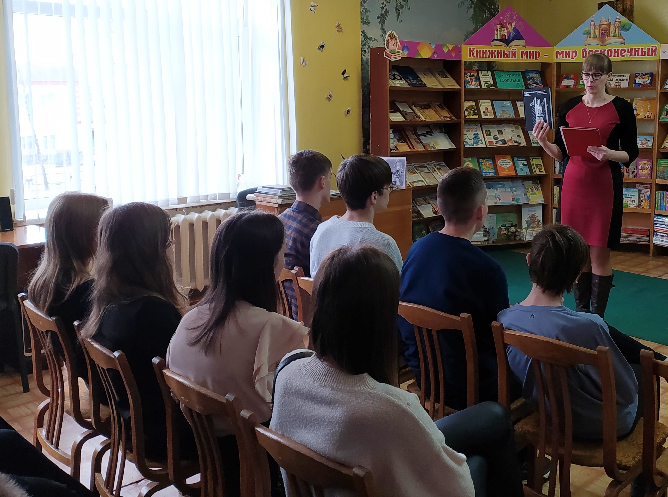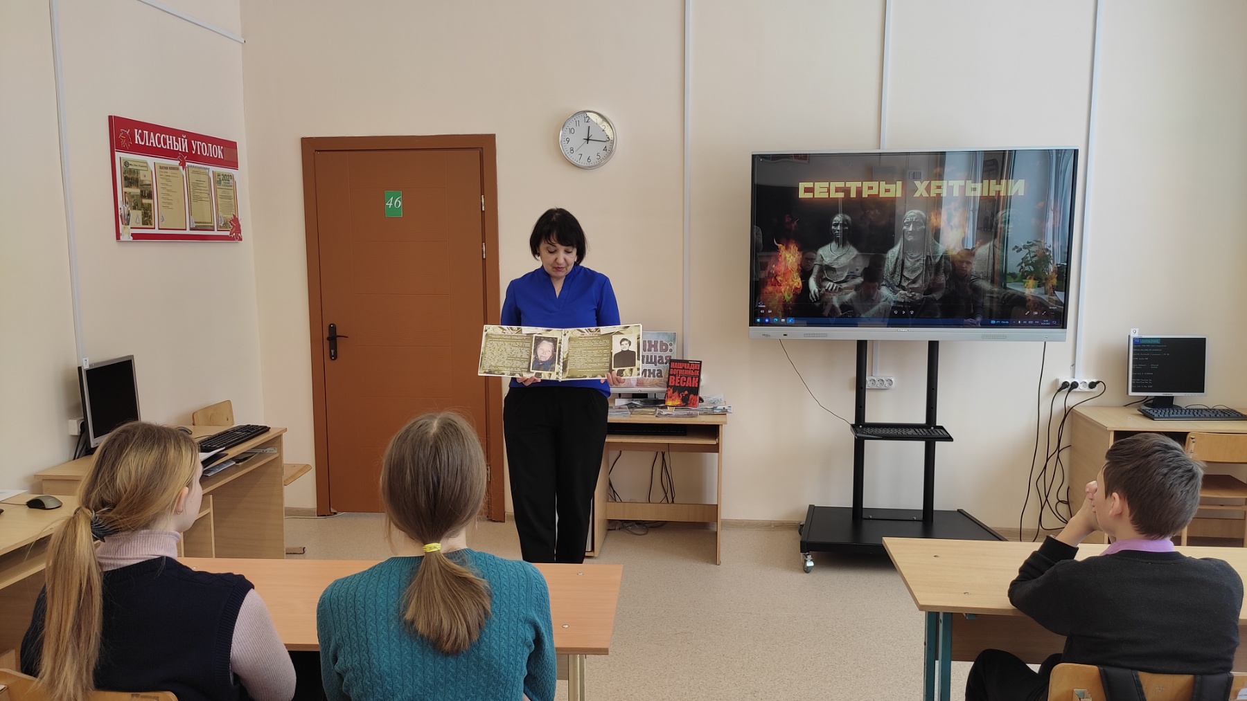 Для учащихся 7-го класса средней школы №4 сотрудники центральной районной библиотеки им. И. Пехтерева провели час-реквием «Хатынь: заплачут вновь колокола». Библиотекари рассказали ребятам историю трагедии, которая случилась в белорусской деревне в далеком 1943 году. Из презентации «Сестры Хатыни — сожженные деревни» учащиеся узнали об уничтоженных в годы Великой Отечественной войны и не возрожденных деревнях в Беларуси.
