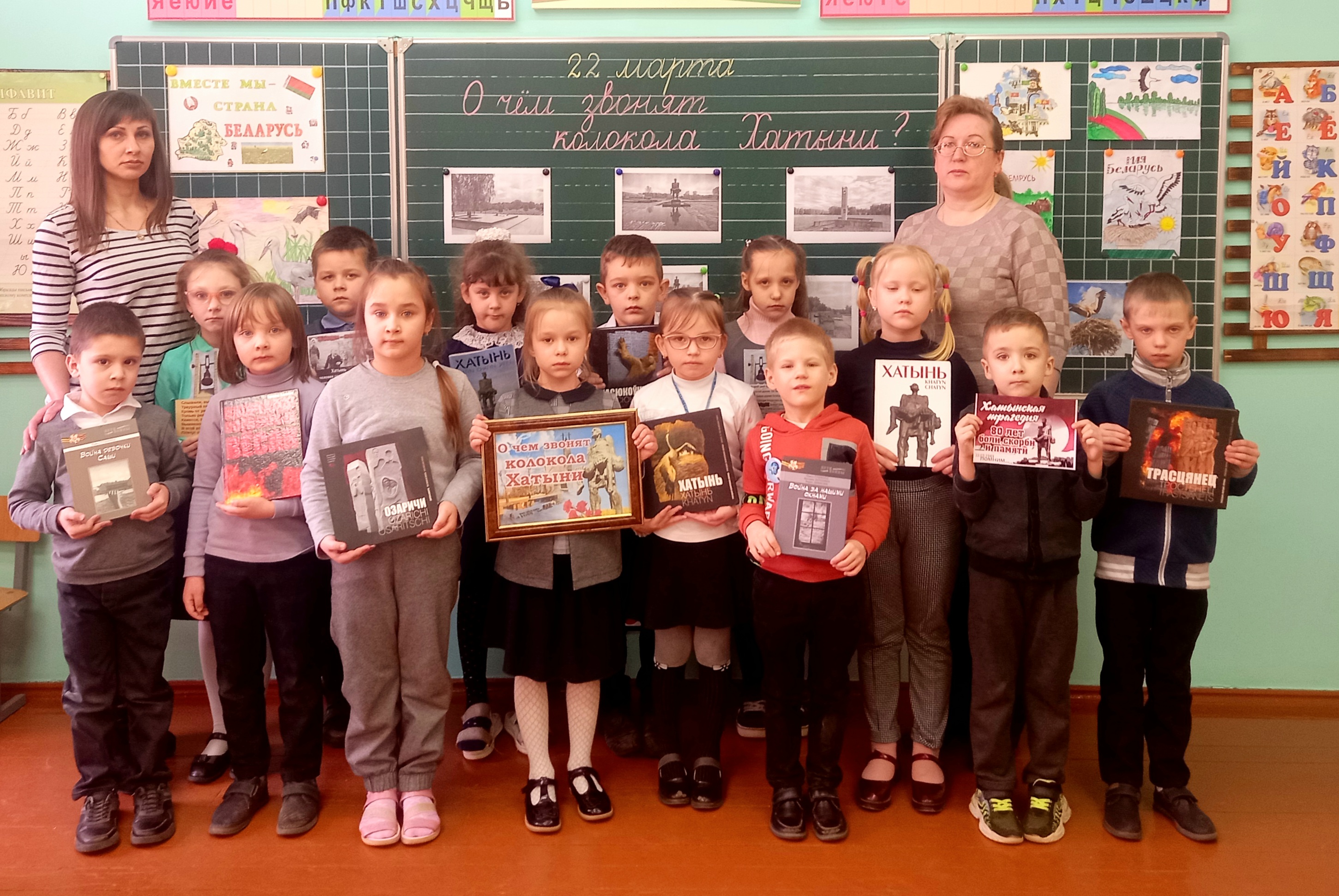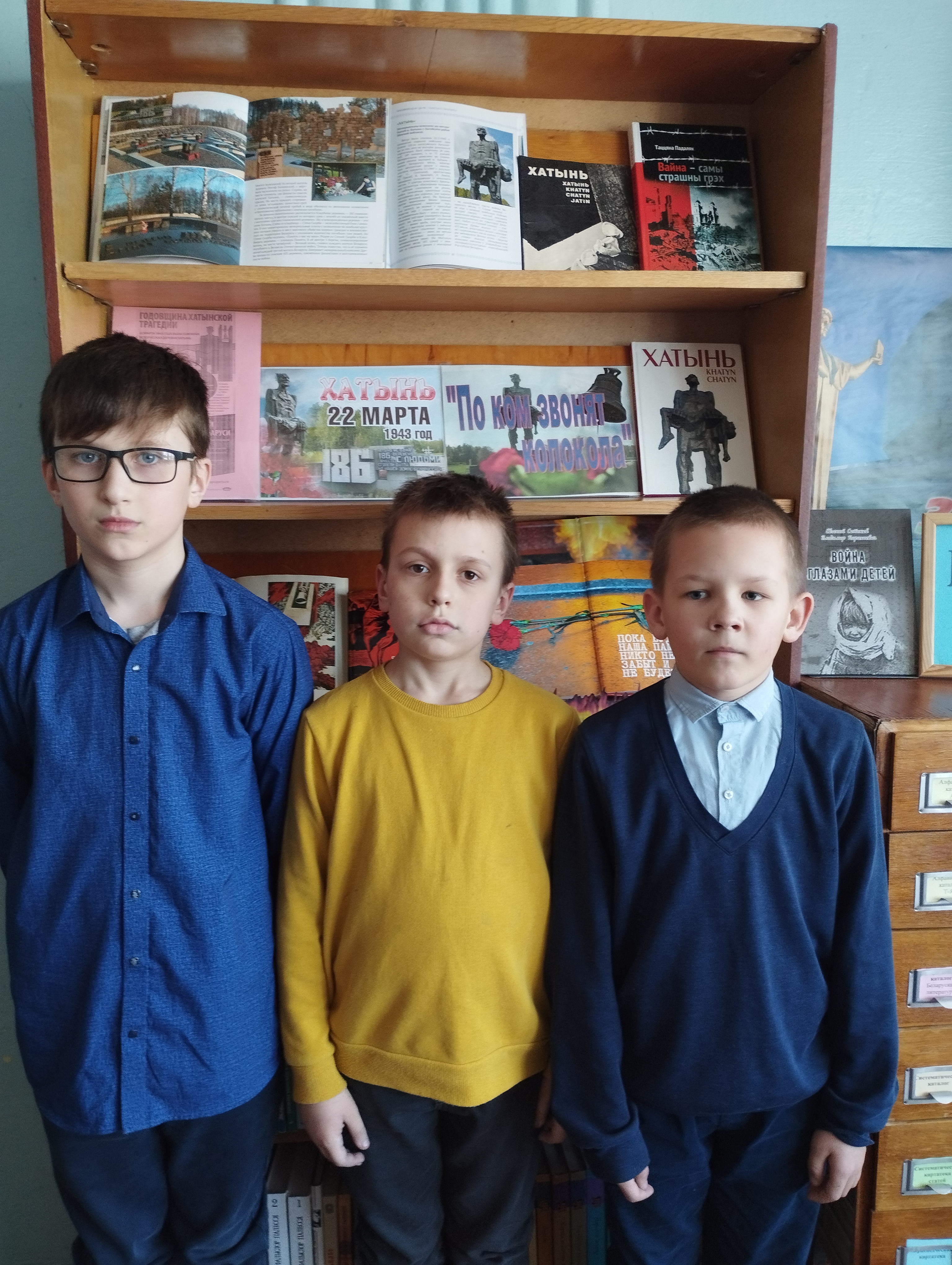 Для учащихся начальных классов средней школы №3 сотрудники отдела по обслуживанию детского читателя центральной районной библиотеки провели час памяти «О чем звонят колокола Хатыни?».
