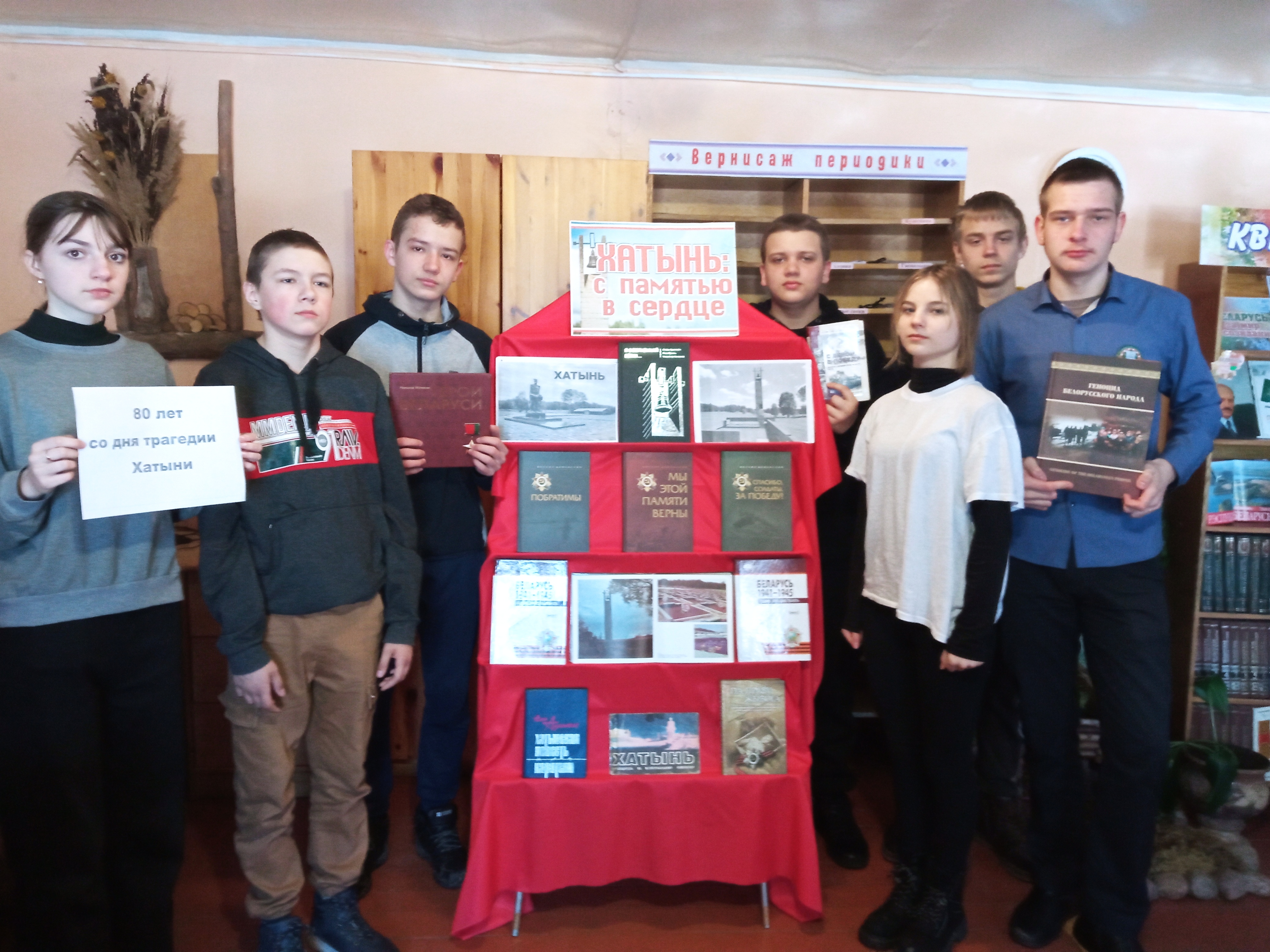 К этому дню в читальном зале центральной районной библиотеки действует книжная выставка-память «Хатынь: символ великой трагедии». Здесь представлены научные, научно-популярные и литературно-художественные издания, альбомы, которые подробно раскрывают преступления нацистов и их пособников против мирного населения деревни Хатынь и других сожжённых деревень Беларуси.